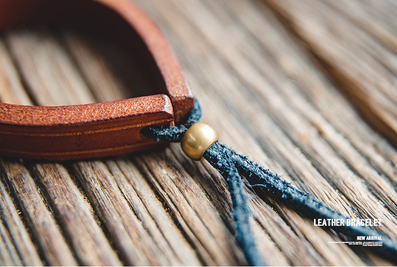 레트로 나시 가죽 레더 팔찌 (조절 가능)