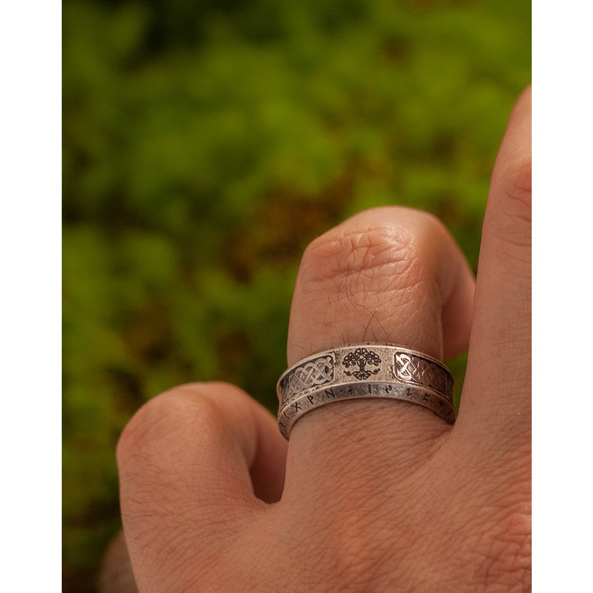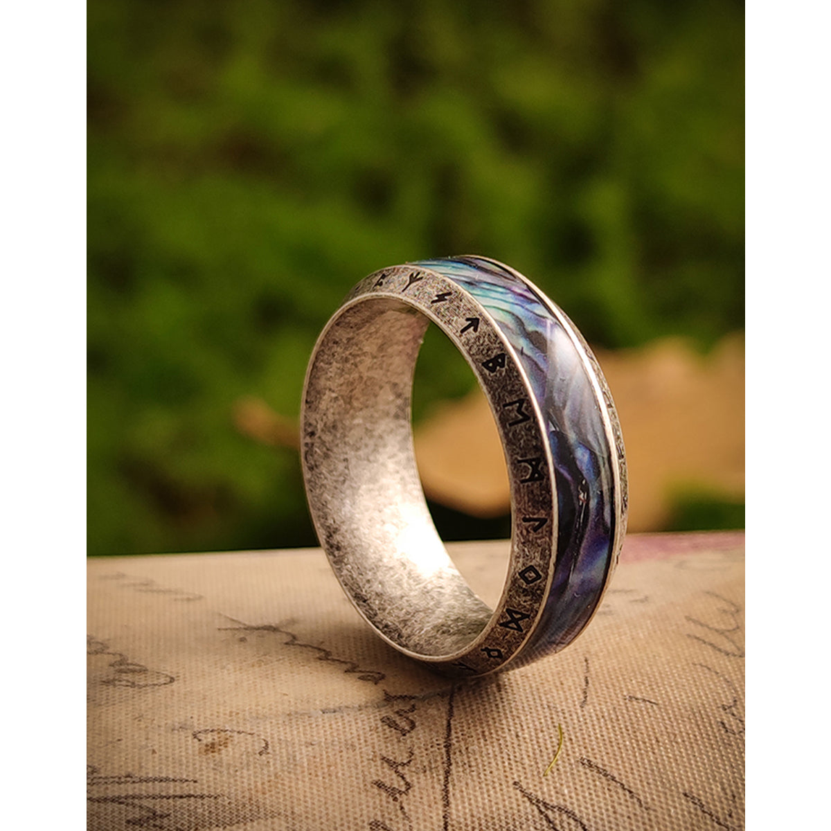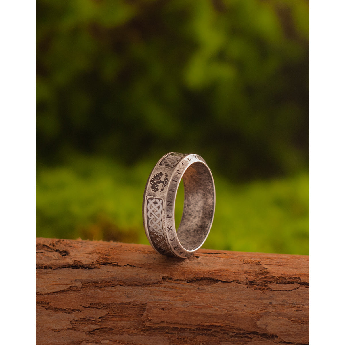 링 표면에 빈티지풍 에이징 가공을 하여 테두리에는 바이킹 문자를 새겨 세밀한 이야기성을 더했습니다.
