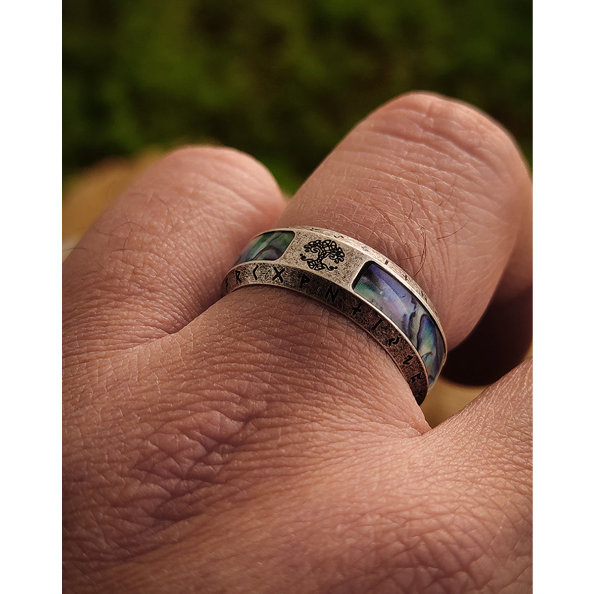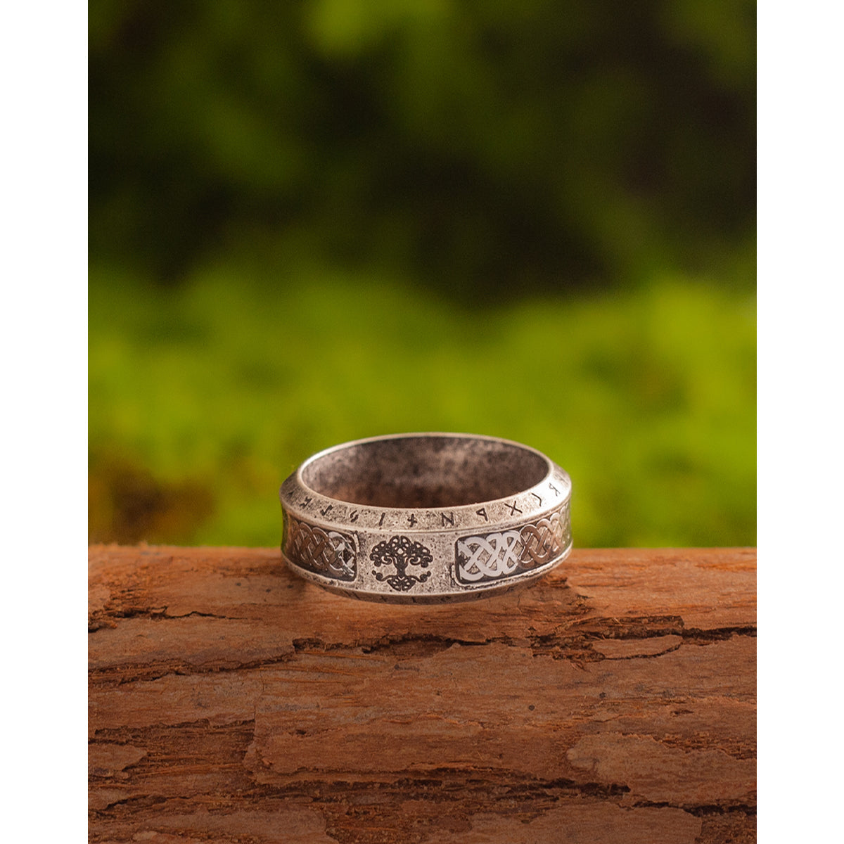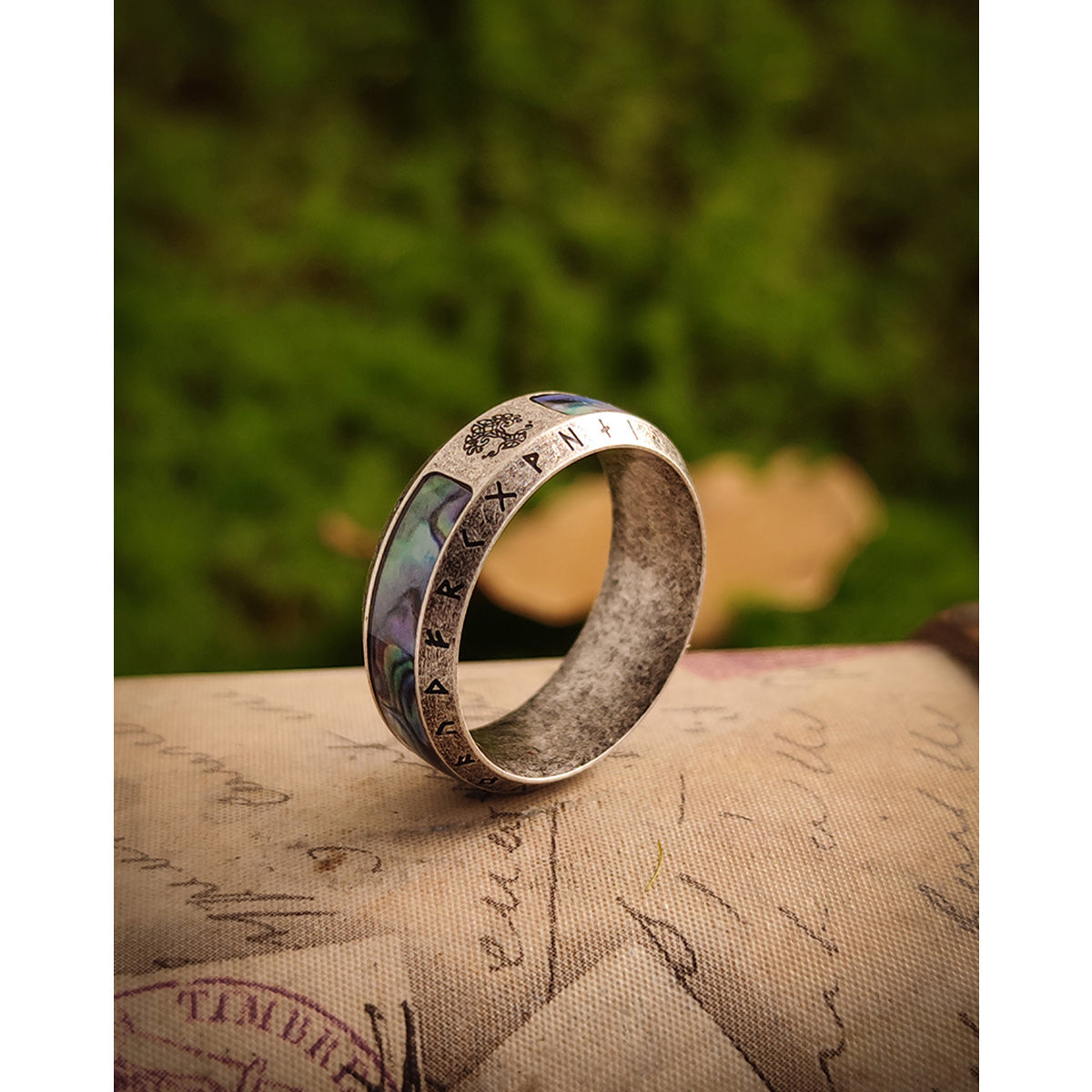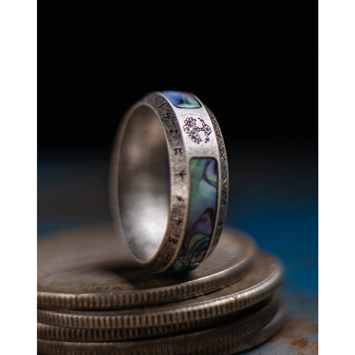 링 표면에 빈티지풍 에이징 가공을 하여 테두리에는 바이킹 문자를 새겨 세밀한 이야기성을 더했습니다.