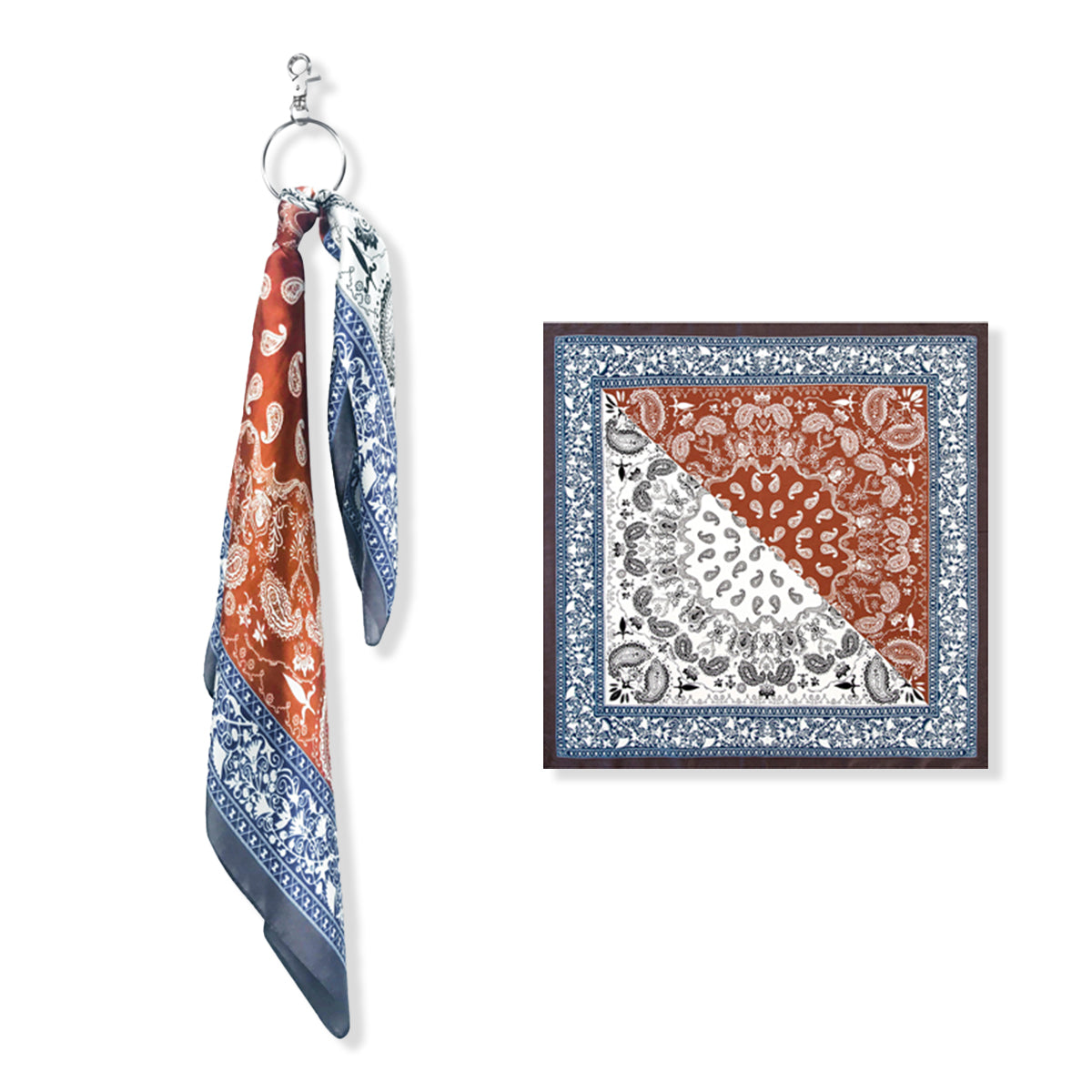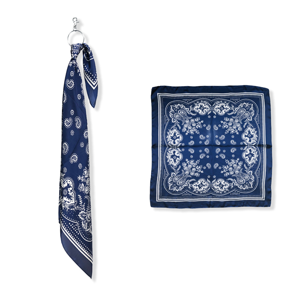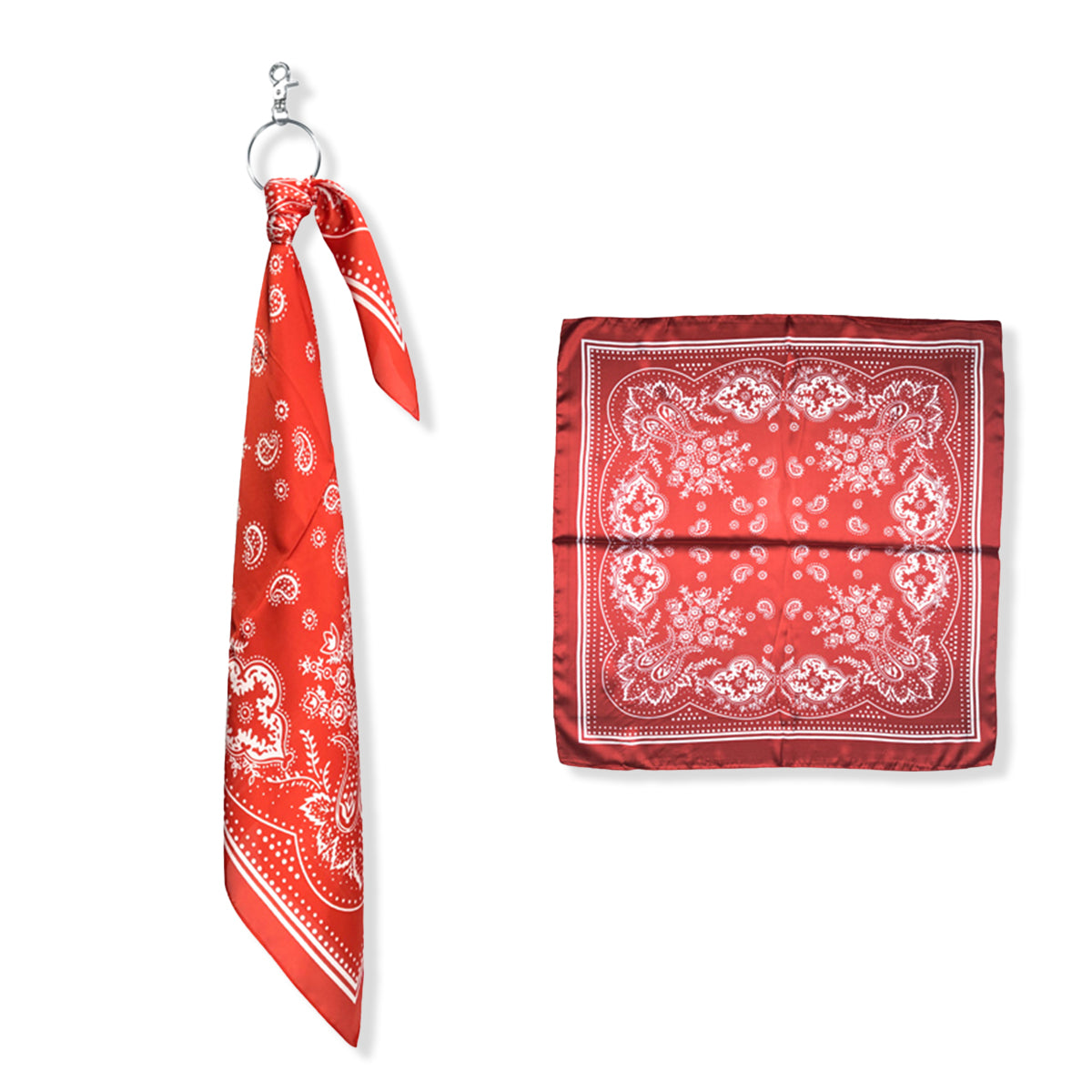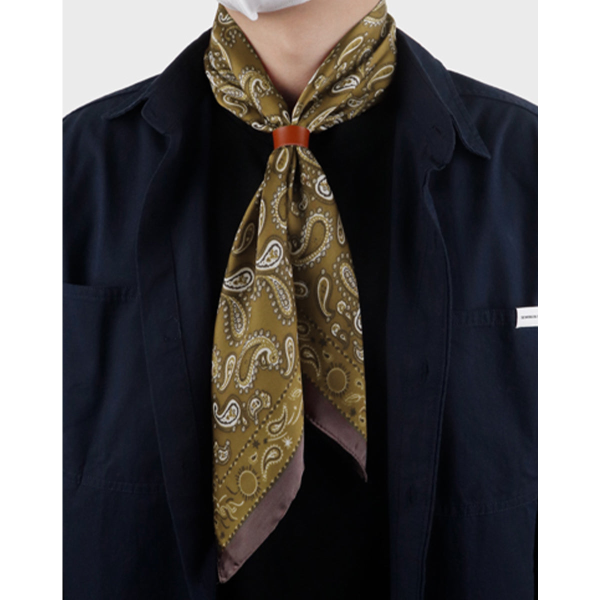 선명한 발색과 나스칸 링 디테일로 액세서리처럼 활용할 수 있는 페이즐리 반다나입니다. 목, 손목, 주머니 포인트 등 다양한 스타일링이 가능합니다.