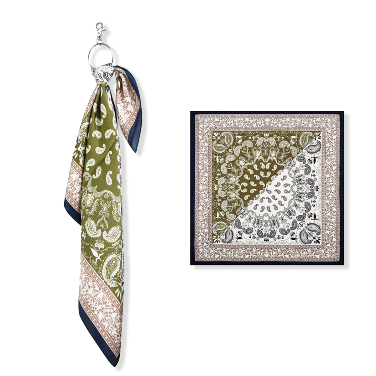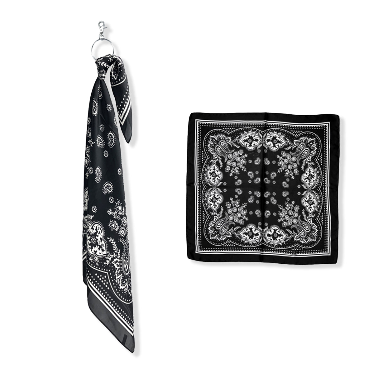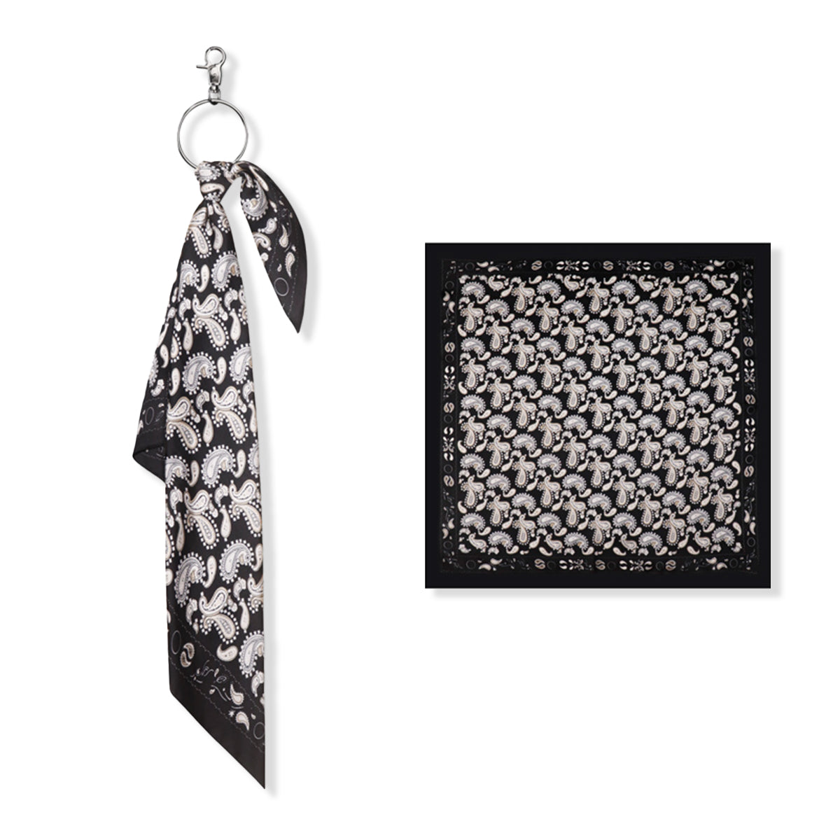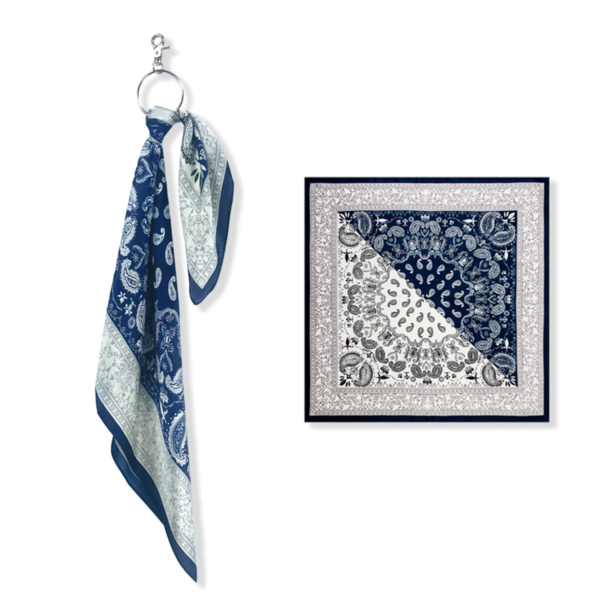 선명한 발색과 나스칸 링 디테일로 액세서리처럼 활용할 수 있는 페이즐리 반다나입니다. 목, 손목, 주머니 포인트 등 다양한 스타일링이 가능합니다.