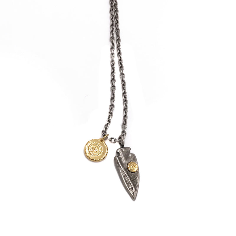 태양, 나뭇잎, 비둘기 모티브가 조화된 개성 있는 디자인, 매트한 질감과 빈티지한 가공으로 투박하면서도 세련된 분위기를 연출합니다.