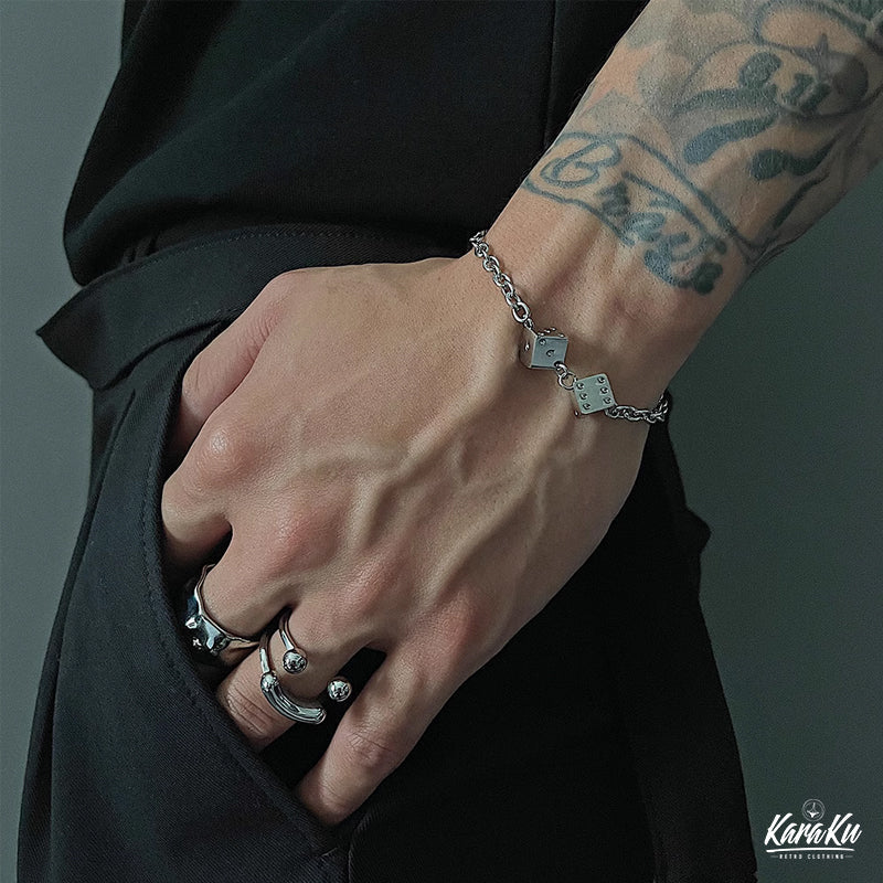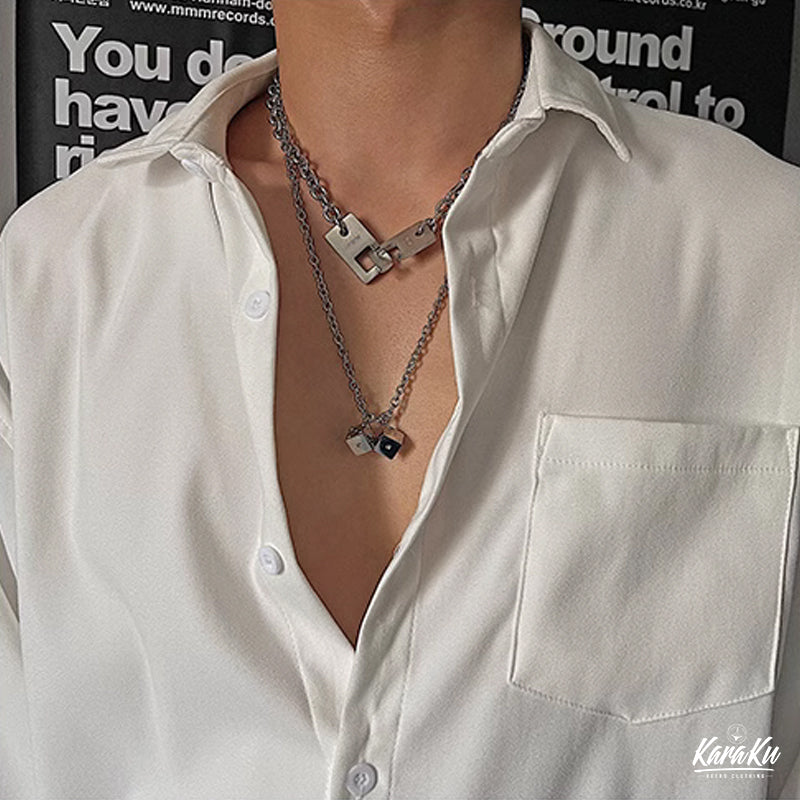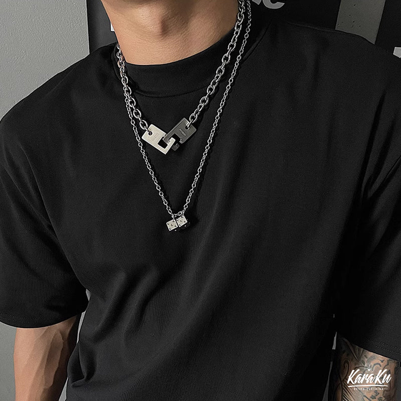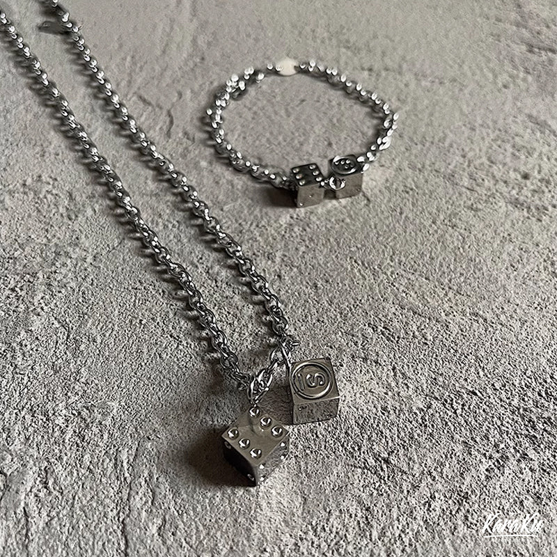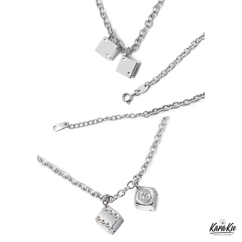 작은 주사위 펜던트가 포인트인 티타늄 목걸이입니다.