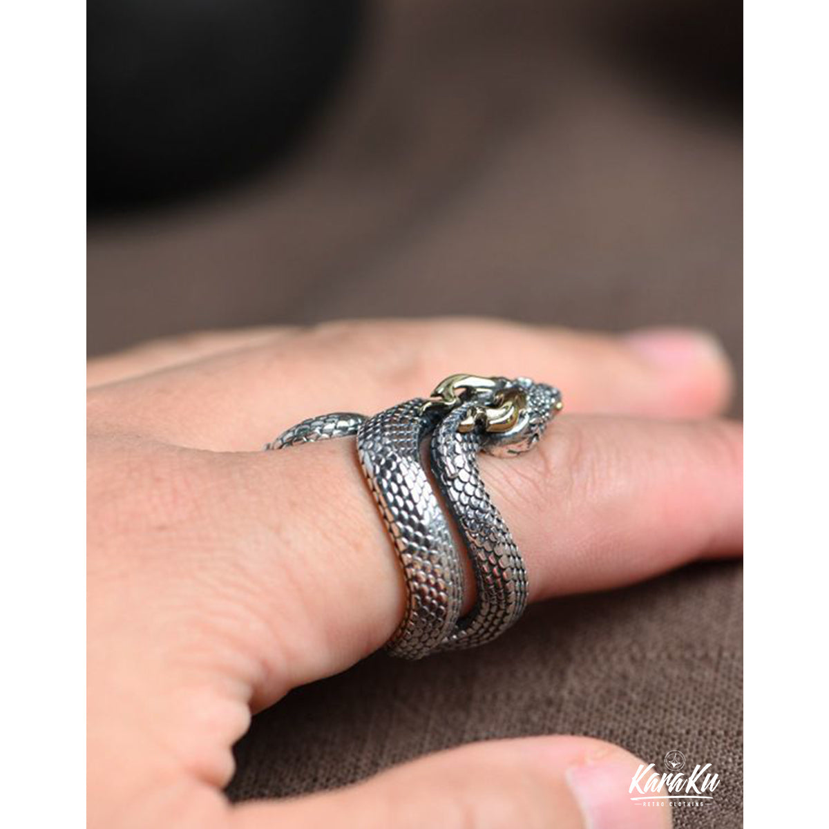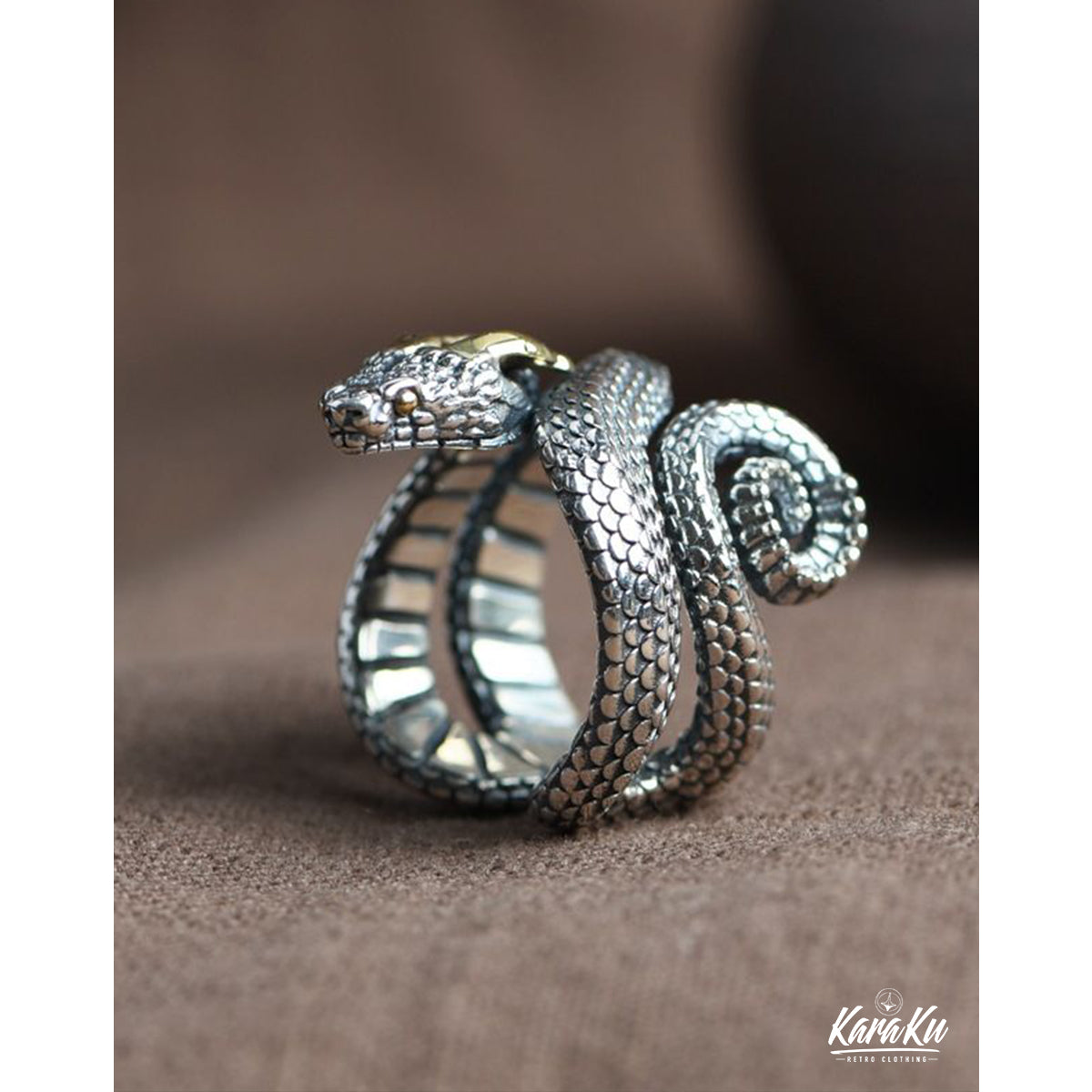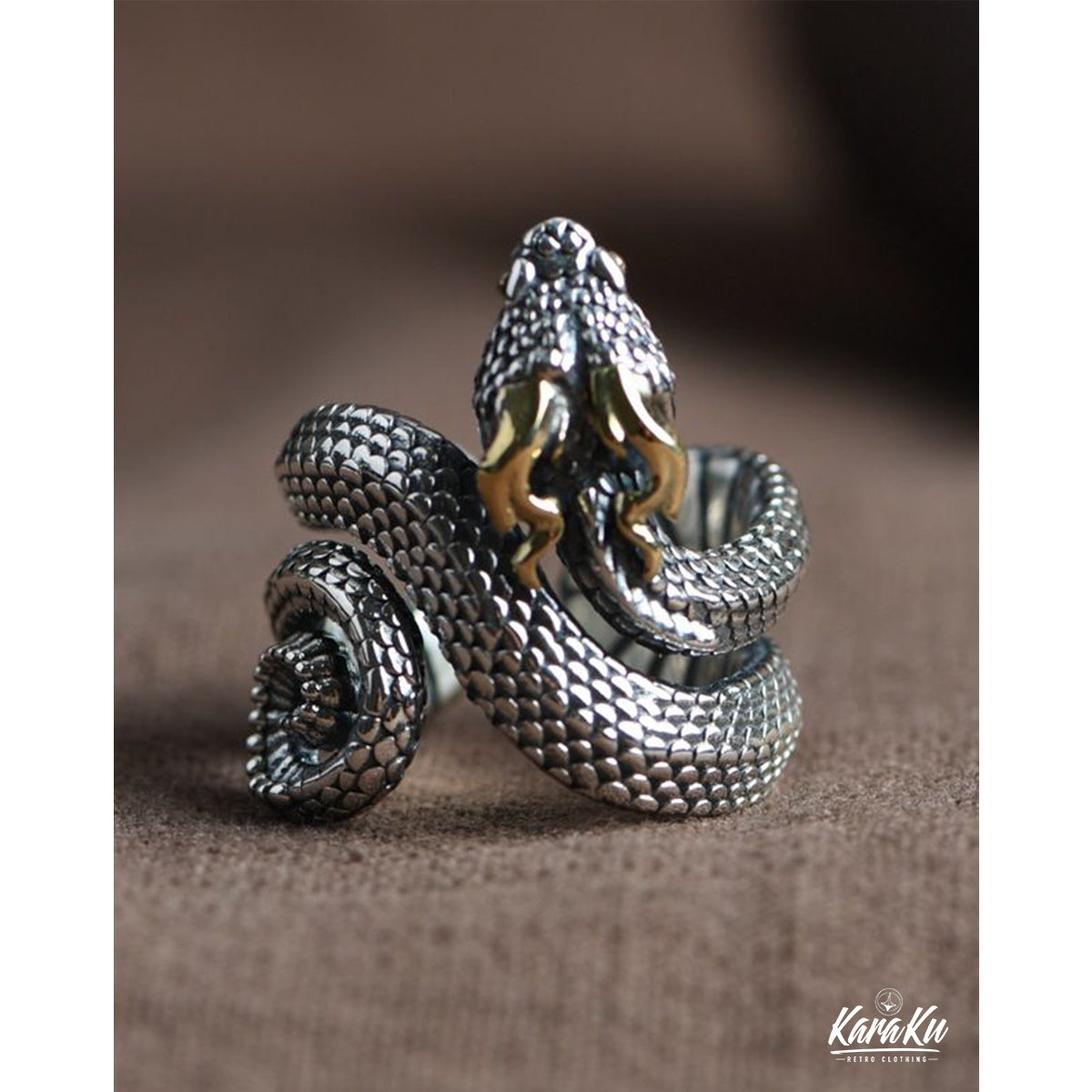고급스럽고 강한 존재감을 주며, 표면에는 텍스처 가공이 되어 뱀의 비늘 질감을 사실감 있게 표현합니다. 매트한 질감과 광택 있는 부분이 조화를 이루어 깊이 있는 디자인을 완성합니다.