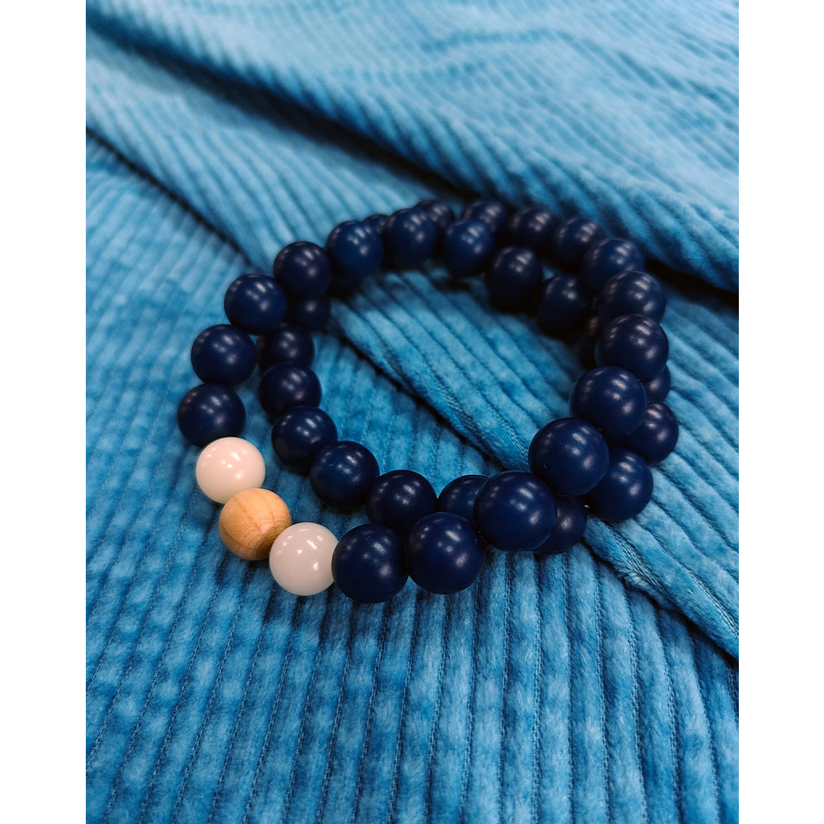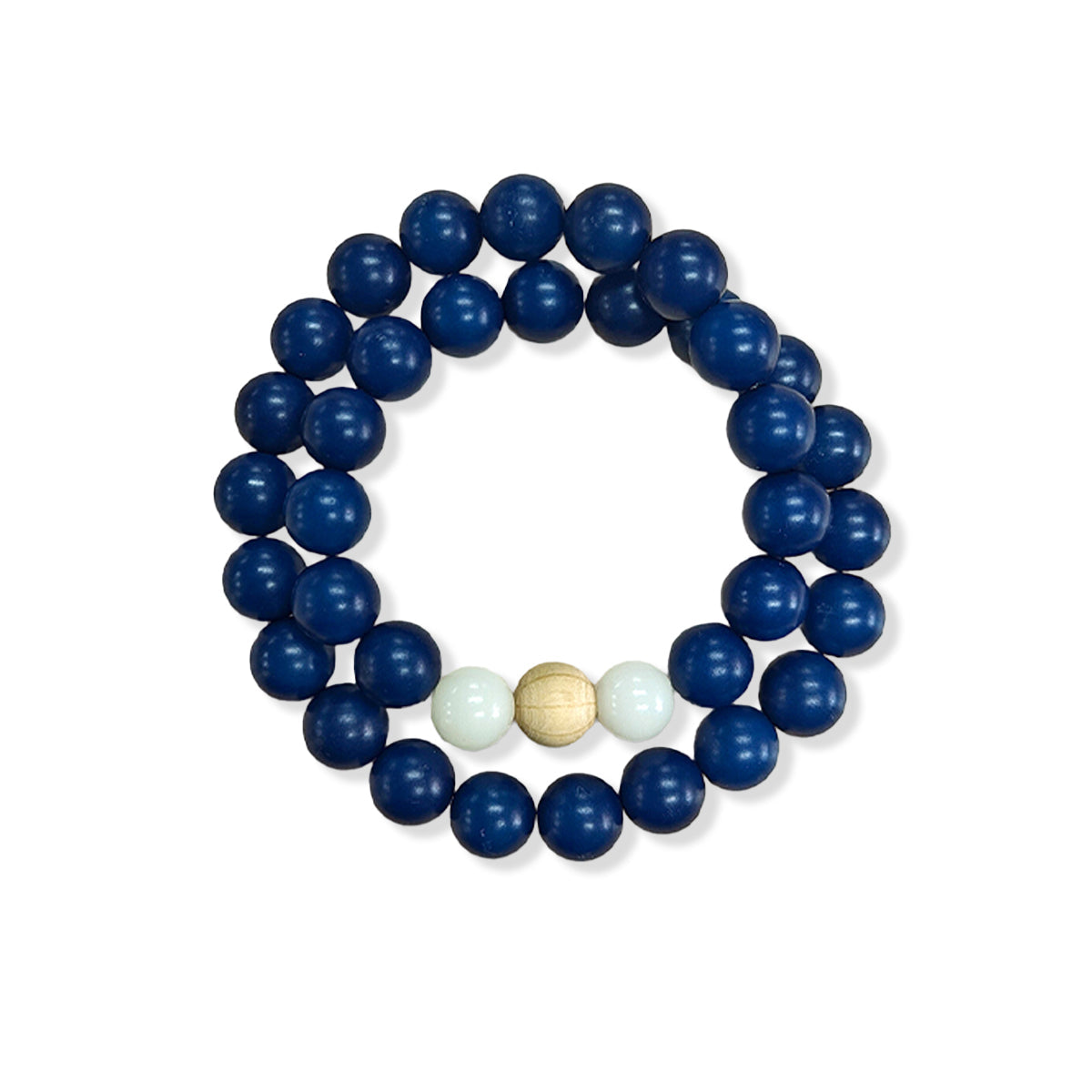 진한 감색으로 염색한 보리근과 육도목/구도목을 조합한 일본 전통 구슬 팔찌입니다.