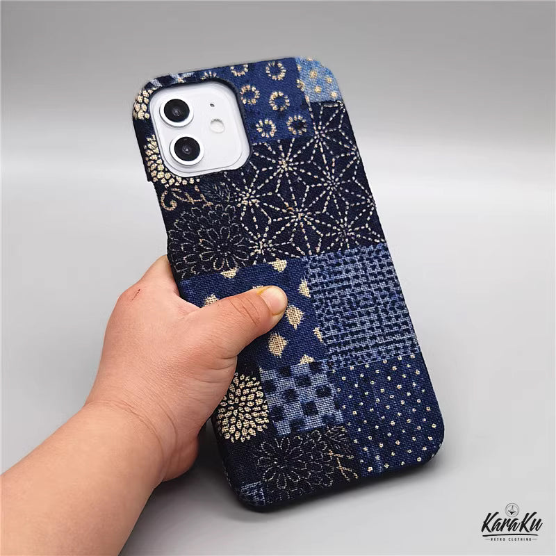 빈티지 분위기를 담은 아이조메 헌포(오래된) 천을 사용하고 제작한 패션 아이템으로 센스 있는 느낌을 이끌어내는 스마트폰 케이스입니다. 누빔도 핸드메이드로 한땀 한땀 정성스럽게 마무리했습니다.
