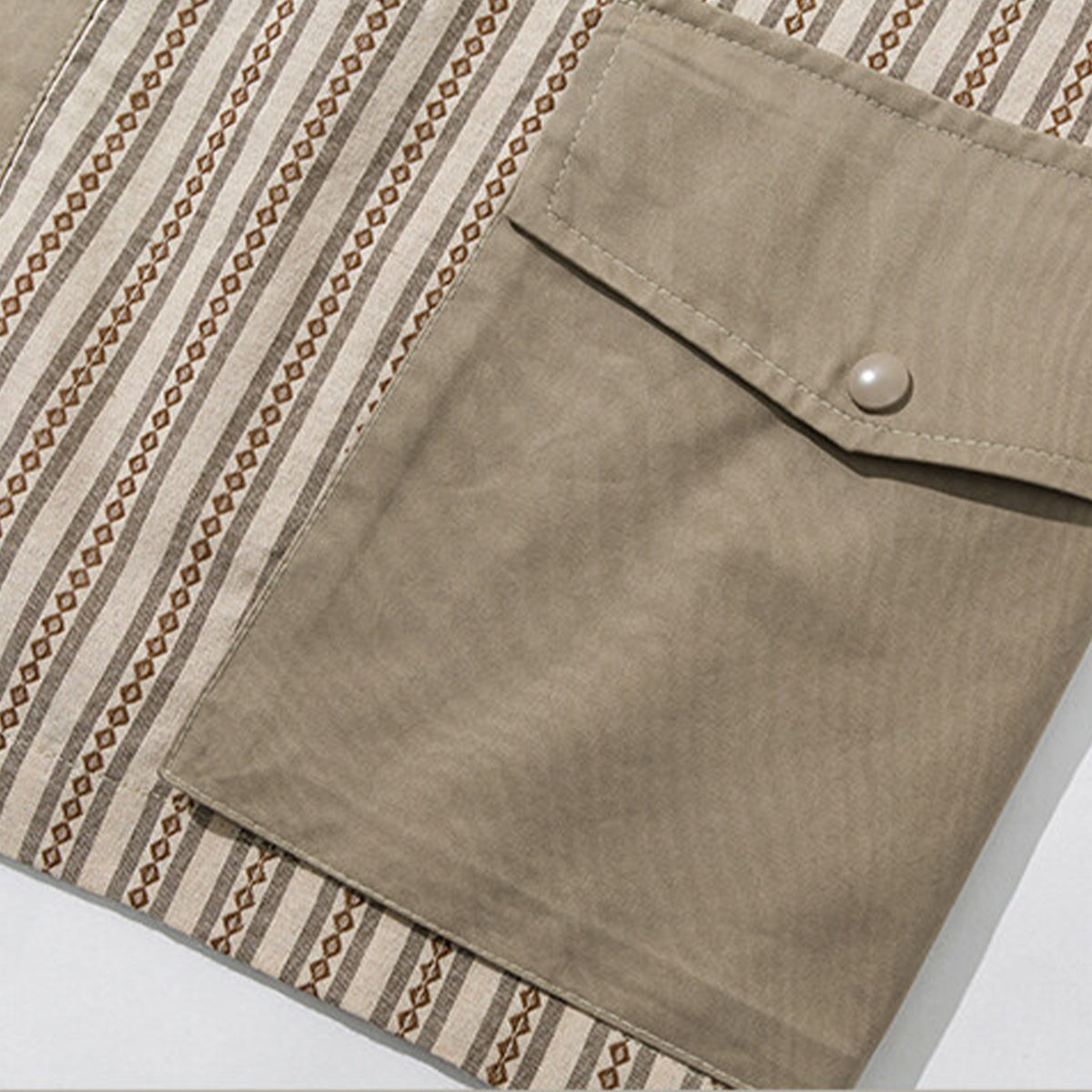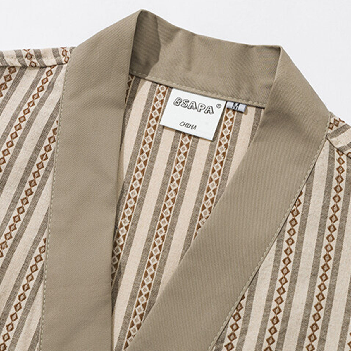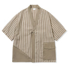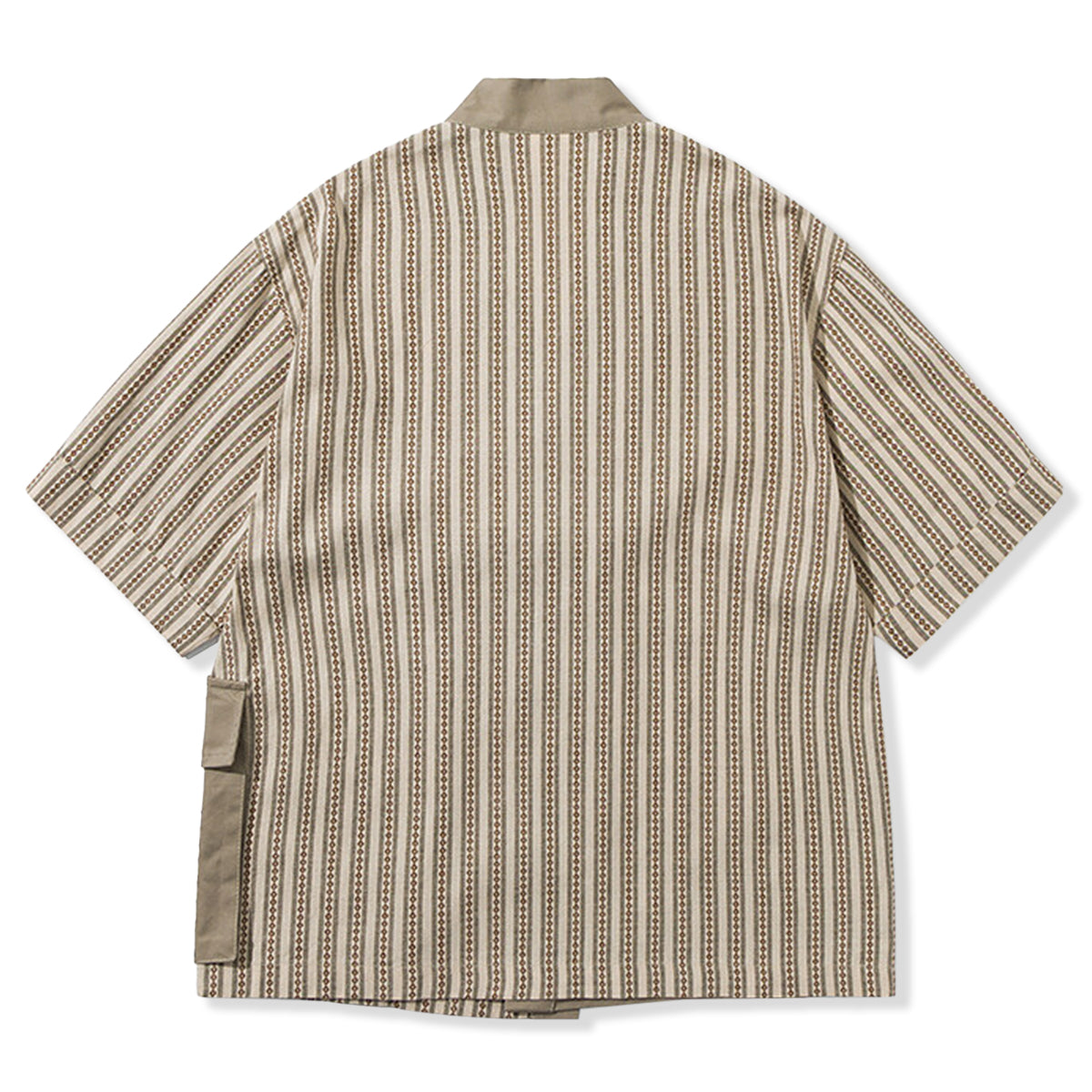 배색 패치 선염 기하학 잔스트라이프 반소매 한텐
