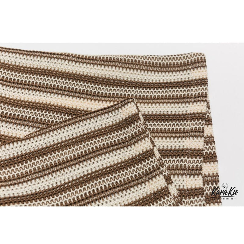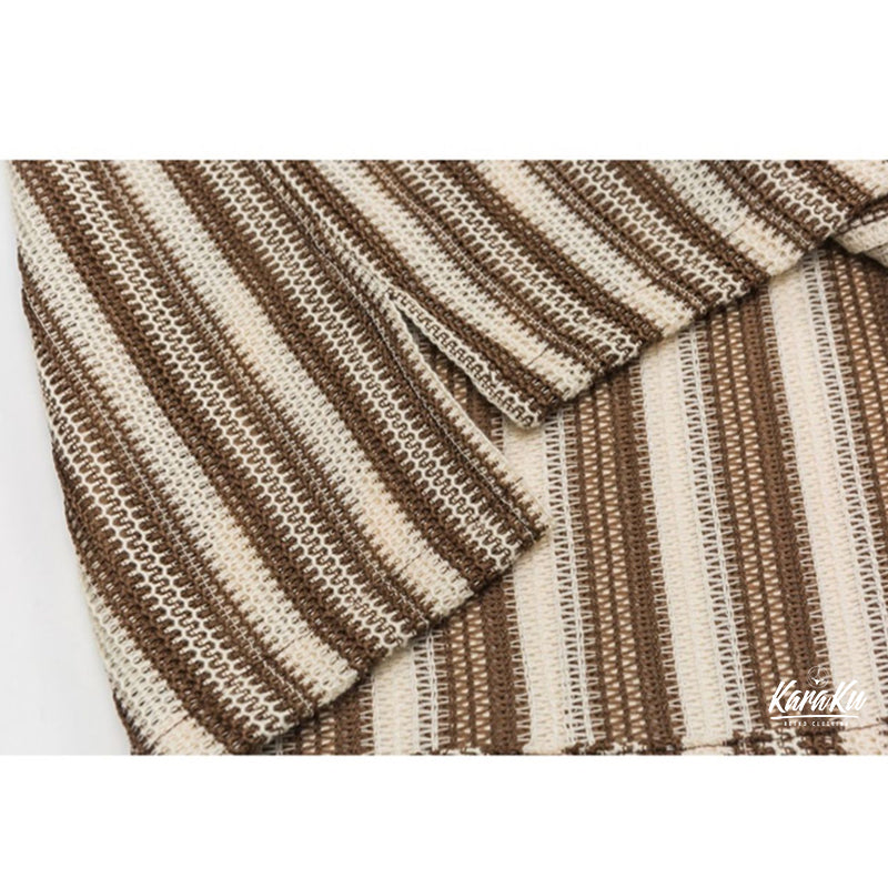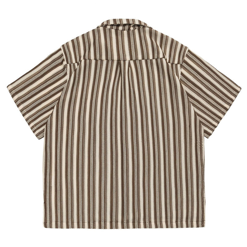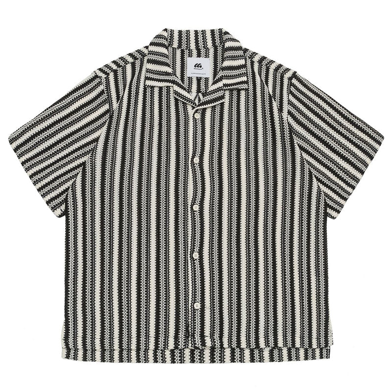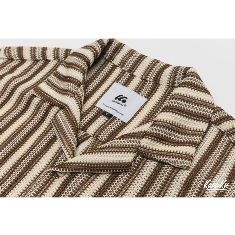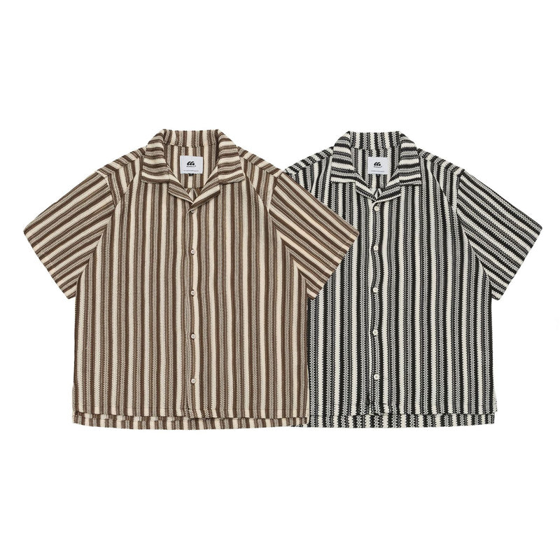니트짜임 스트라이프 무늬 쿠바 카라 셔츠