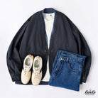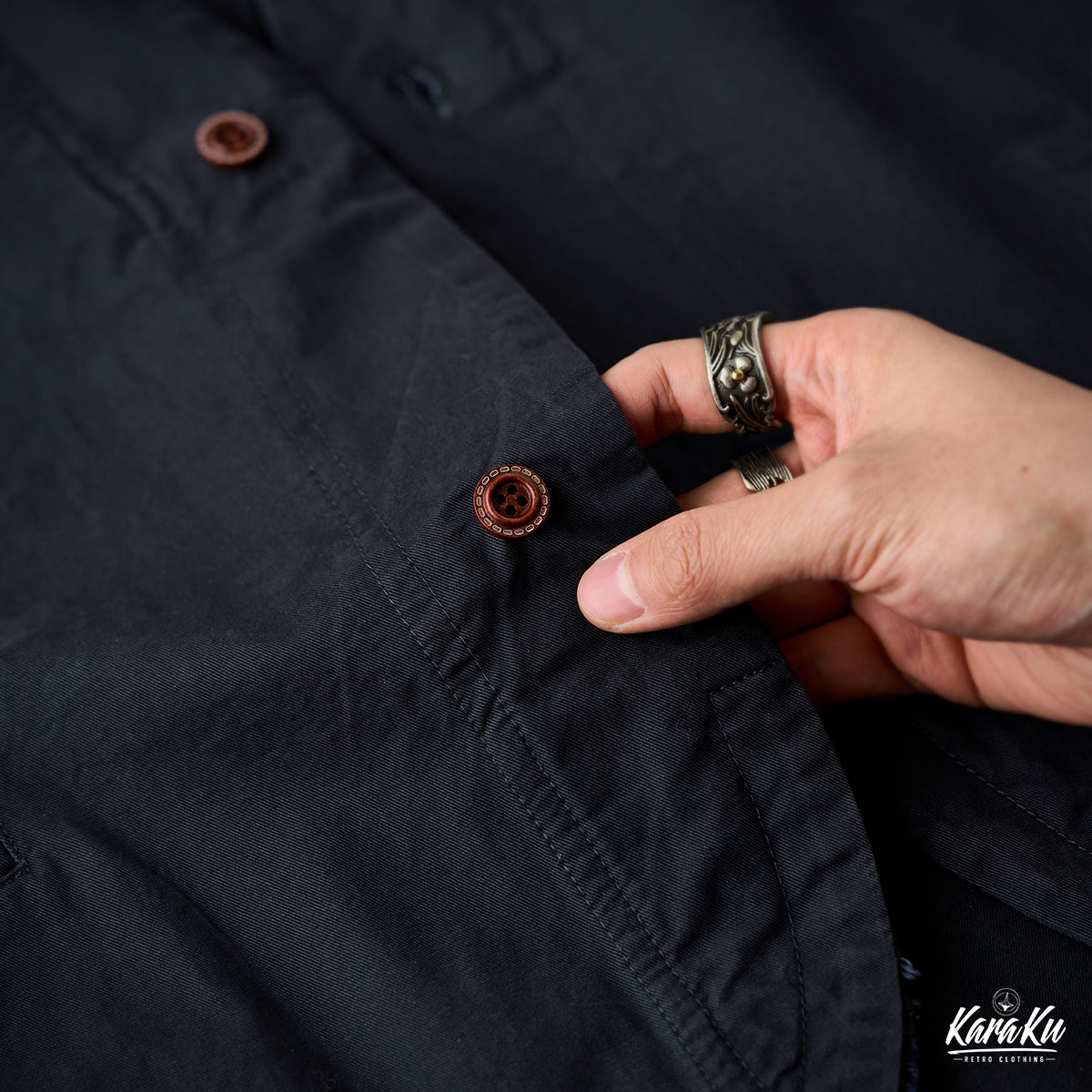 심플한 디자인에 버튼 잠금의 앞면과 두 개의 패치 포켓이 배치되어 있으며, 네이비와 카키 두 가지 색상으로 출시되어 다양한 코디에 쉽게 맞출 수 있는 차분한 색상이 돋보입니다.