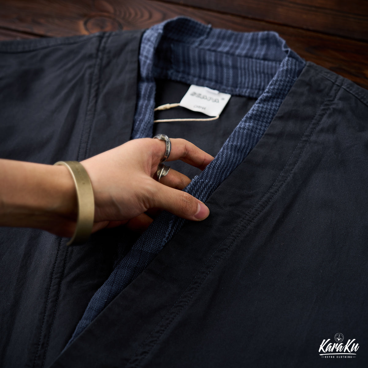 체크 패브릭 부분은 레이어드 스타일을 연출하는 디테일로, 깊이감과 입체감을 더해줍니다.