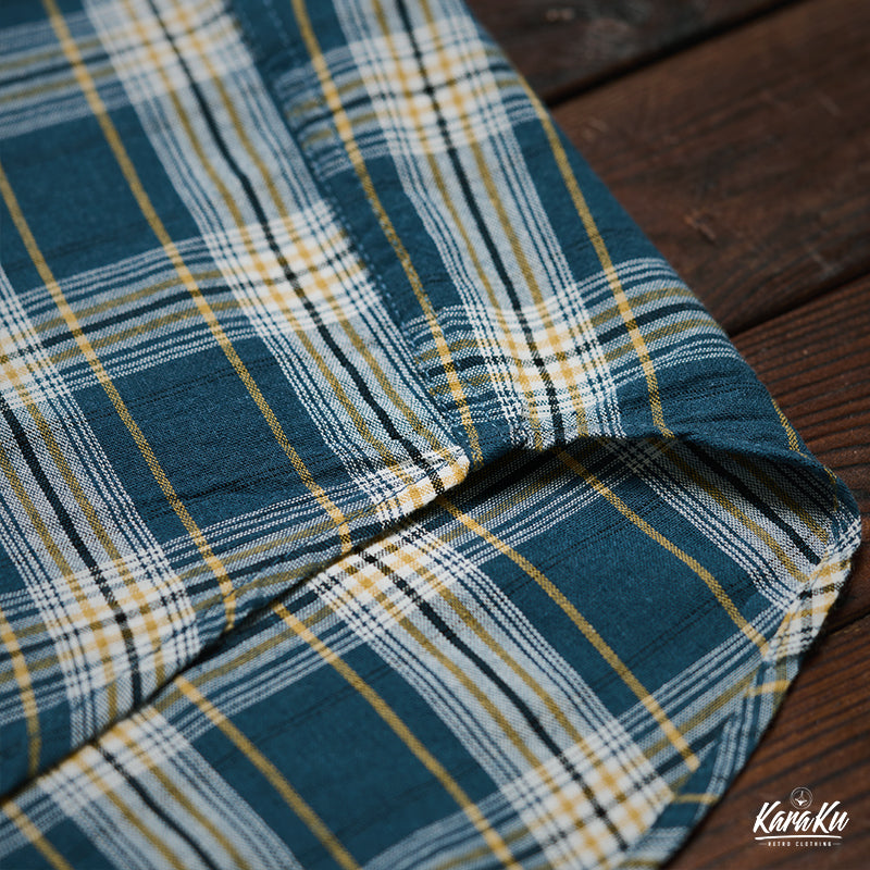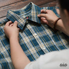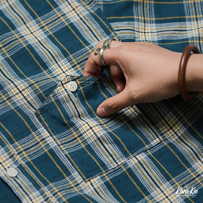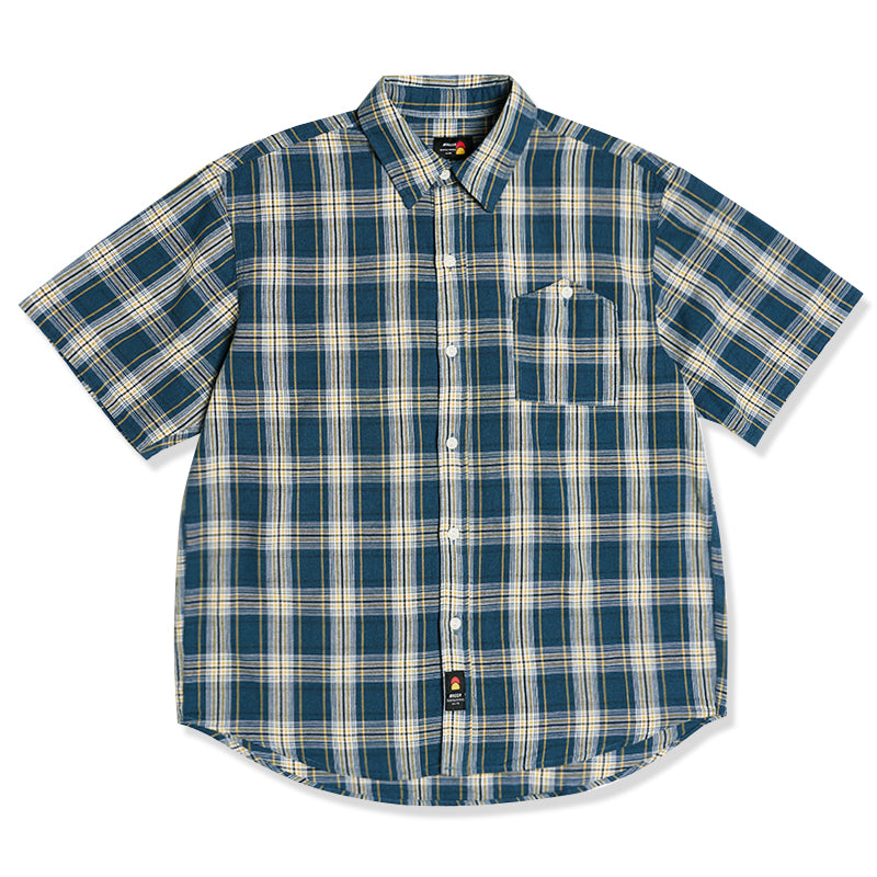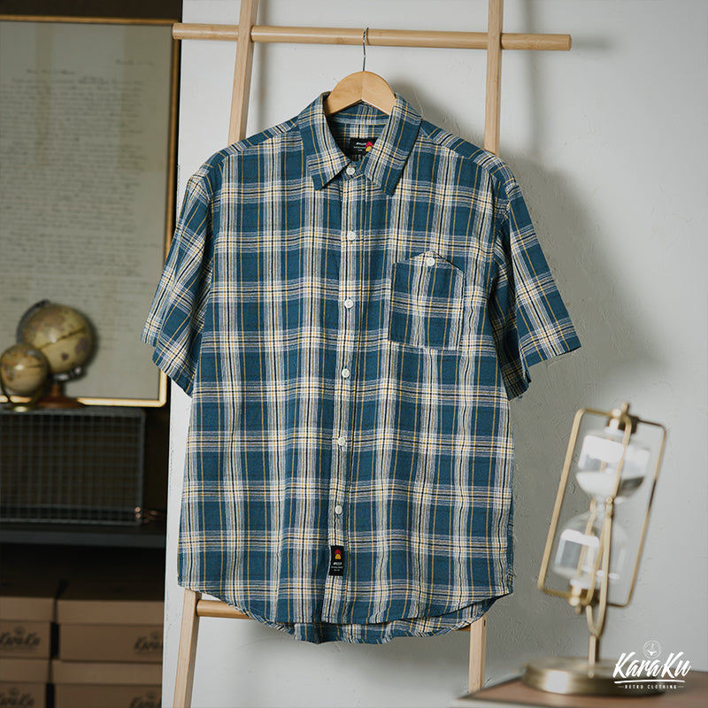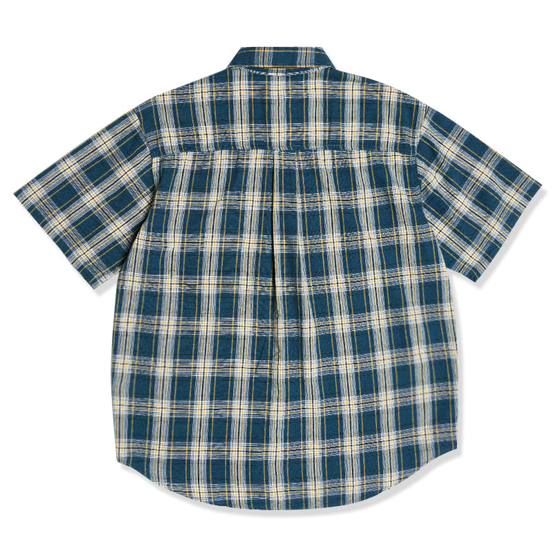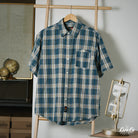 Workstyle "산"포켓 타탄 체크 무늬 선염 반팔 워크셔츠