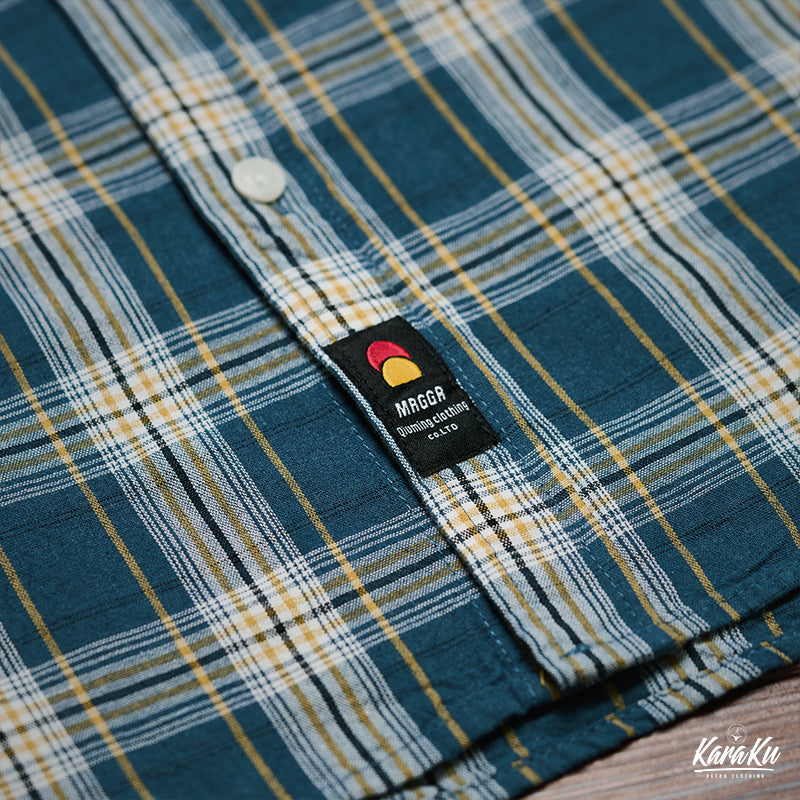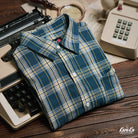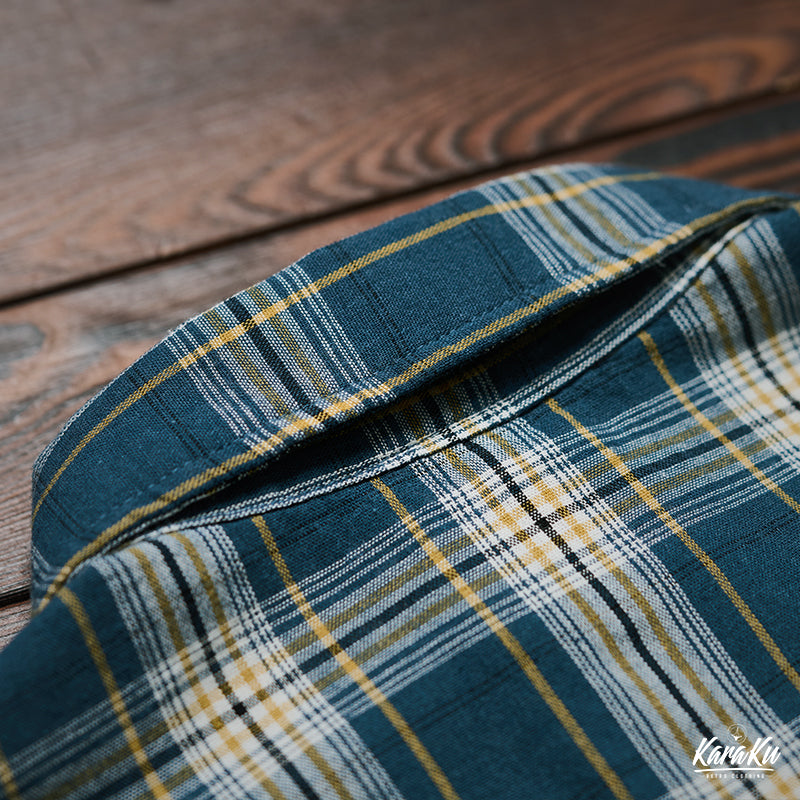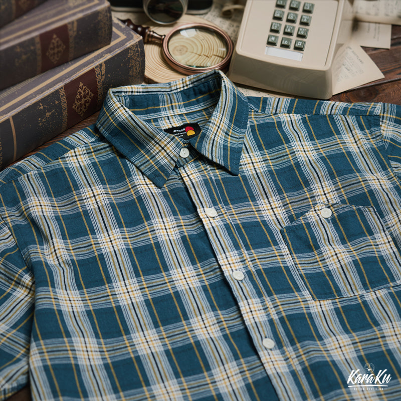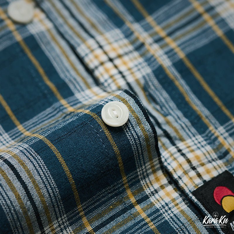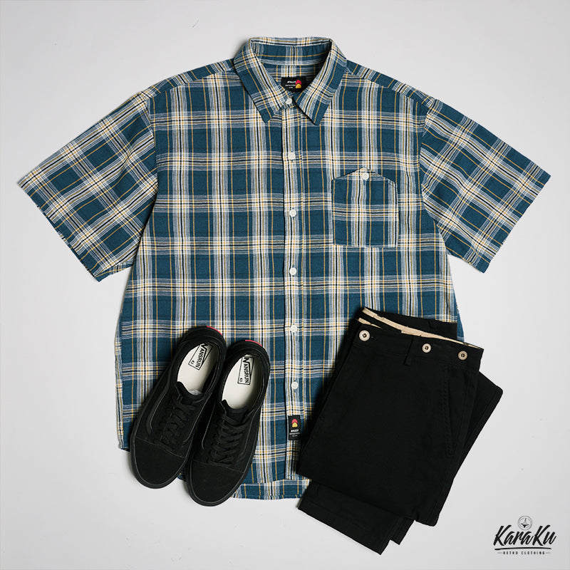 Workstyle "산"포켓 타탄 체크 무늬 선염 반팔 워크셔츠