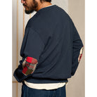 팔꿈치 패치는 빨강, 초록, 검정, 흰색이 어우러진 체크 패턴으로 따뜻한 분위기를 주며, 시각적 균형과 함께 실용성과 디자인성을 더합니다.
