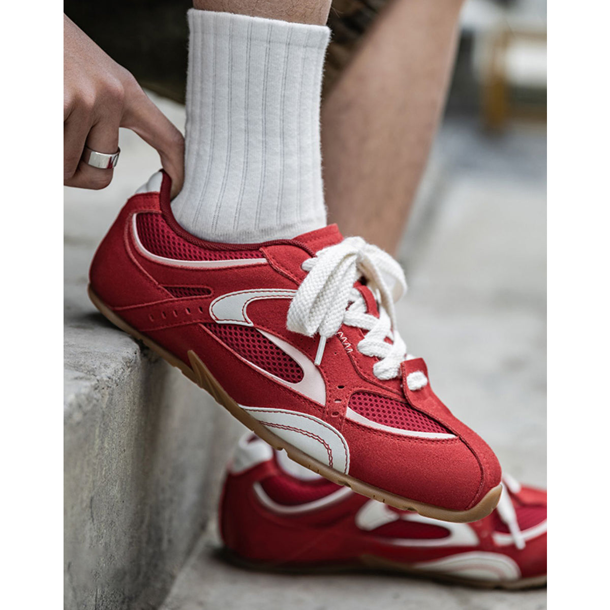 메쉬 & 스웨이드 모터 스포츠 레이싱 스니커즈