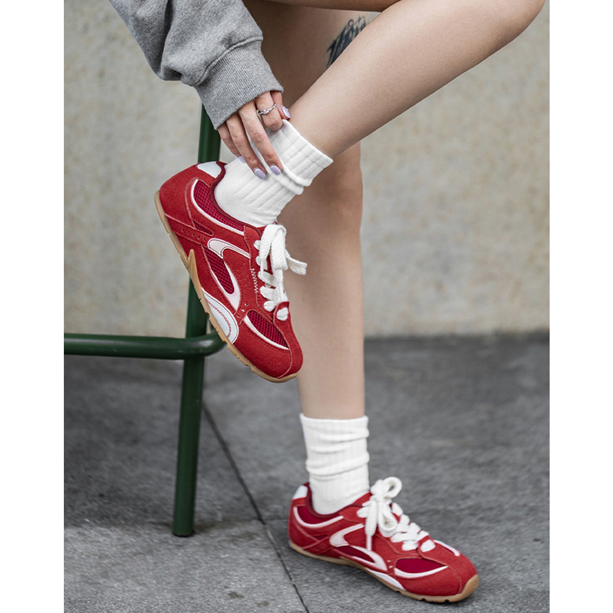 이번 시즌 신작 "레이싱 스니커"는 초기 "F1" 레이싱 슈즈 실루엣을 재구성한 스피드감 넘치는 신발로, 클래식한 "페라리 레드"와 현대적인 세련미를 결합한 빈티지한 분위기를 자아냅니다.