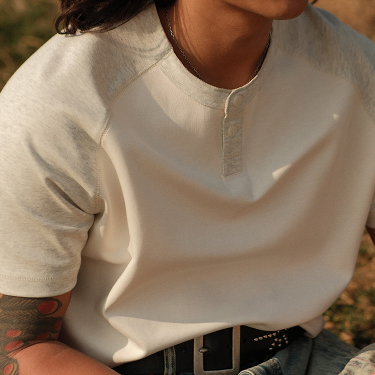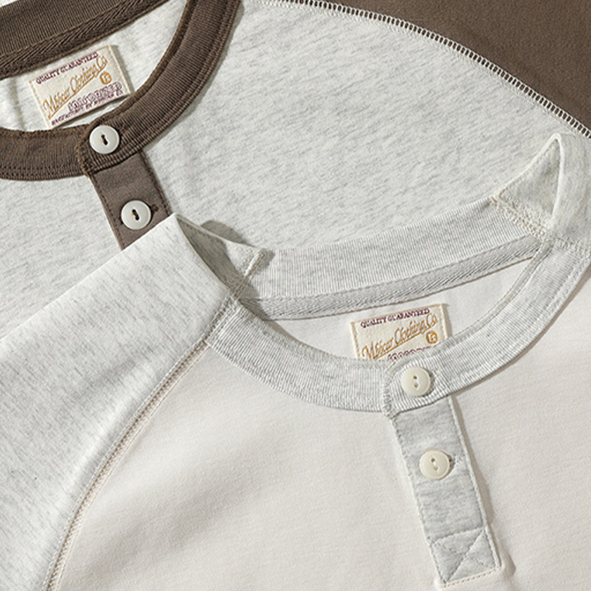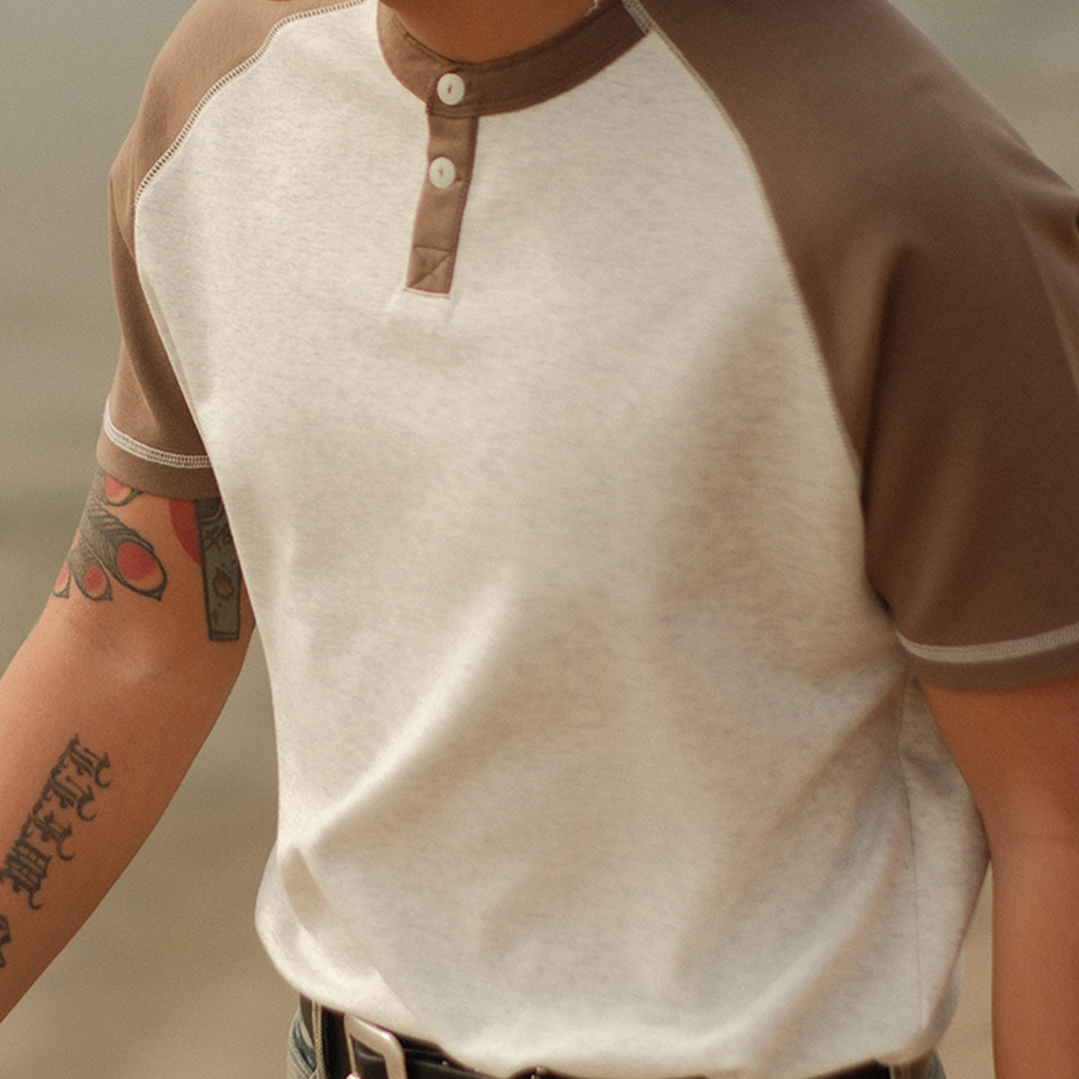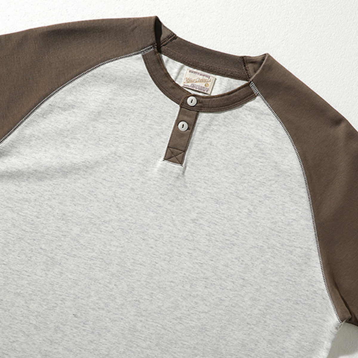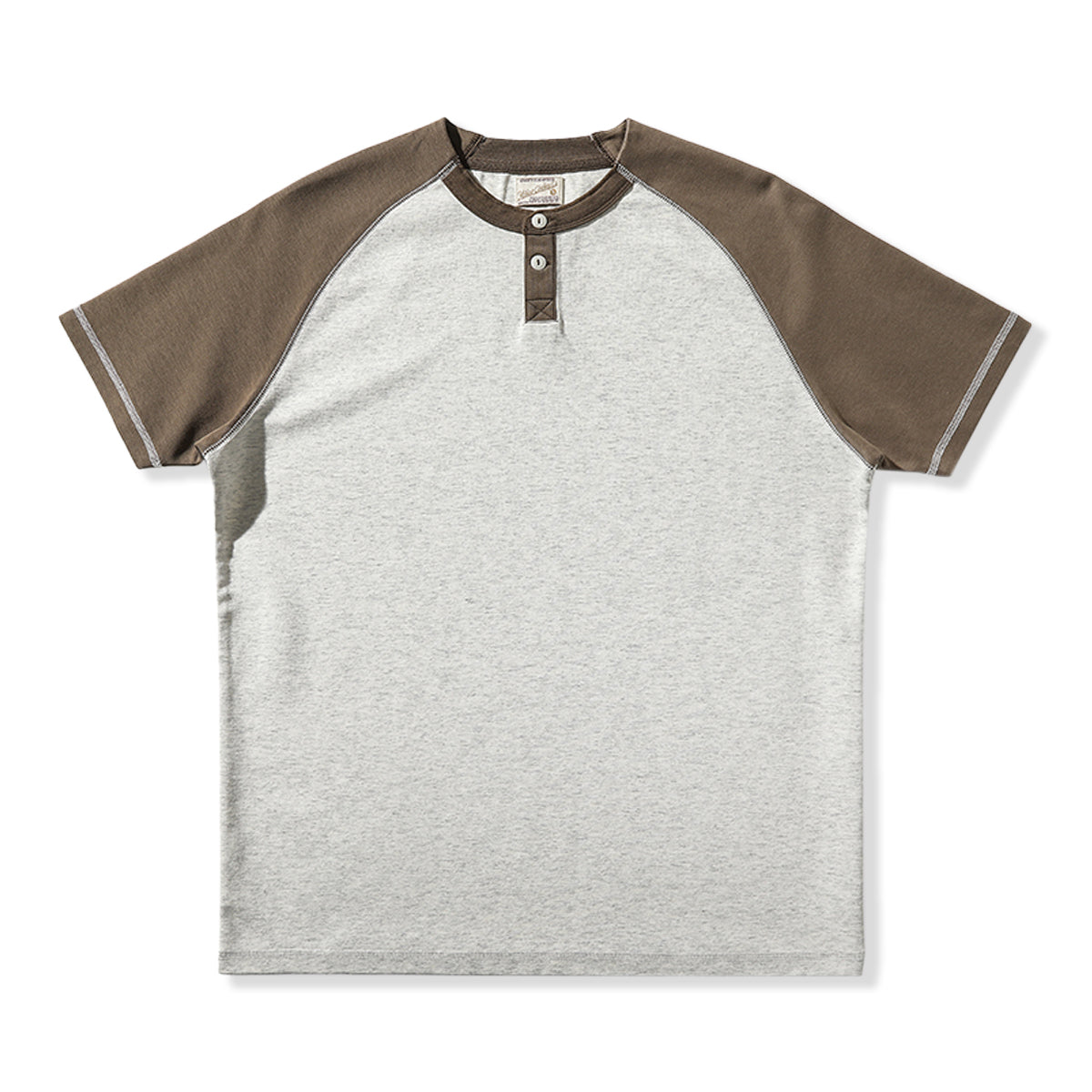 배색 래글런 슬리브 230g 나일론 혼방 헨리넥 티셔츠