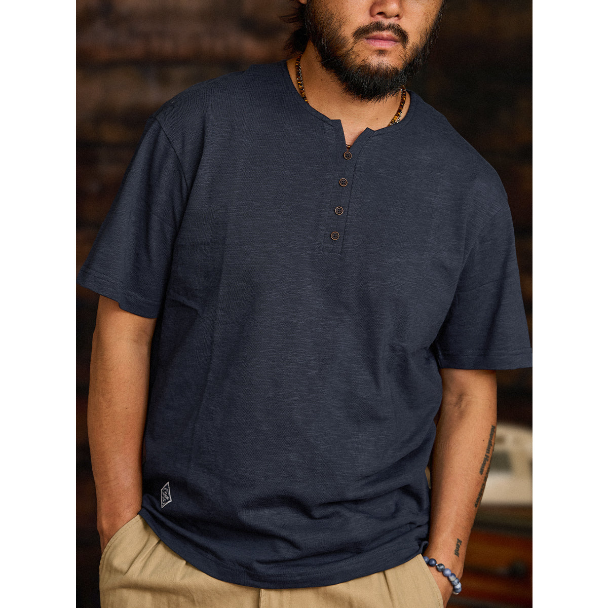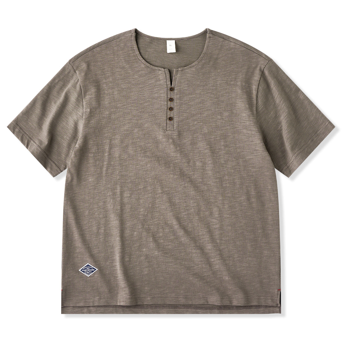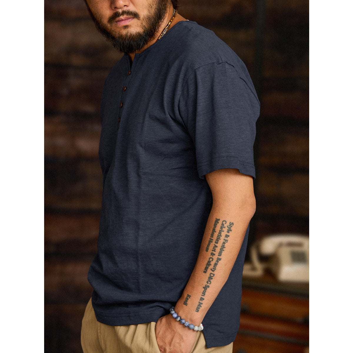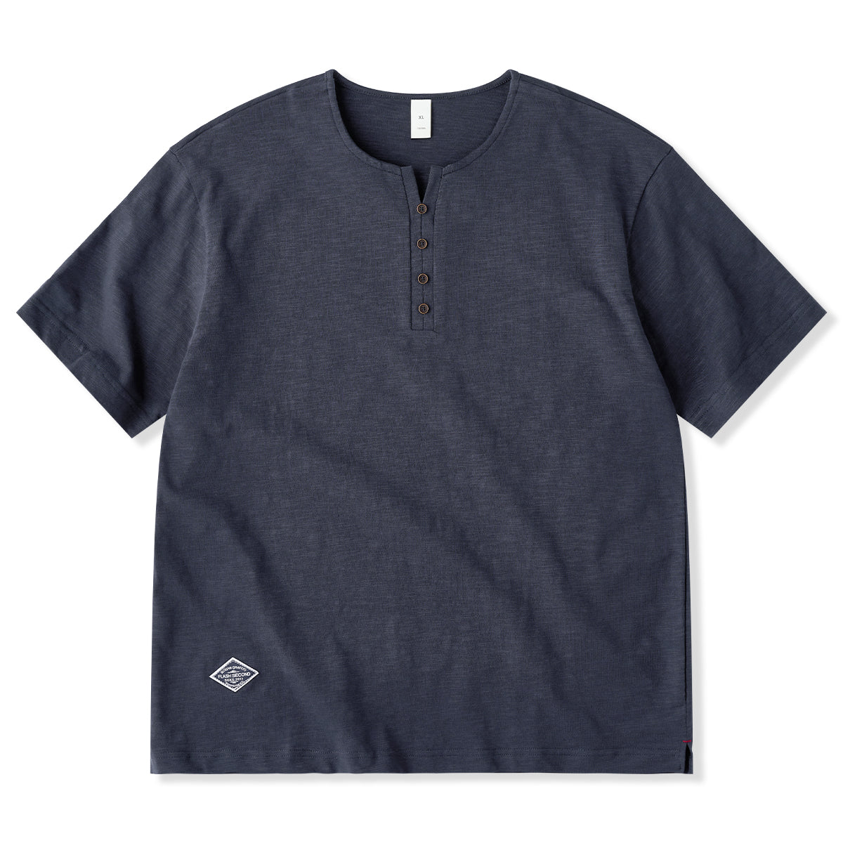 빈티지한 감성과 현대적인 스타일이 조화를 이루는 고급스러운 헨리넥 티셔츠입니다.