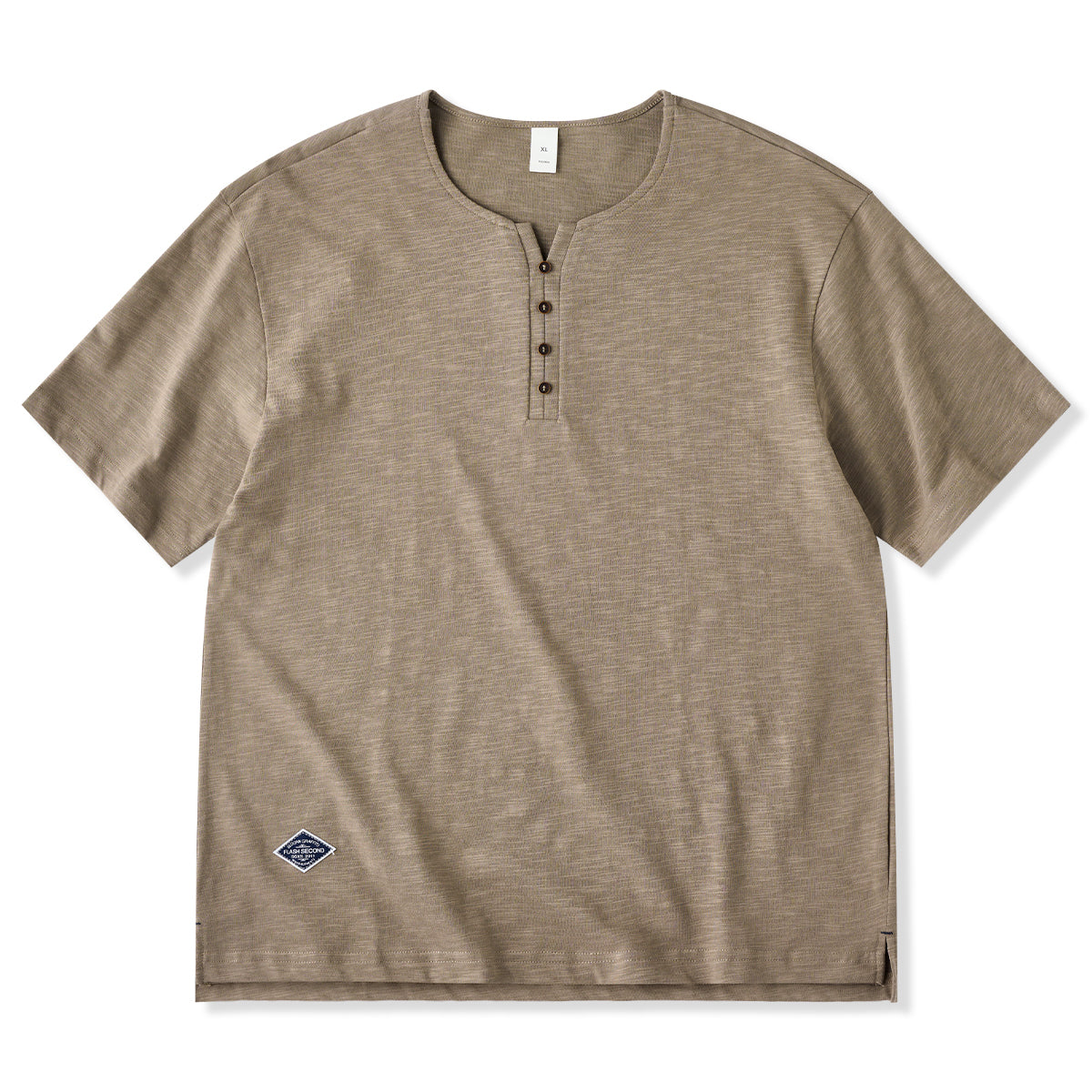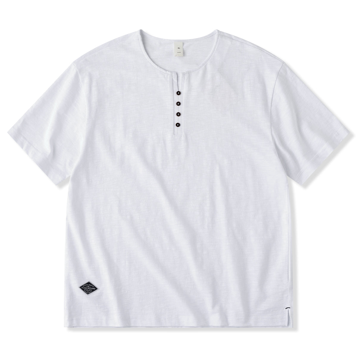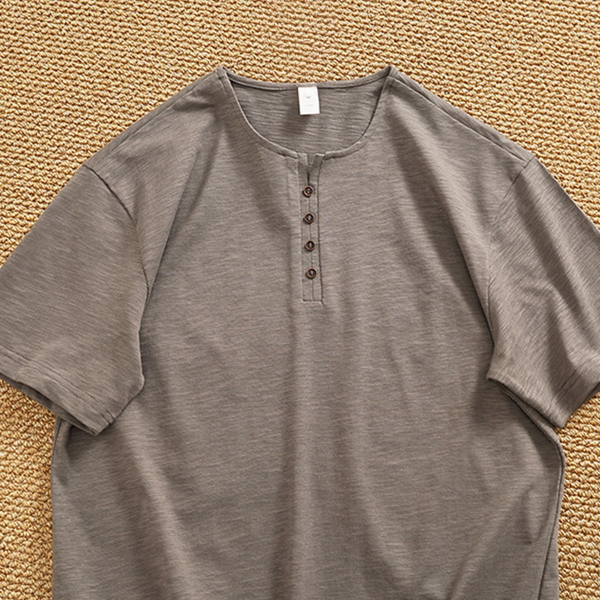 빈티지한 감성과 현대적인 스타일이 조화를 이루는 고급스러운 헨리넥 티셔츠입니다.