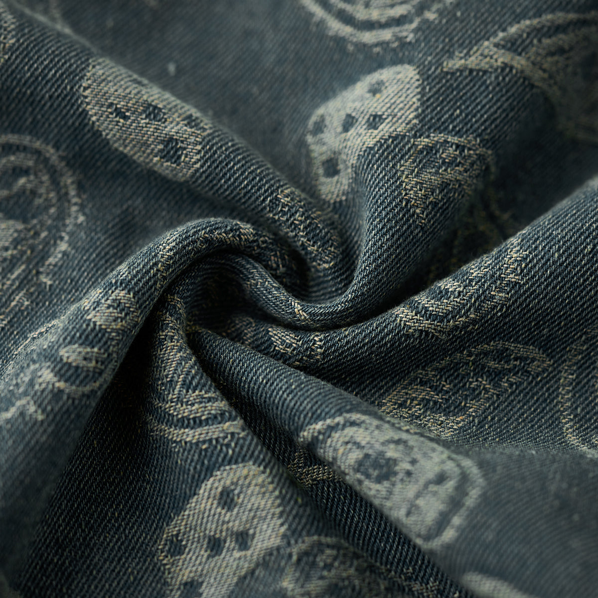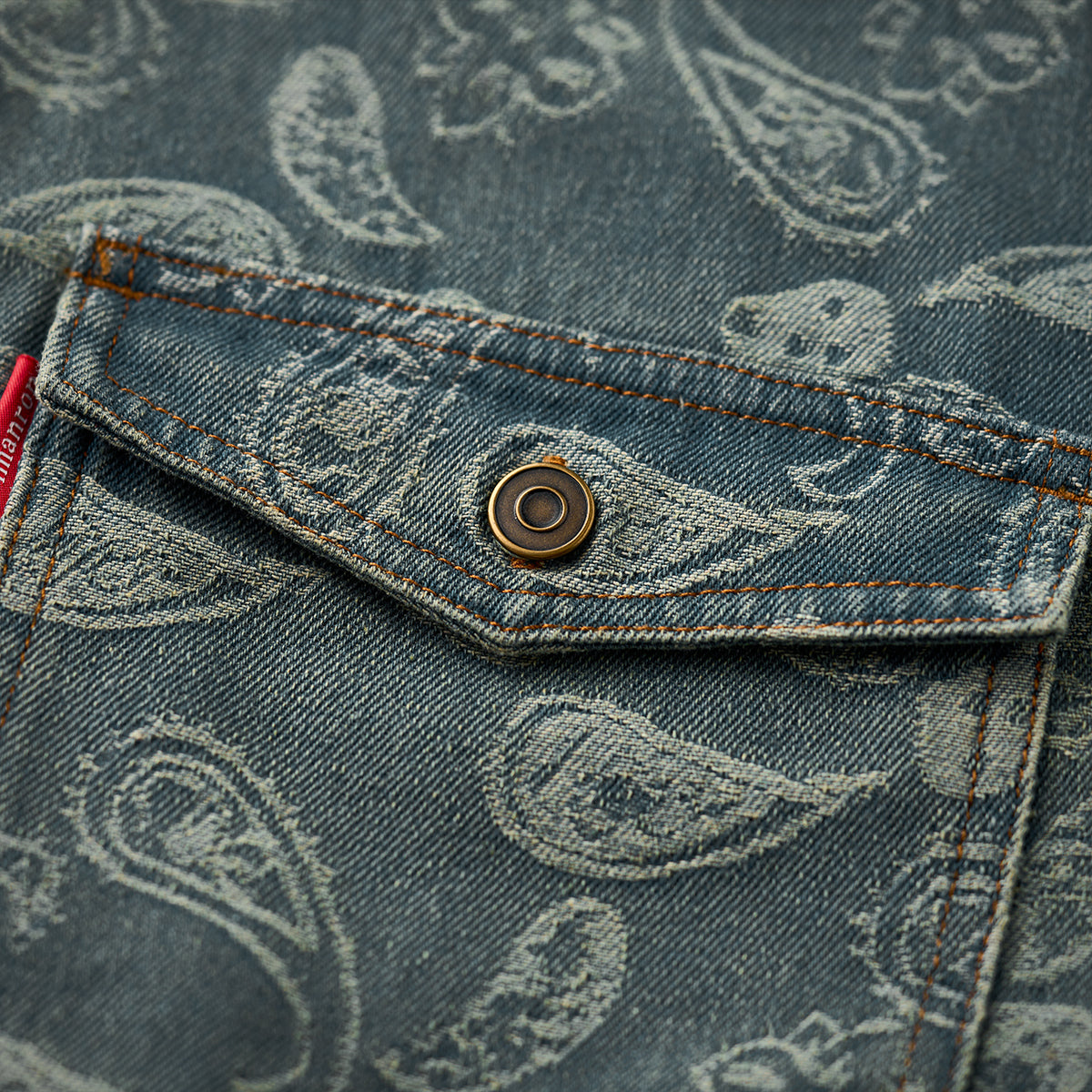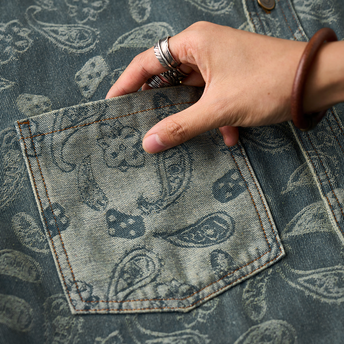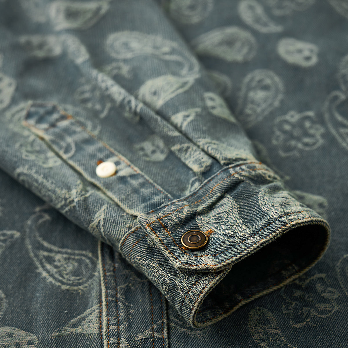 자카드 직조으로 표현한 페이즐리 패턴이 데님의 투박함과 조화를 이루며 감각적인 스타일을 완성합니다.