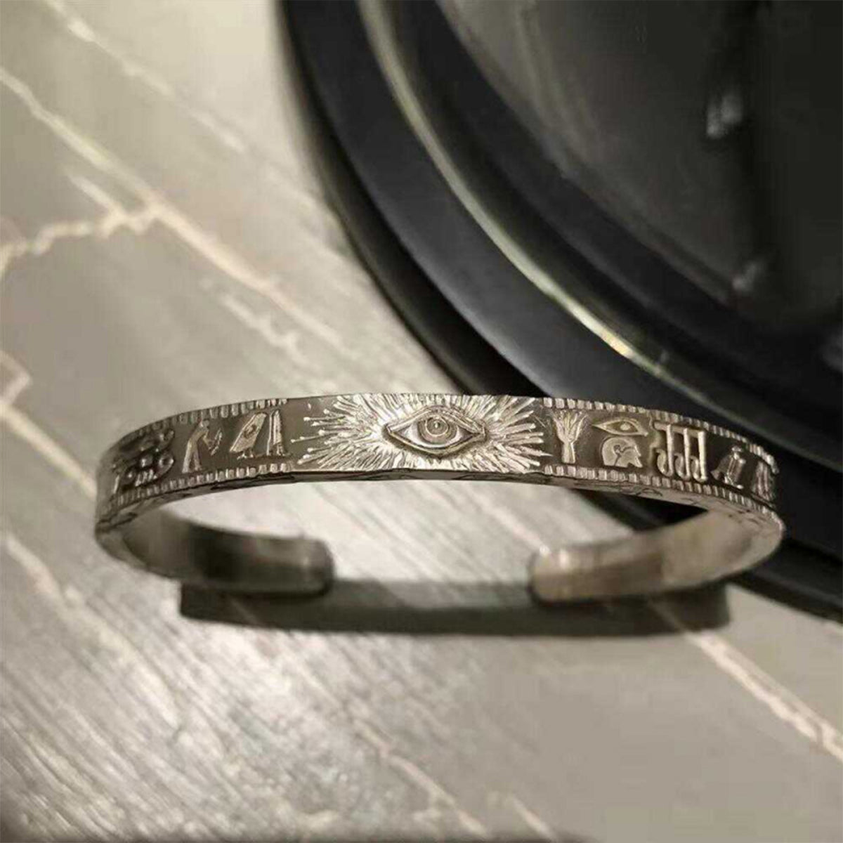 실버 925 소재로 제작된 팔찌로, 고대 이집트 신화의 상징인 '호루스의 눈'이 정교하게 각인되어 있습니다.