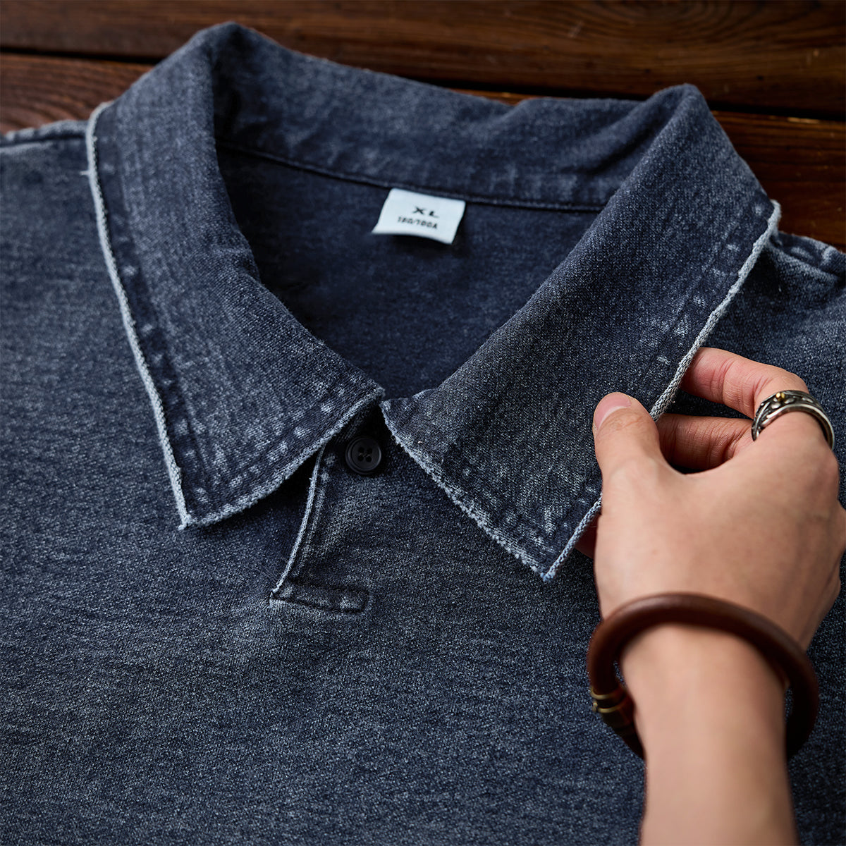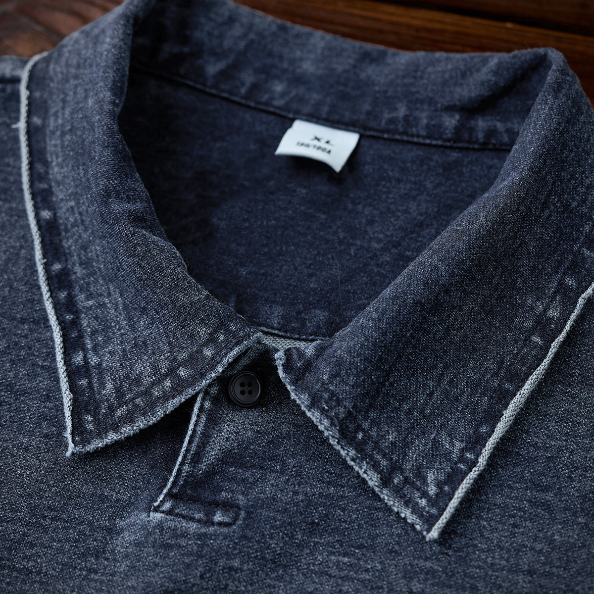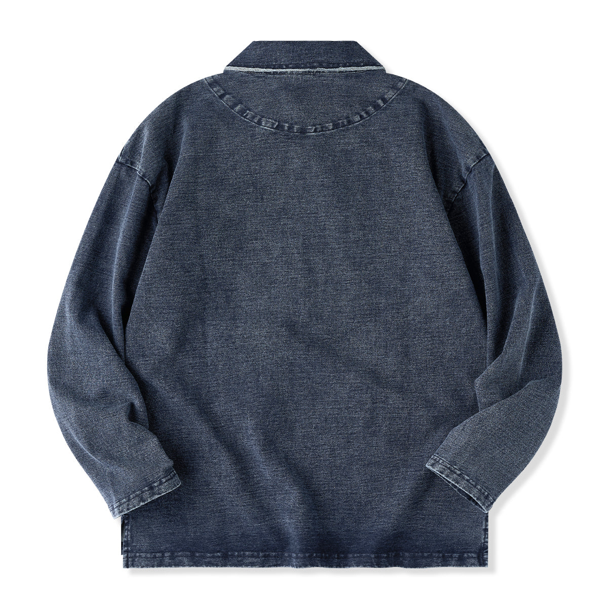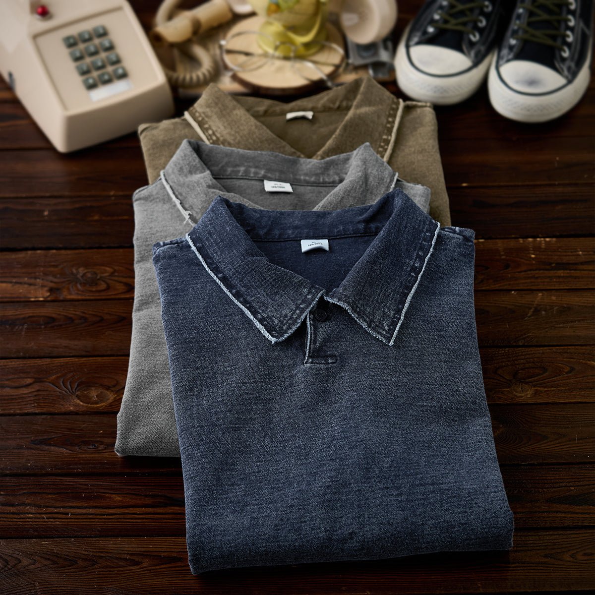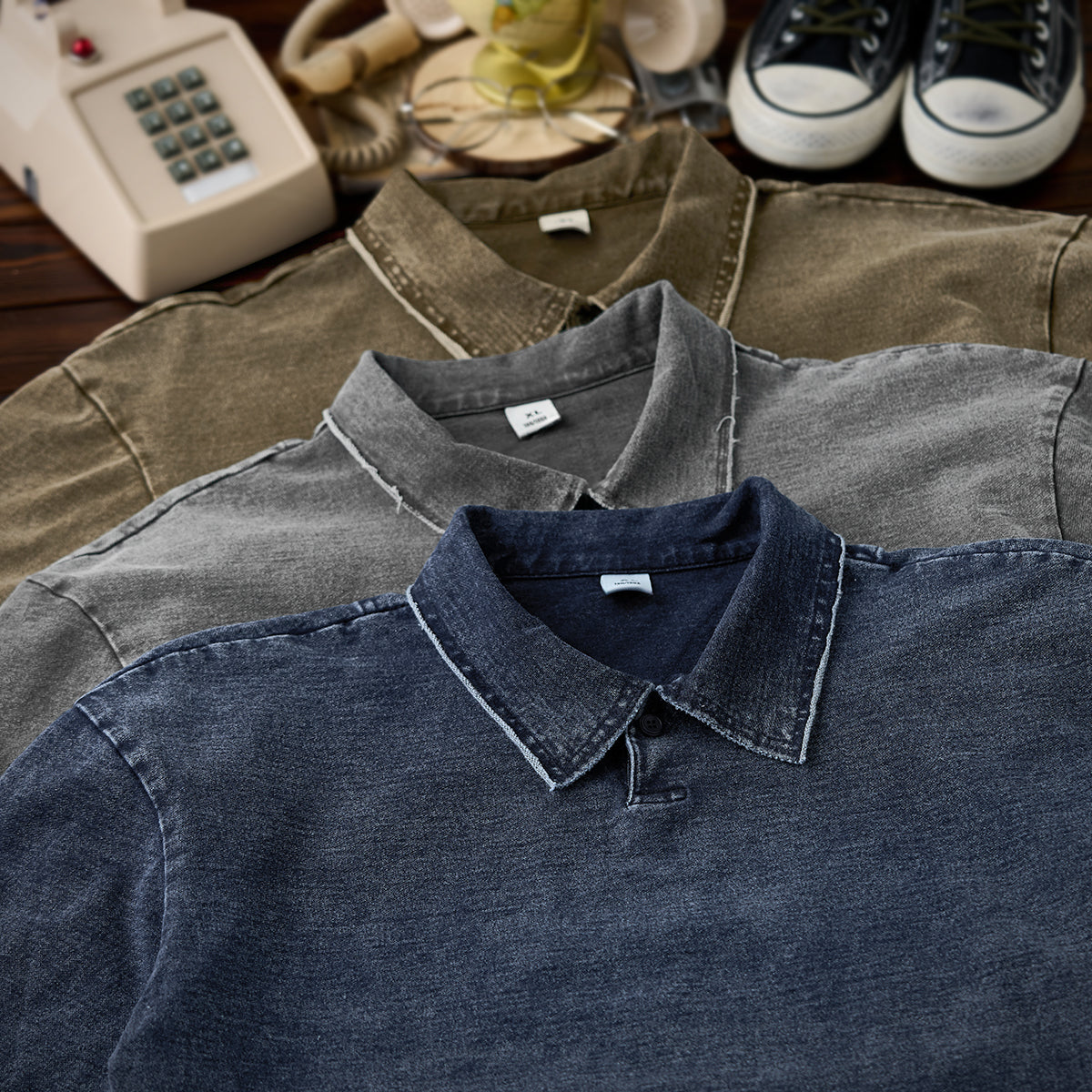 2컬러 페이크 레이어드 폴로 칼라 V넥 긴팔 셔츠