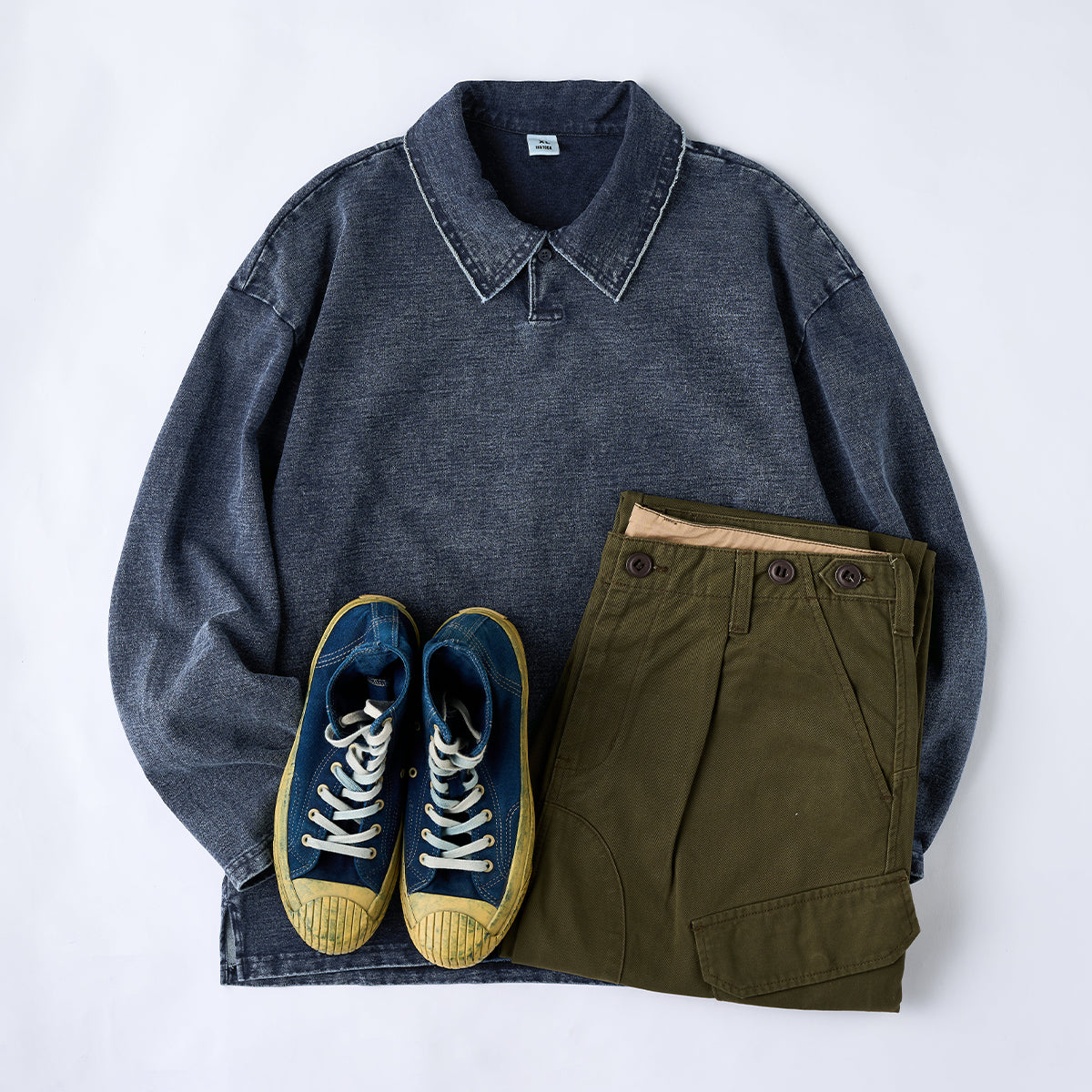 3컬러 드롭 숄더 폴로 카라 스웨트셔츠