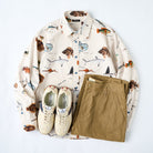 화려한 전체 패턴이지만 내용은 매우 학술적입니다. 자연사 박물관이나 도감을 좋아하는 층에 특히 어필하며, 치노 팬츠나 슬림핏 팬츠와 매치하면 거리에서도 멋스럽게 입을 수 있습니다. 스니커즈나 로퍼를 더하면 현대적인 느낌을 한층 강조할 수 있습니다.