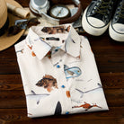 【사전예약】「생물도감·심해어」패턴 오더메이드 버튼 긴팔 셔츠