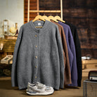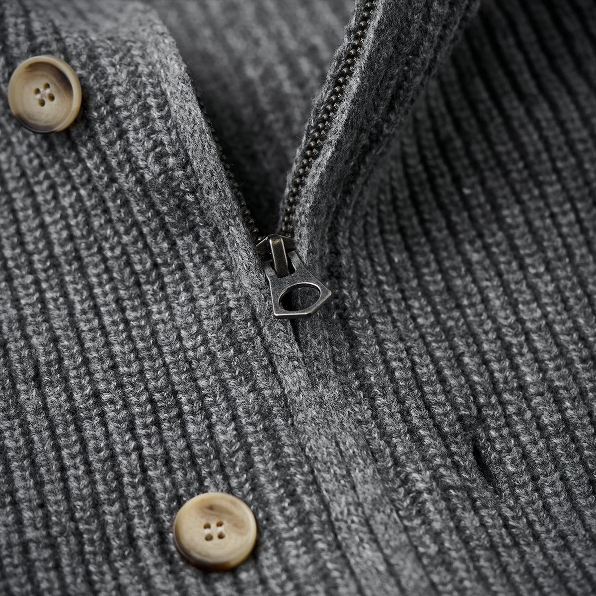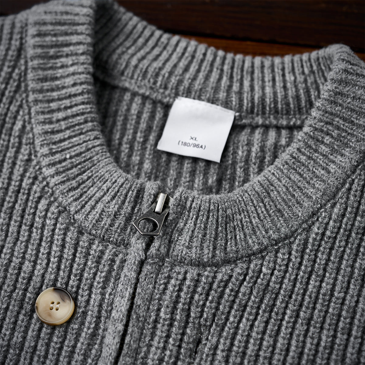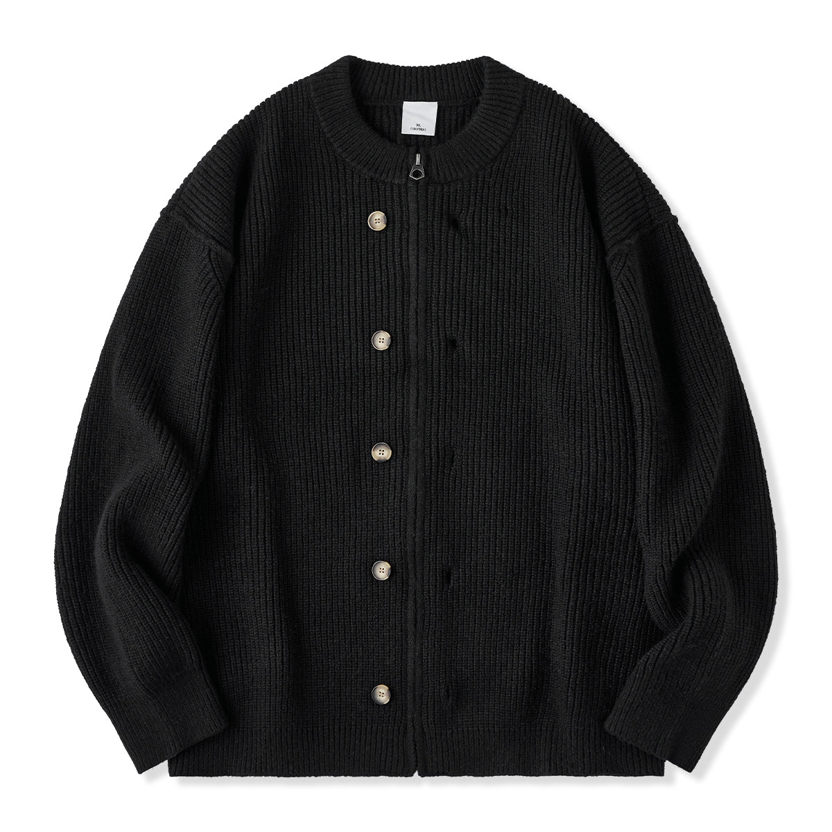단추와 지퍼가 있어 착용자가 스타일에 맞게 여밀 수 있는 가디건입니다. 가을에는 아우터로, 겨울에는 이너로 활용하기 좋습니다.