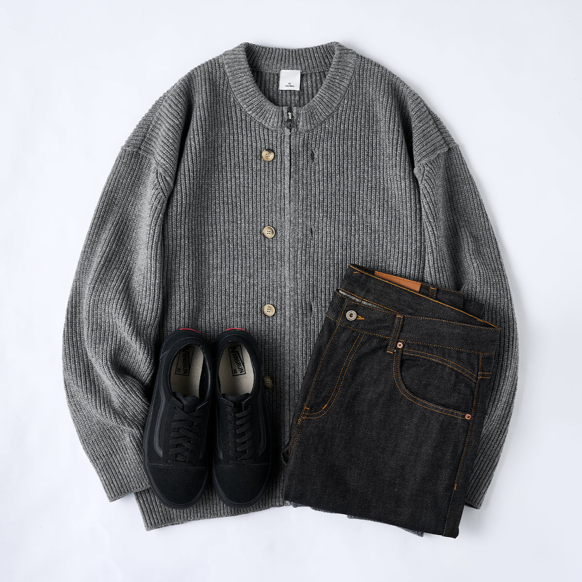 Button&Zipper 두 가지 여밈 방식 리브 니트 가디건
