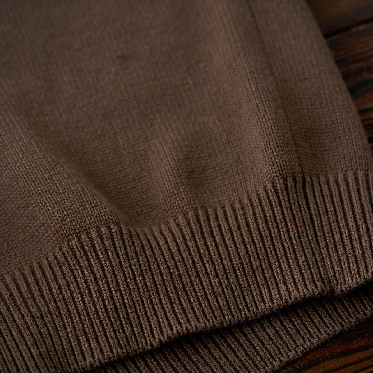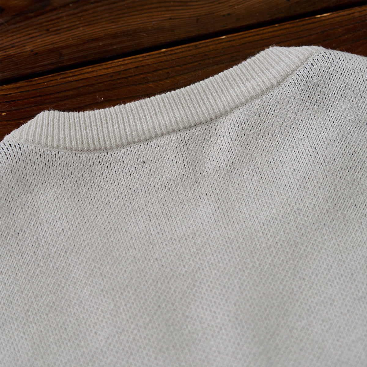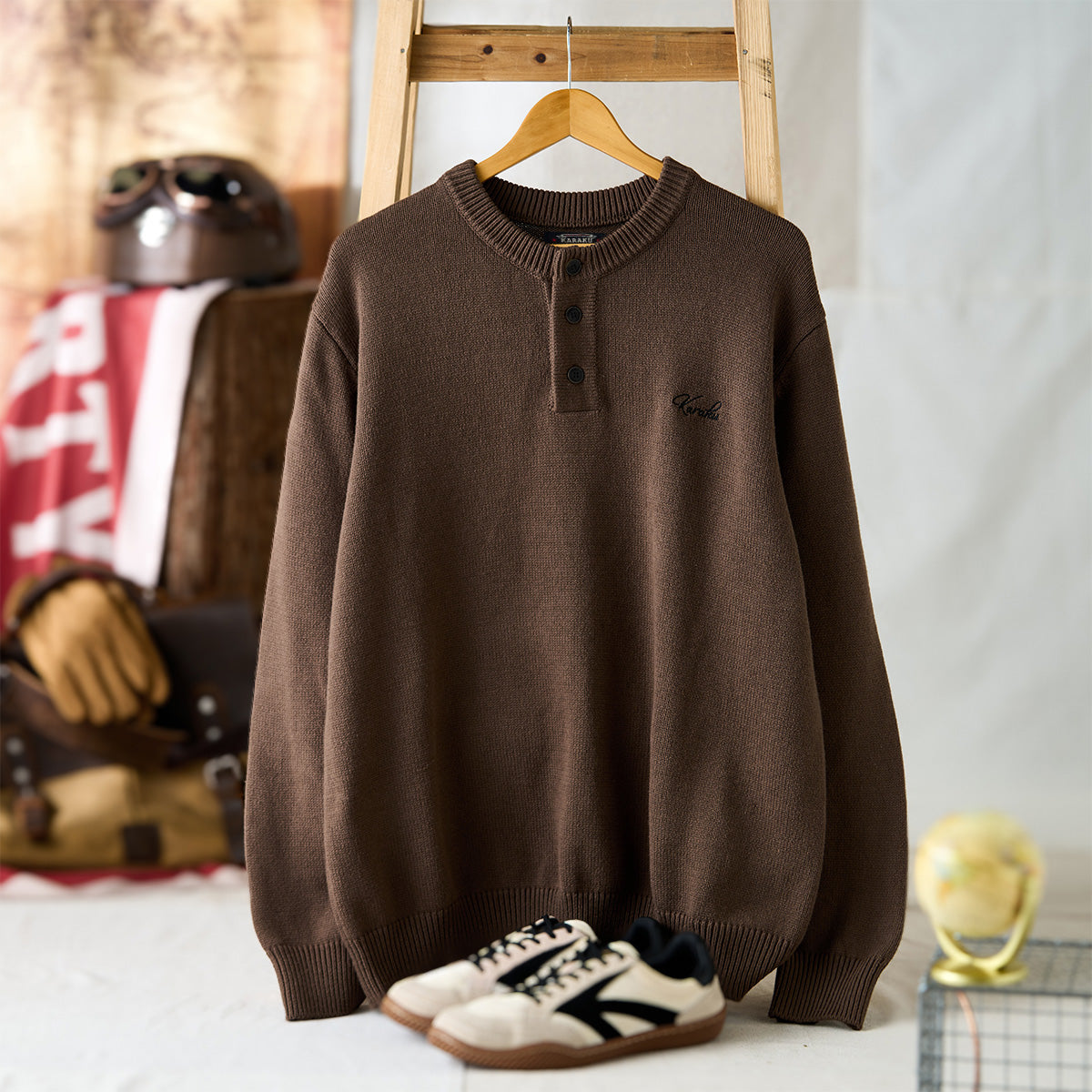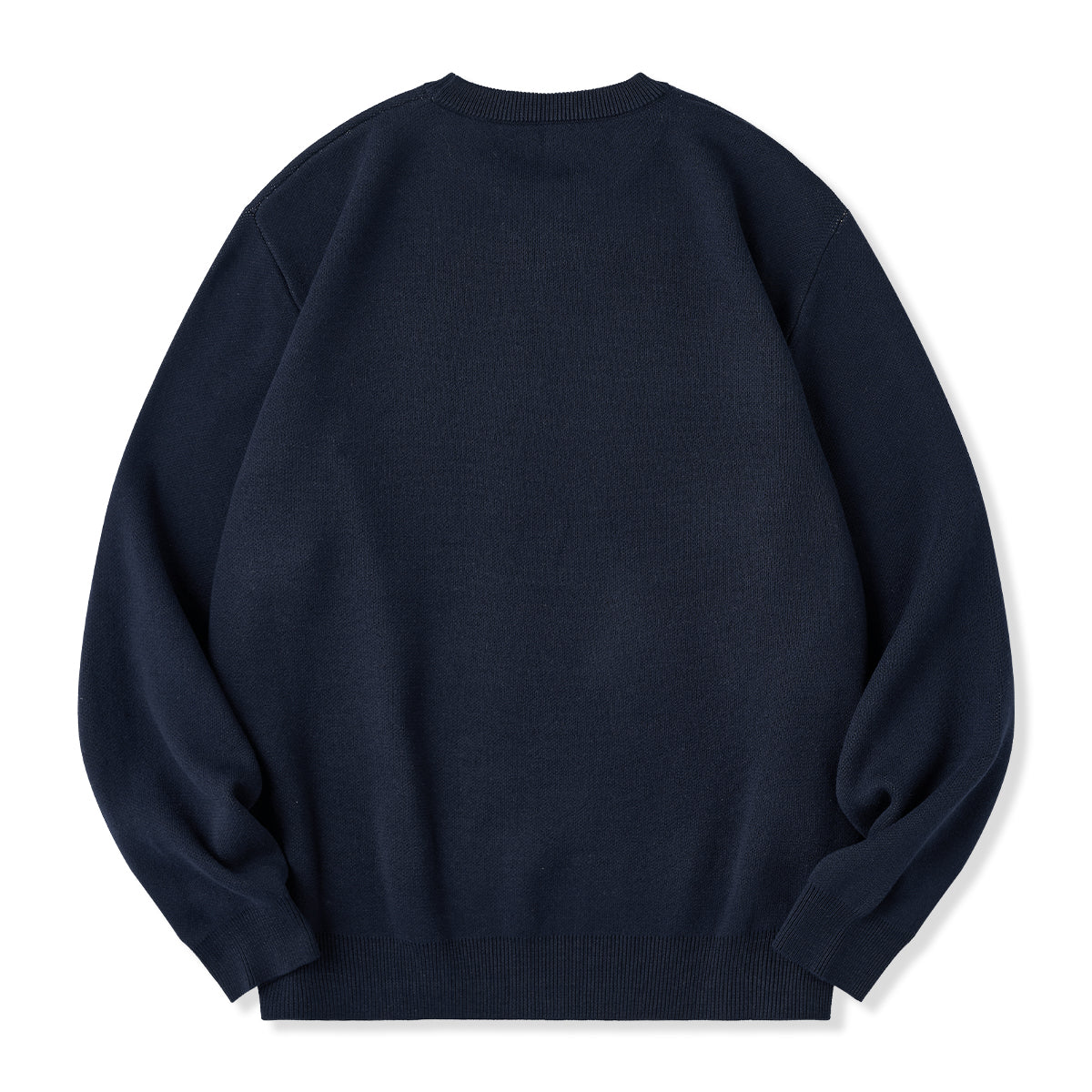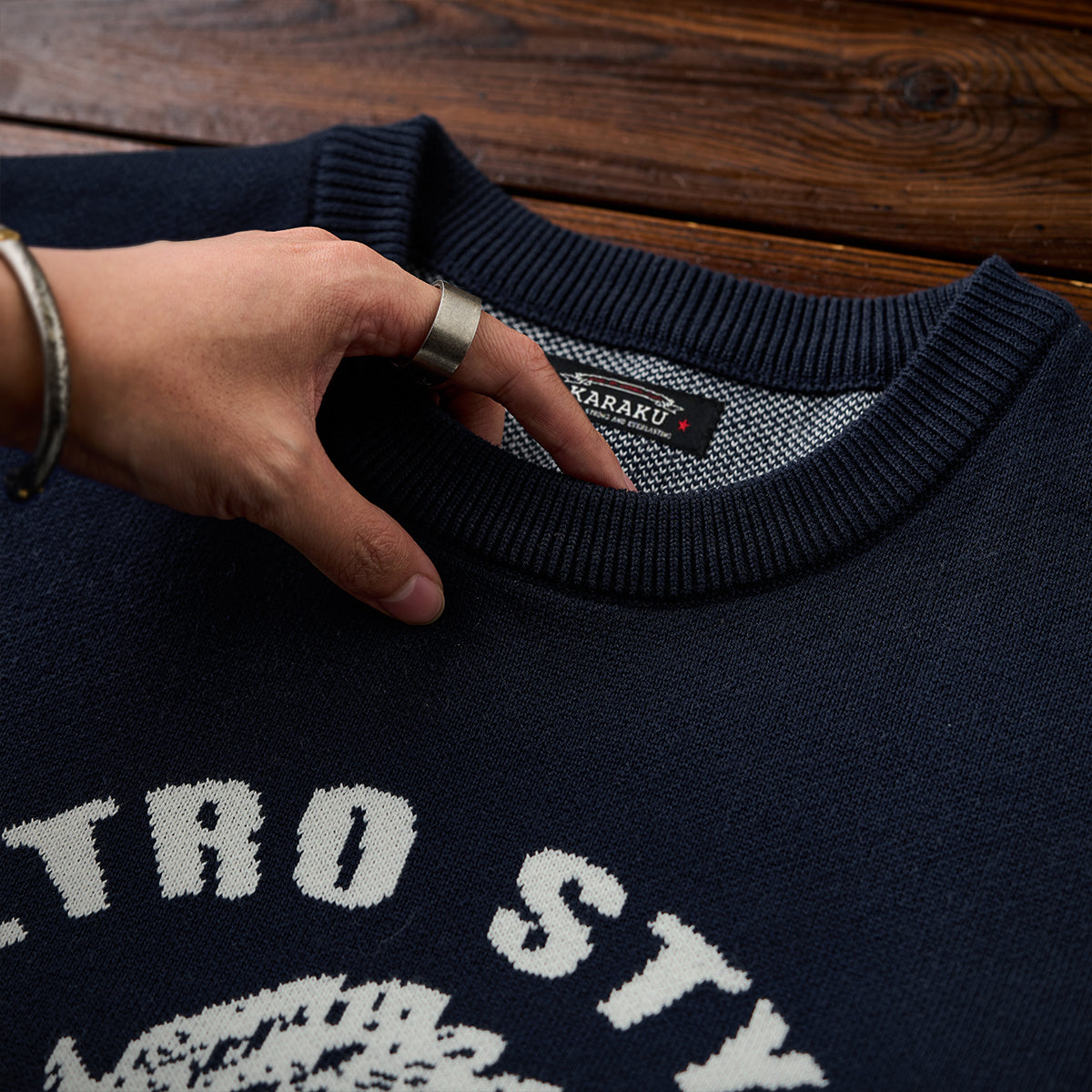 「헬멧 쓴 고양이」자수 & KARAKU 로고 자수 헨리넥 니트 스웨터