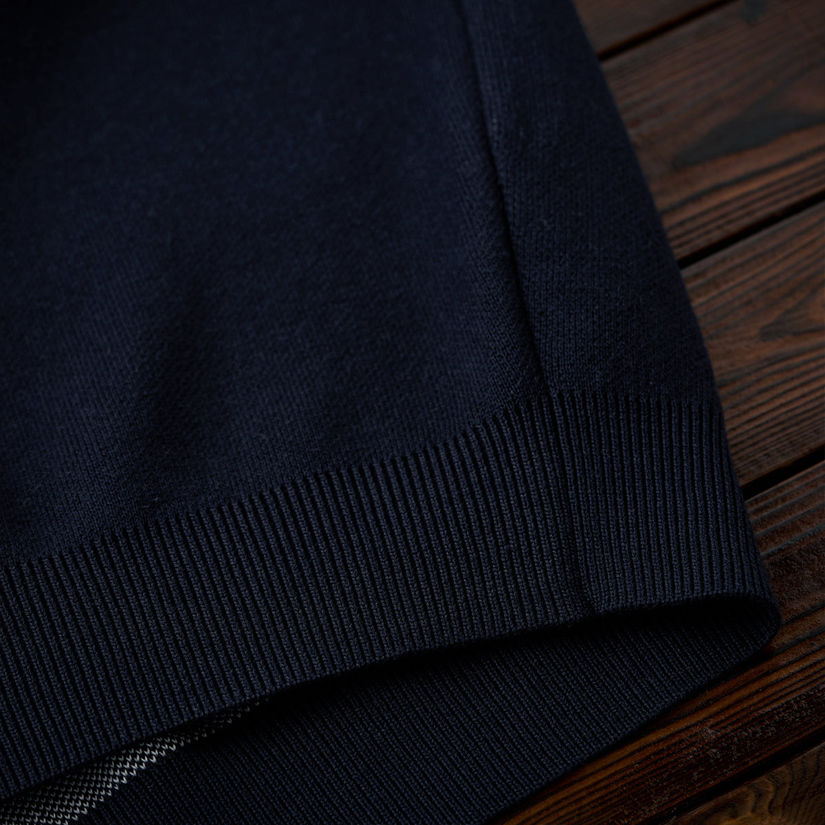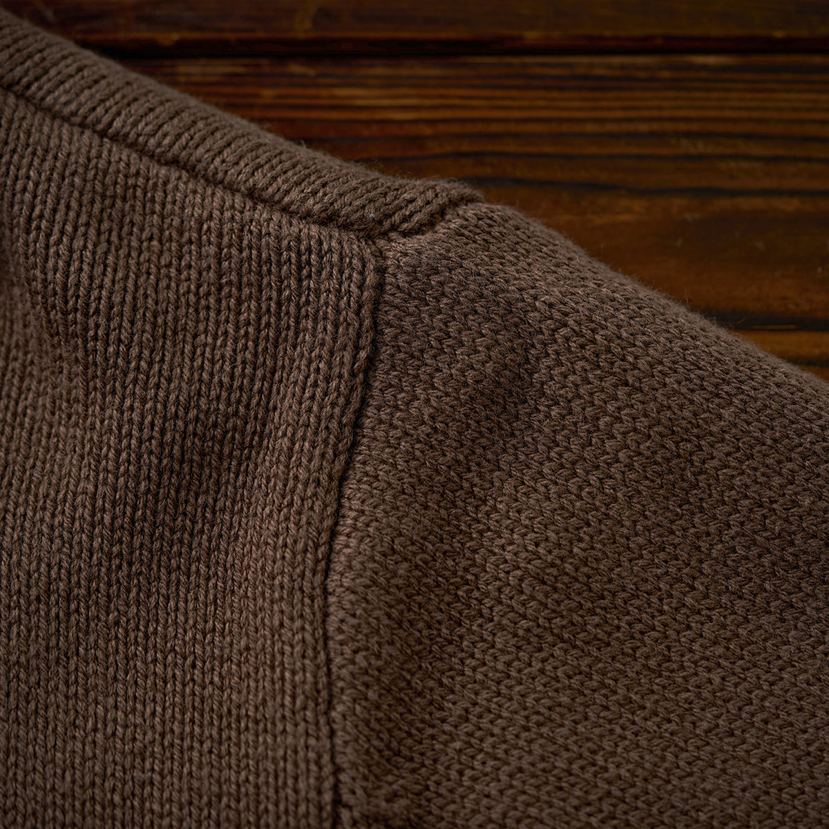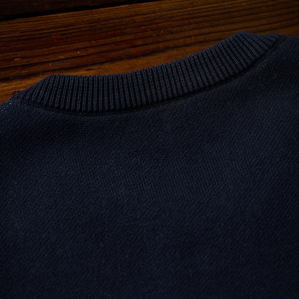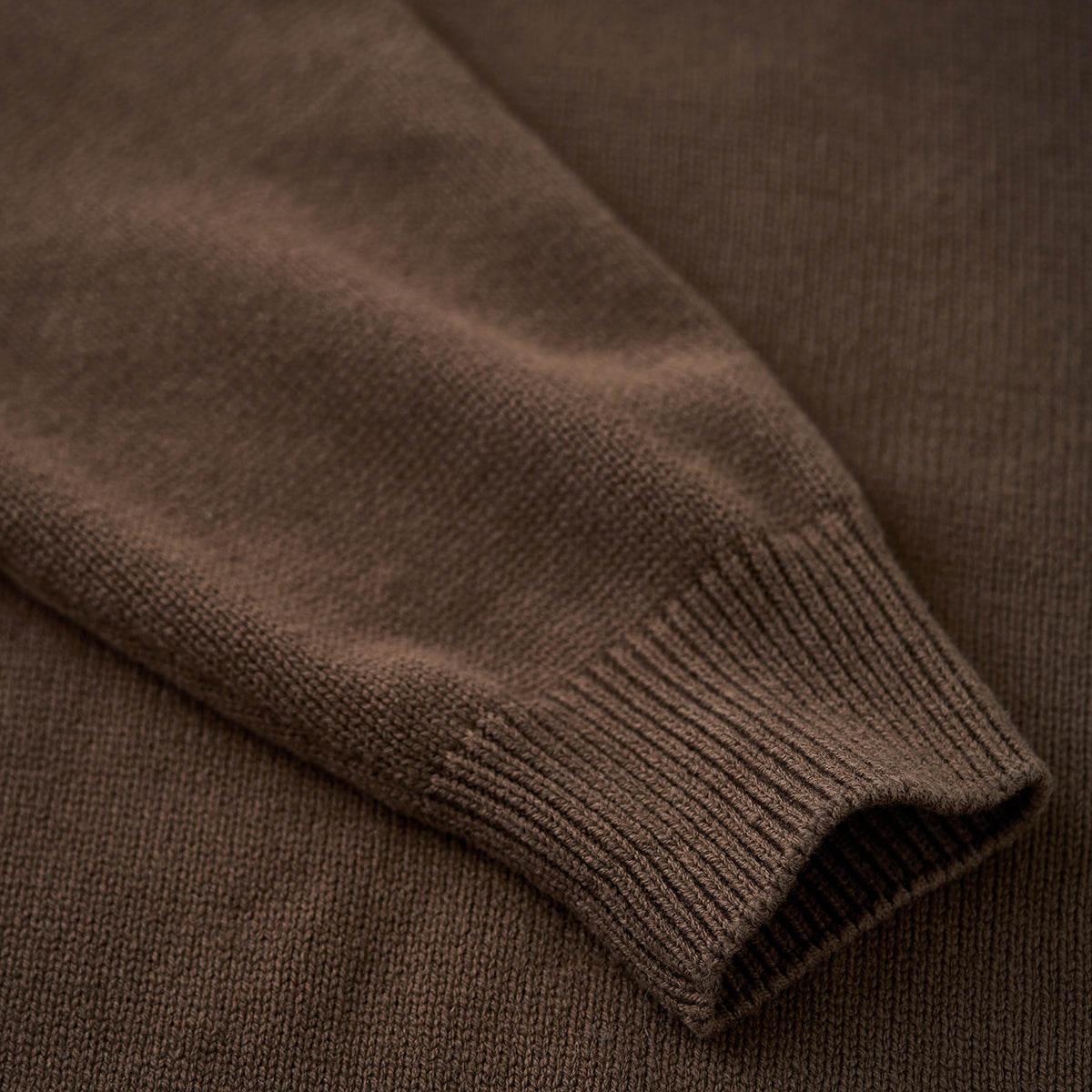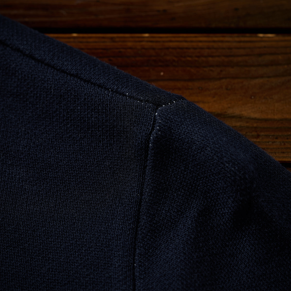 「헬멧 쓴 고양이」자수 & KARAKU 로고 자수 헨리넥 니트 스웨터