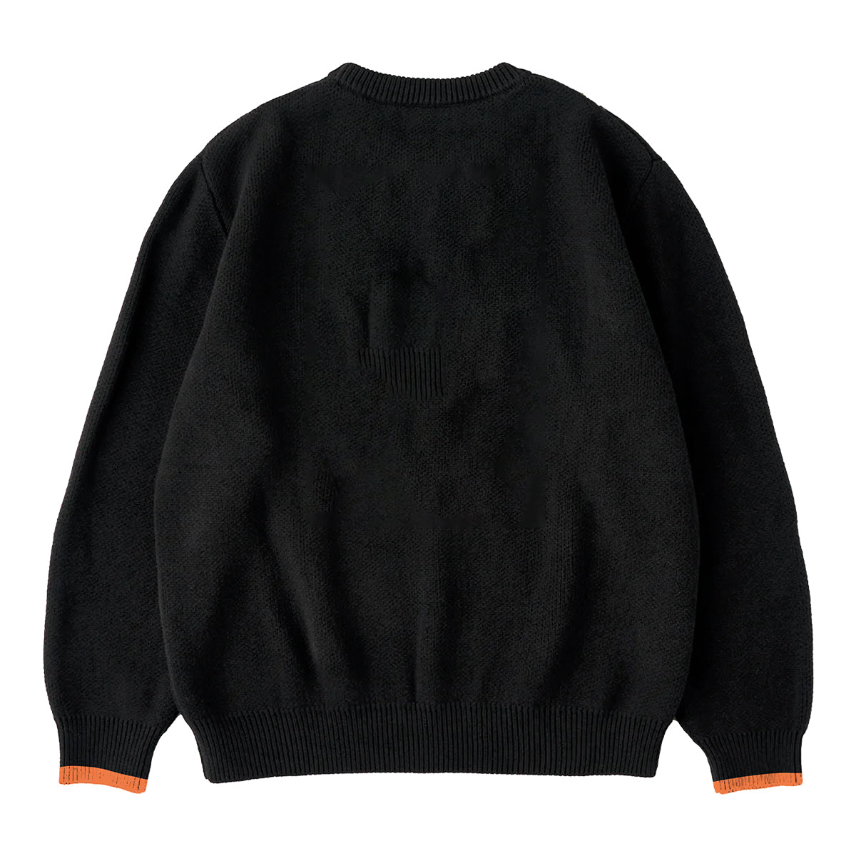【사전예약】소매 오렌지 배색 자카드 짜임 고양이 얼굴 포켓 니트 스웨터