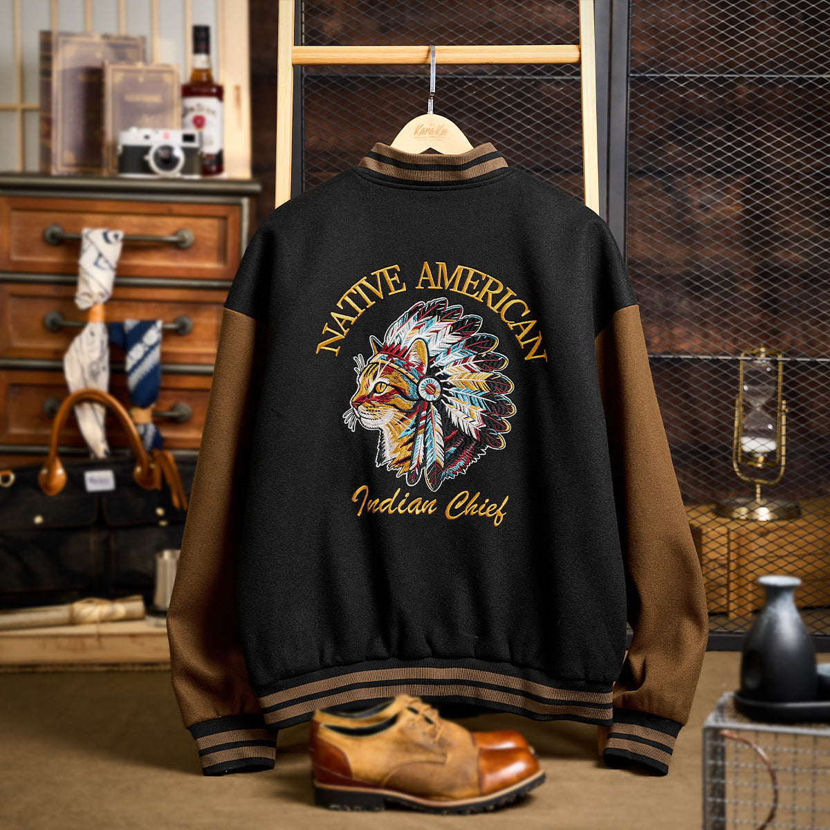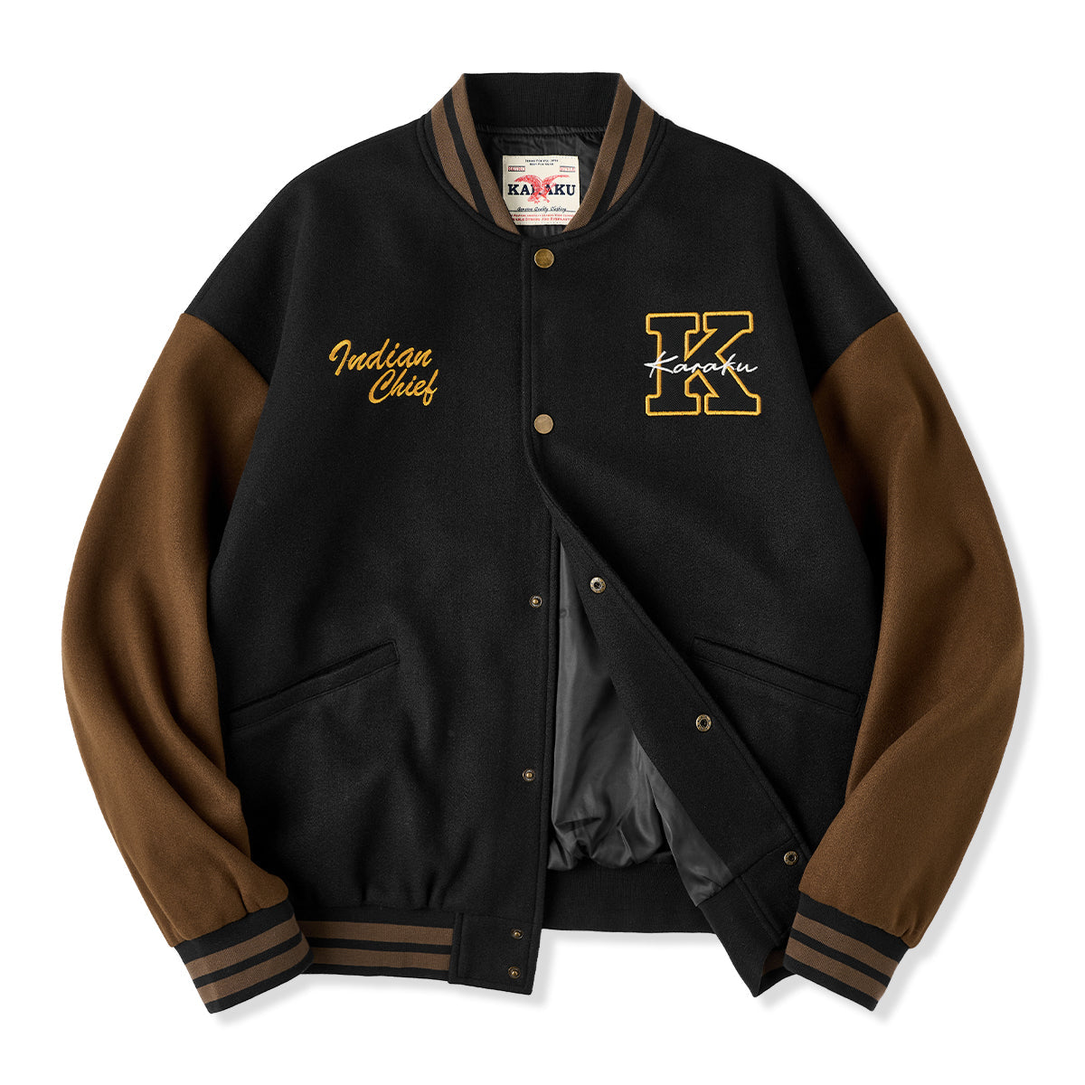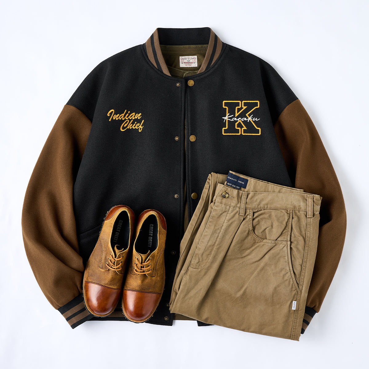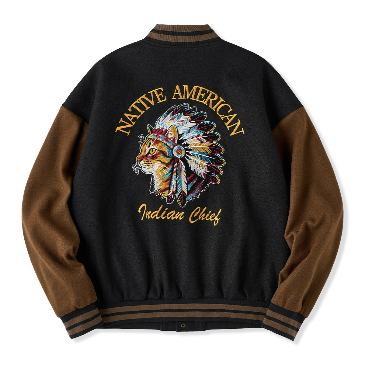 【사전예약】「인디언 추장 고양이」&「K」자수 와펜 투톤 베이스볼 자켓