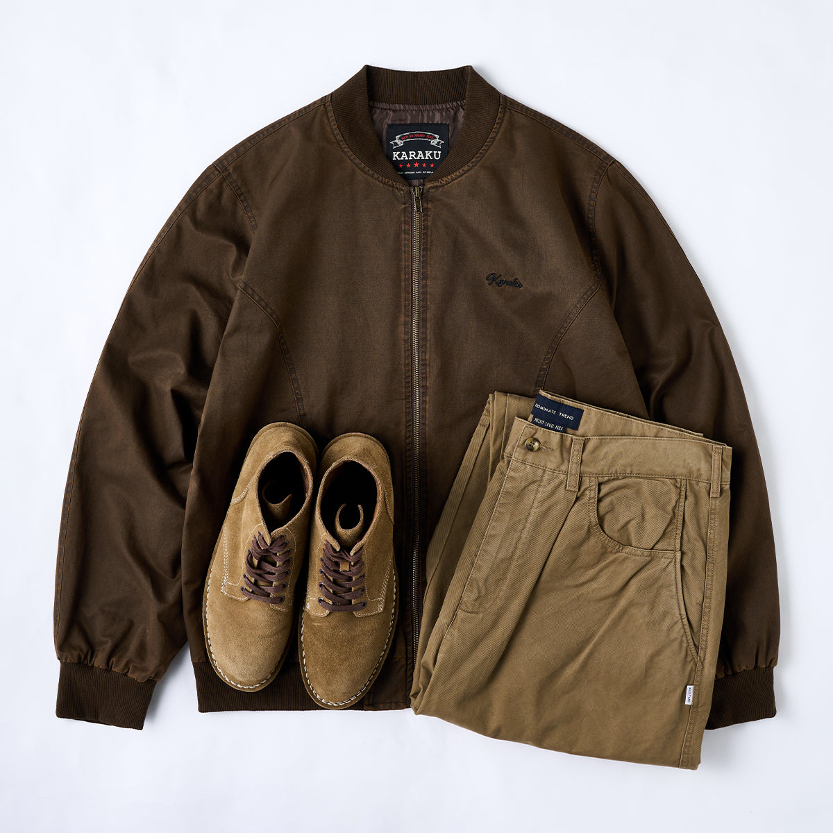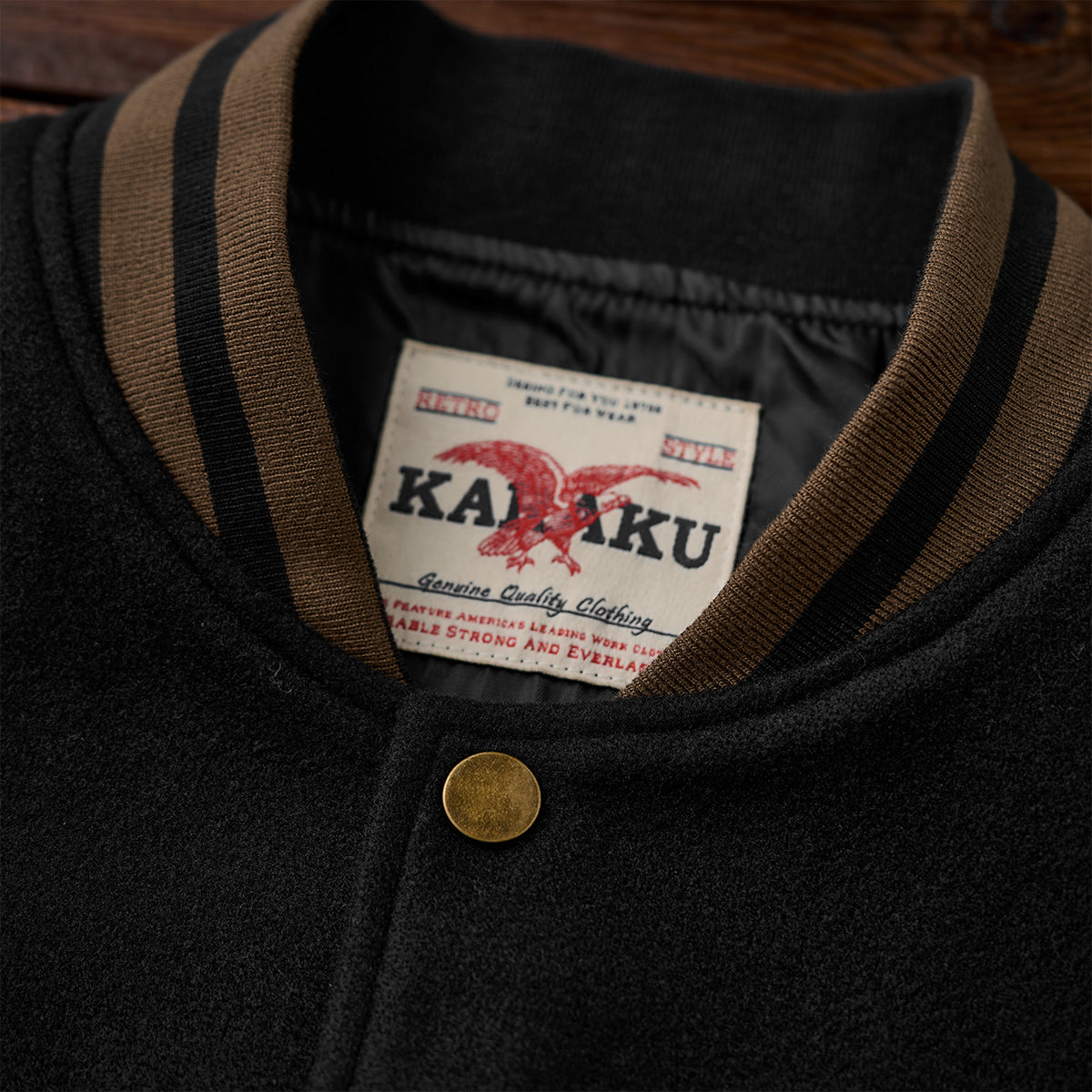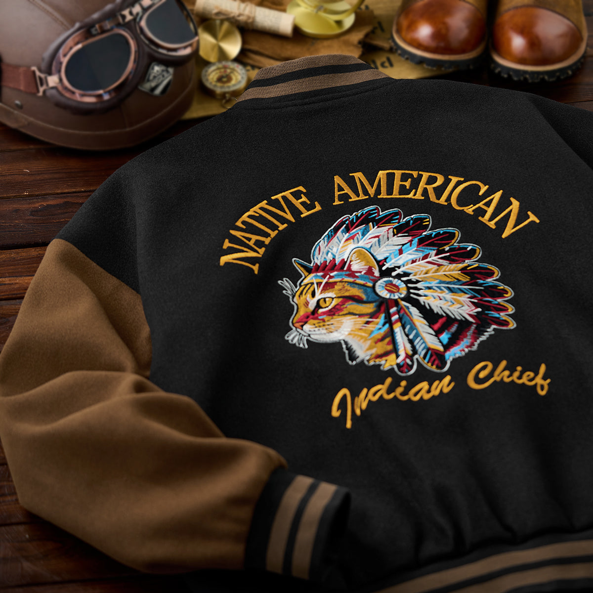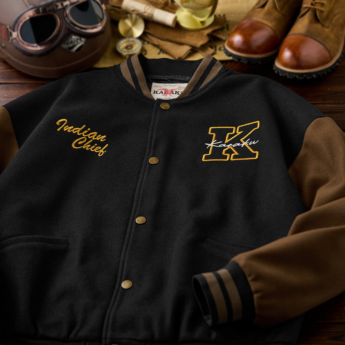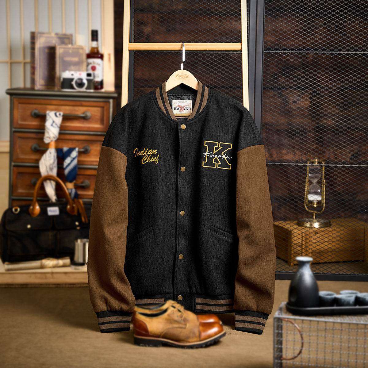 【사전예약】「인디언 추장 고양이」&「K」자수 와펜 투톤 베이스볼 자켓
