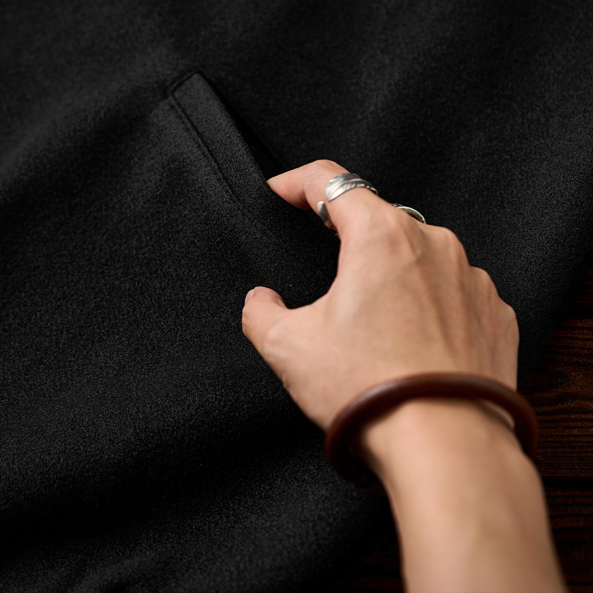 옷깃·소매·플랩 안쪽 고양이 카모 패턴 코튼 트윌 데님 테일러드 자켓