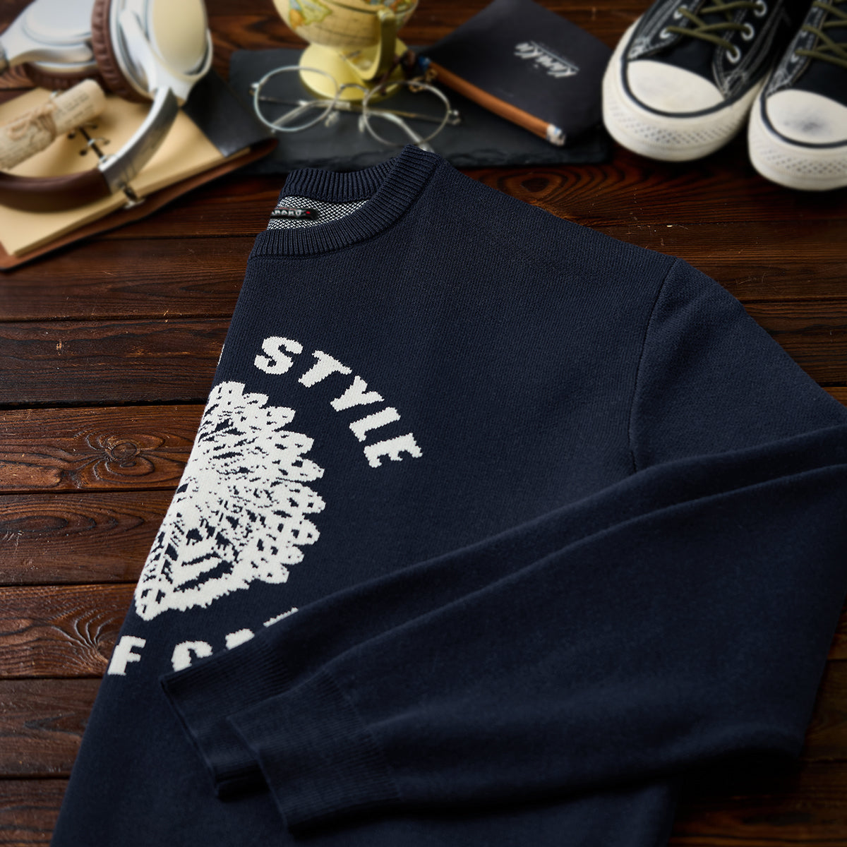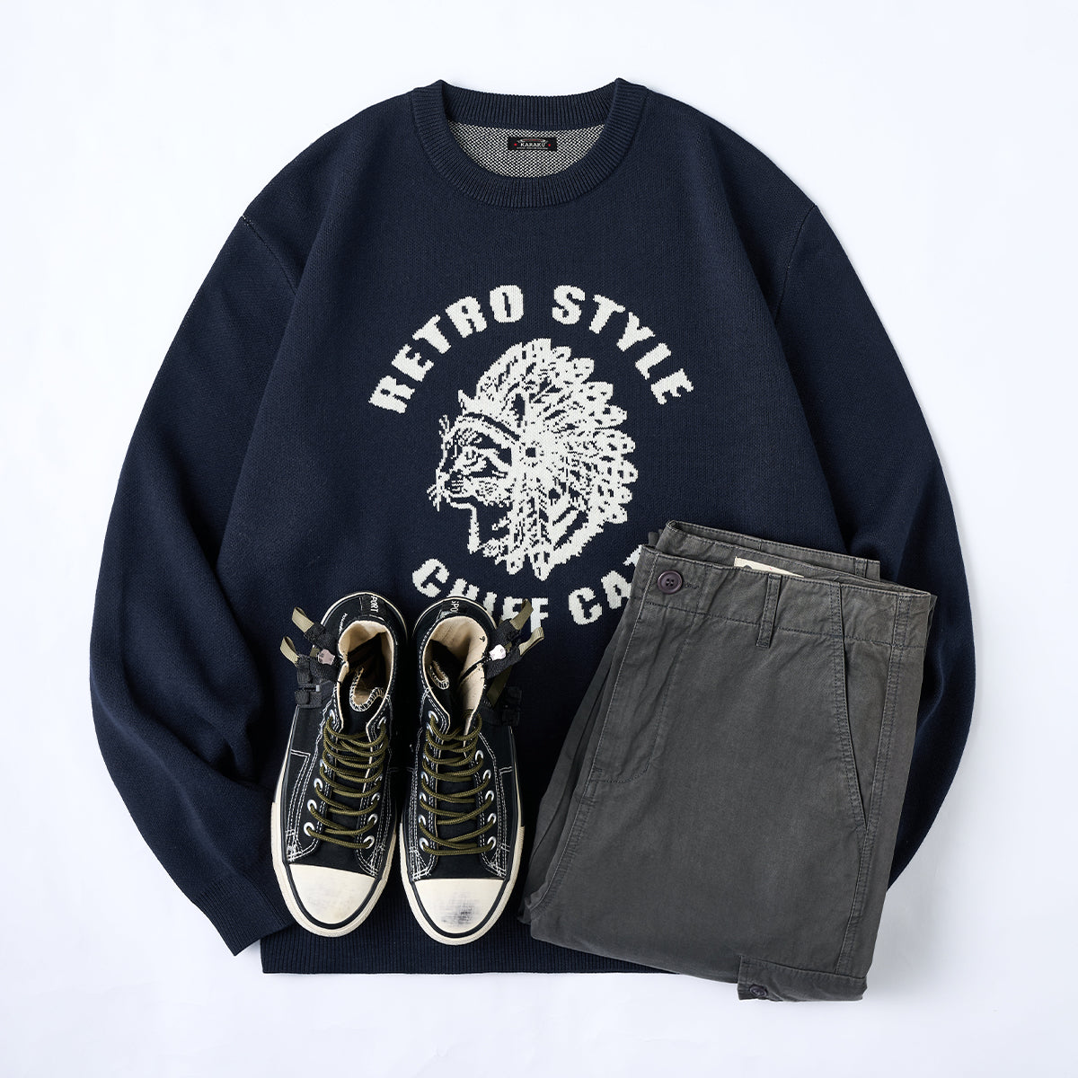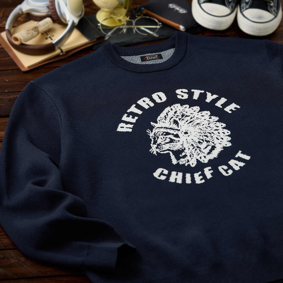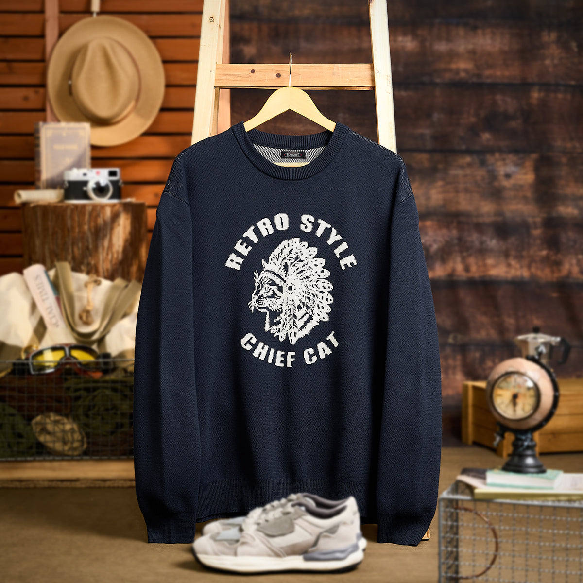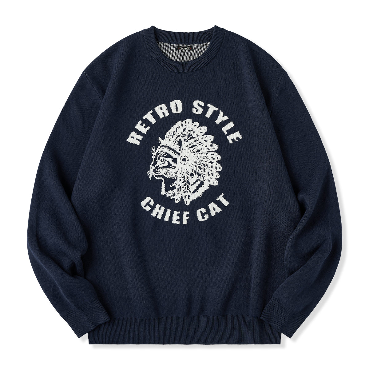 【사전예약】인디언 스타일「고양이 추장」자카드 짜임 니트 풀오버