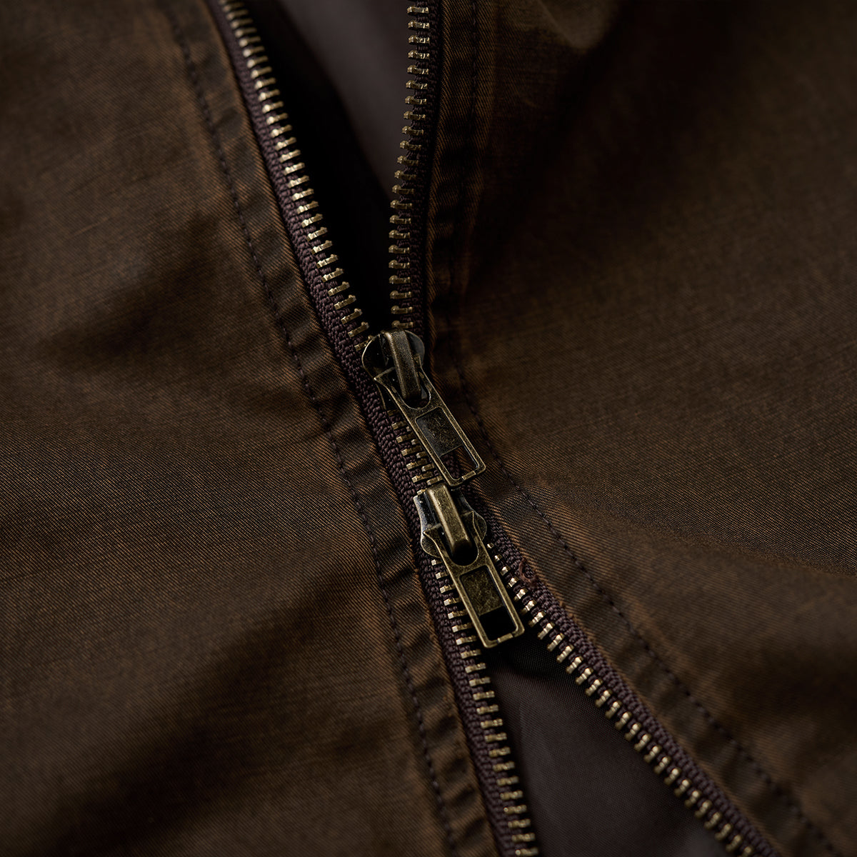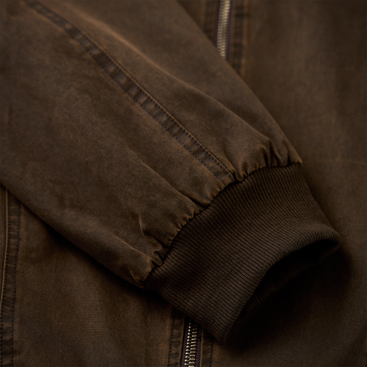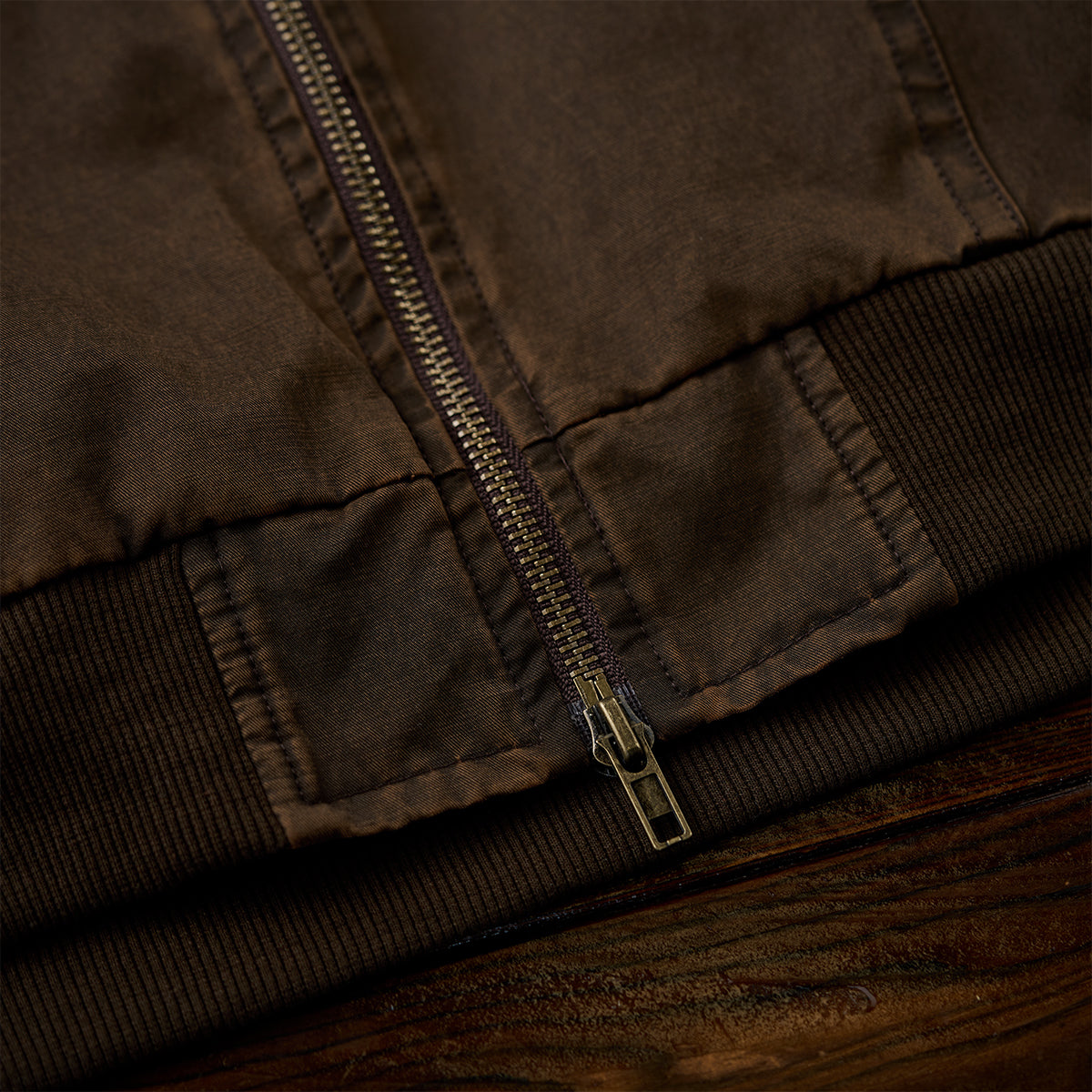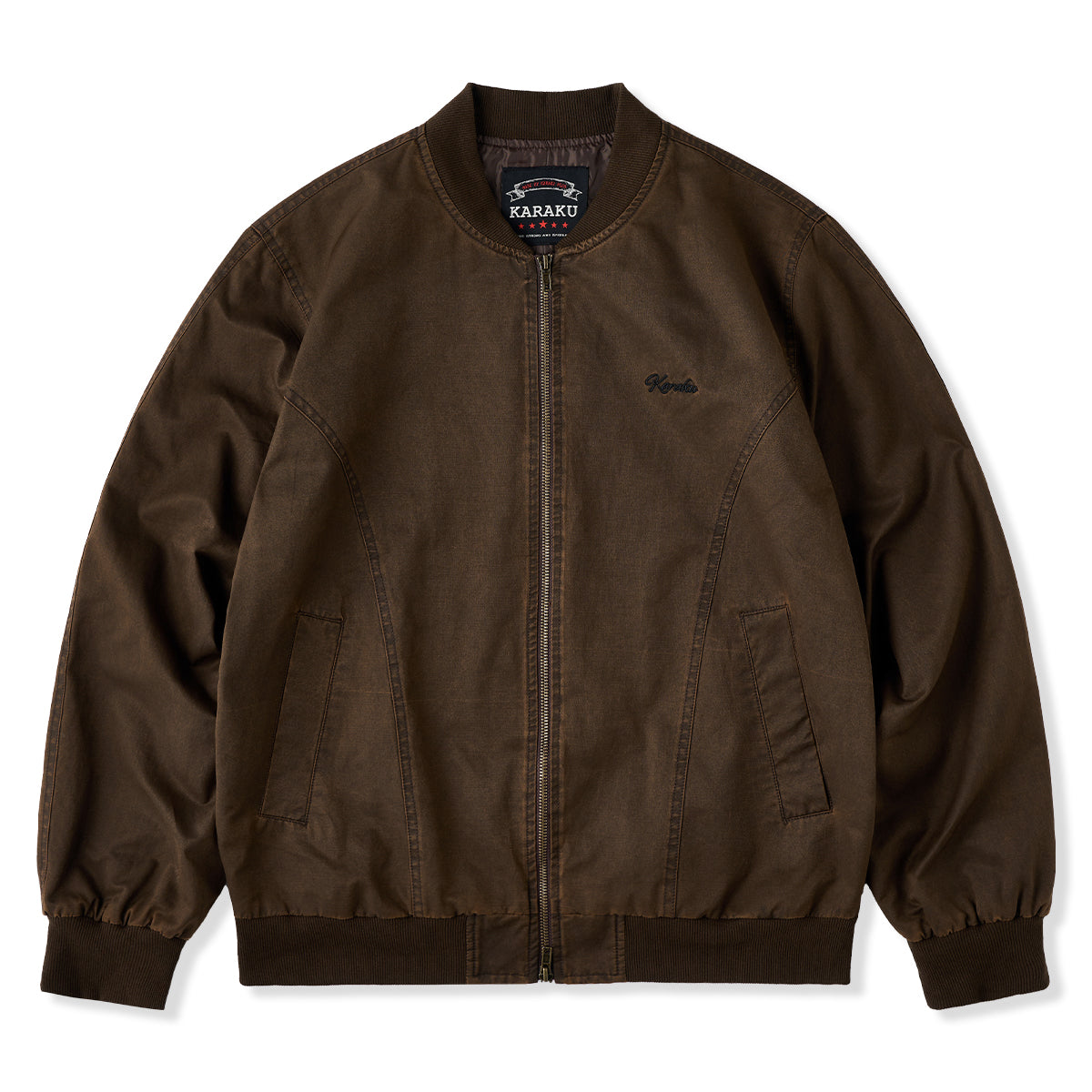【사전예약】「헬멧 쓴 고양이」프린트 워싱 가공 더블 지퍼 스타디움 점퍼