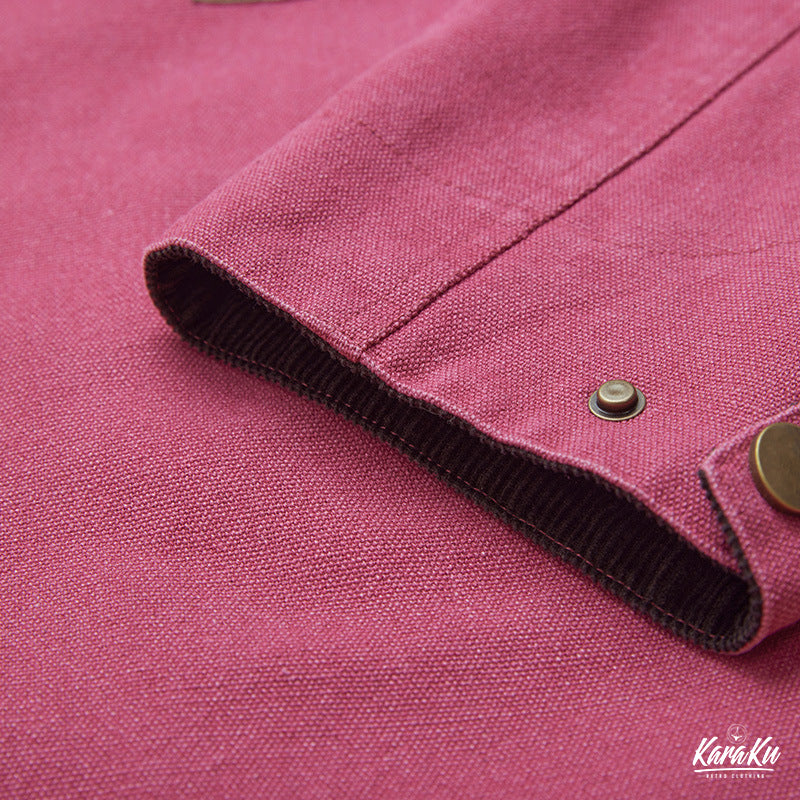 옷깃은 같은 색의 코듀로이 소재로 전환해, 계절감과 악센트를 더함.