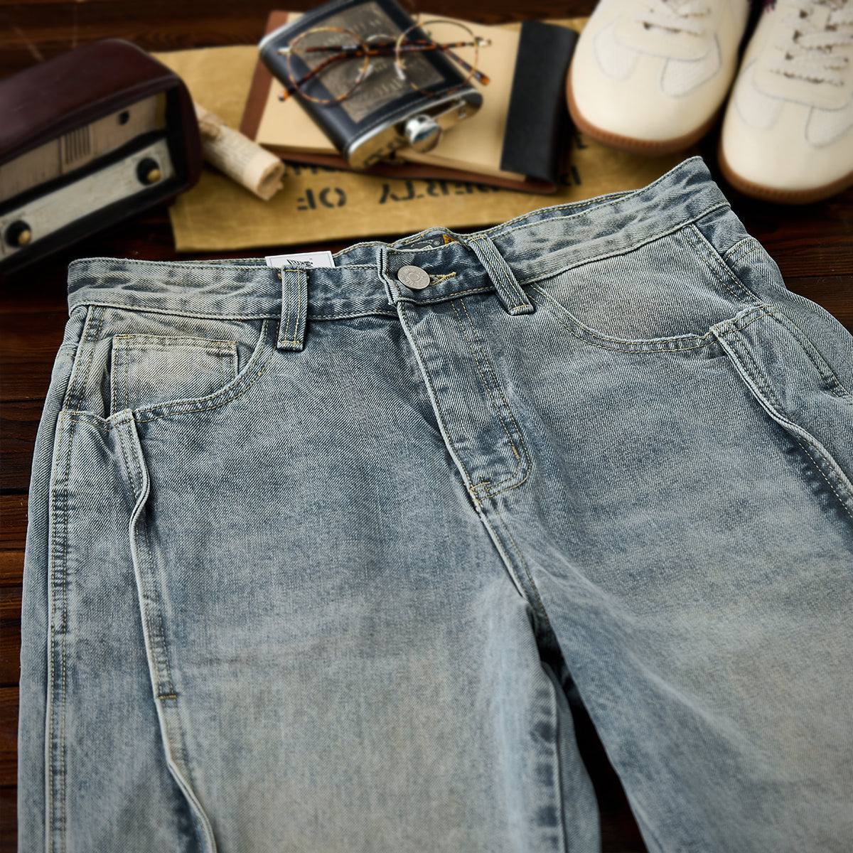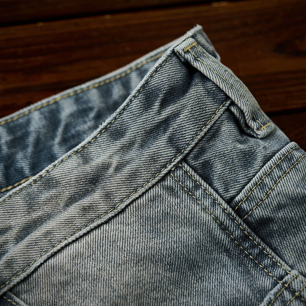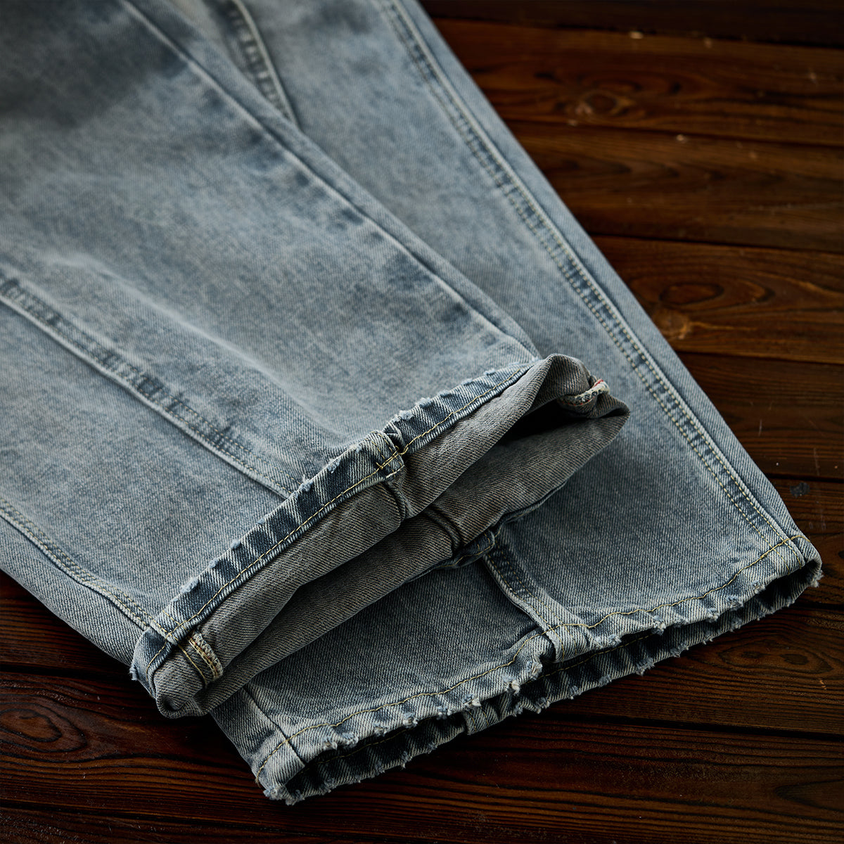 캣 워싱 가공(고양이 수염 모양 처리)으로 빈티지한 질감을 더하고, 입체 라인 디테일로 멋스러운 포인트를 준 코튼 데님 팬츠.
