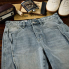 캣 워싱 가공 입체 라인 코튼 데님 팬츠