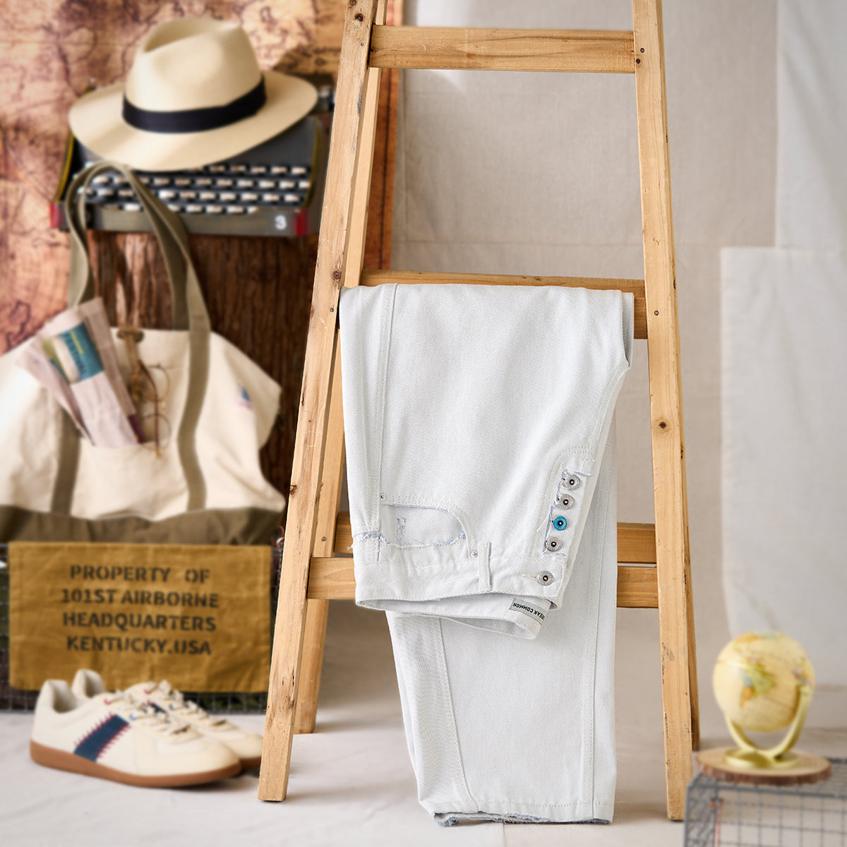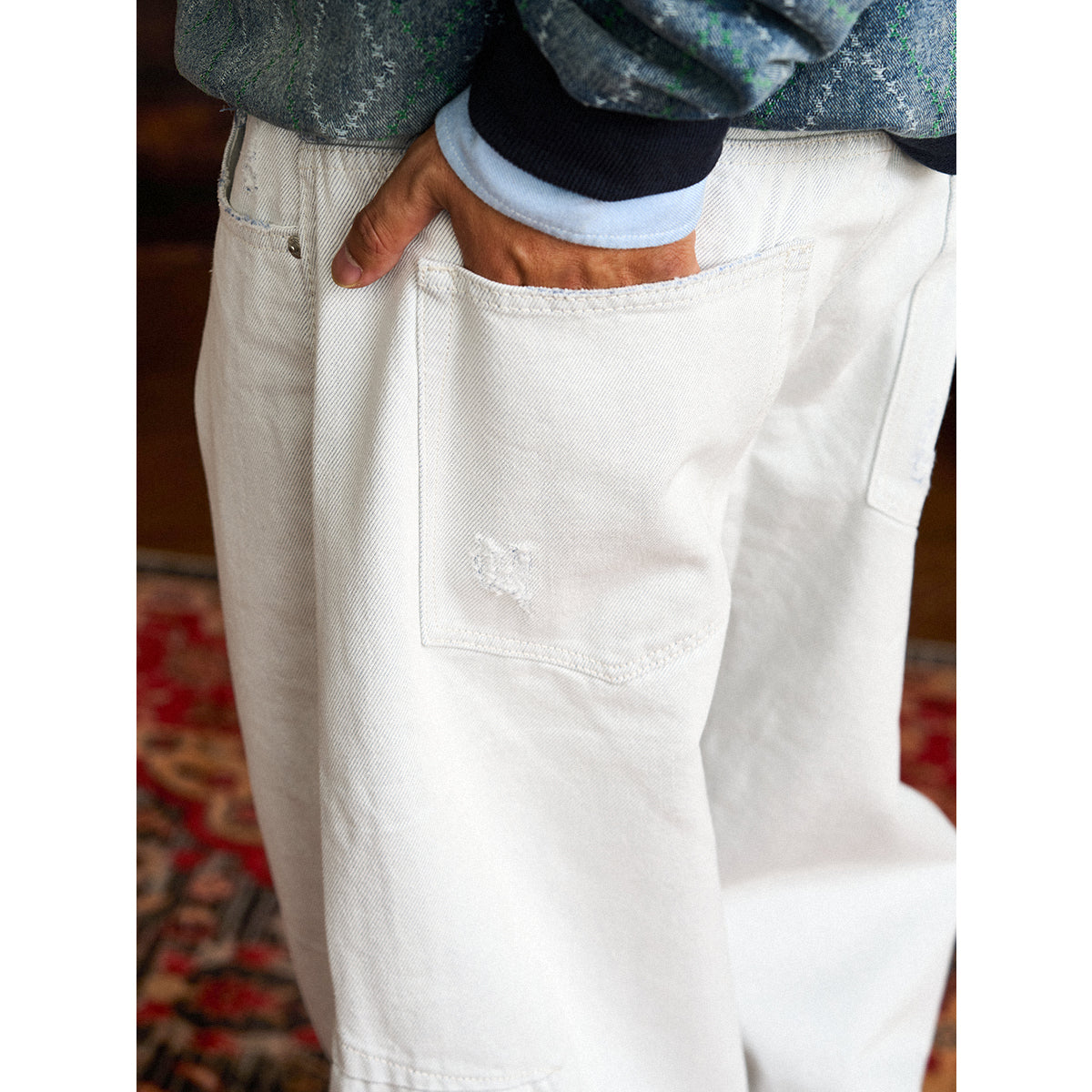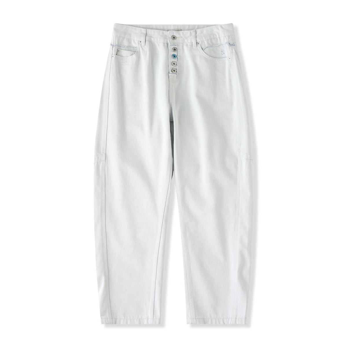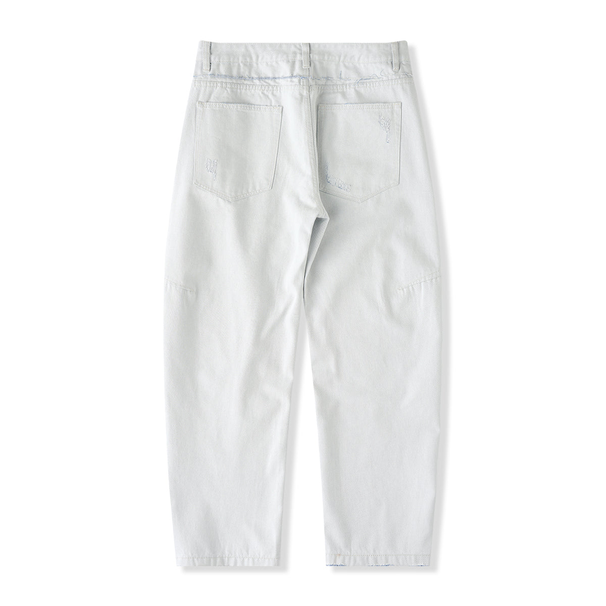 데미지 & 프린지 가공 배색 버튼 플라이 화이트 데님 팬츠