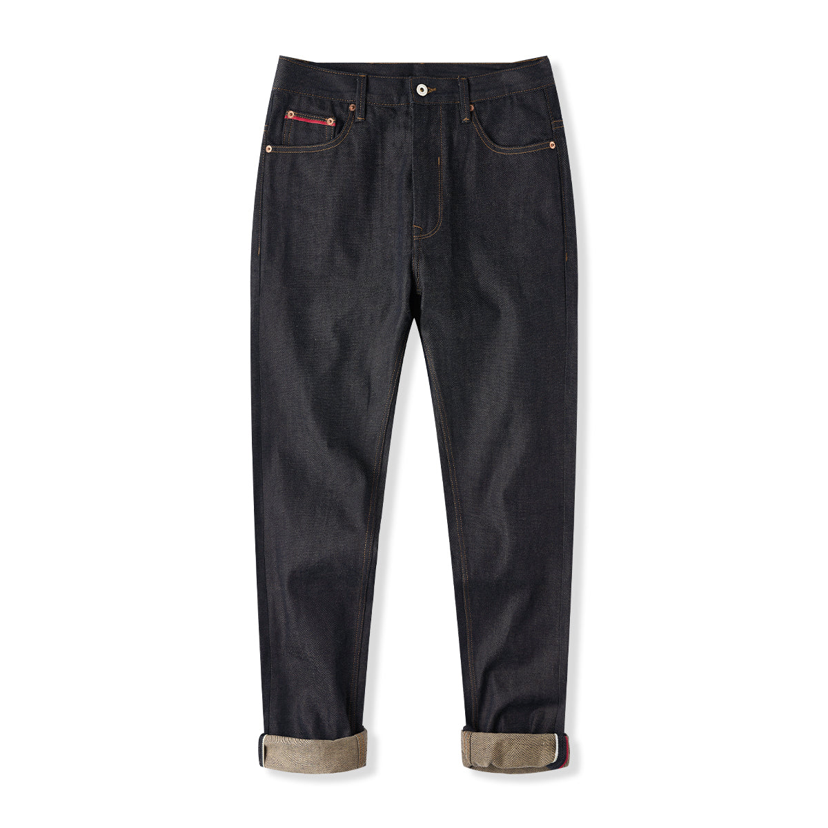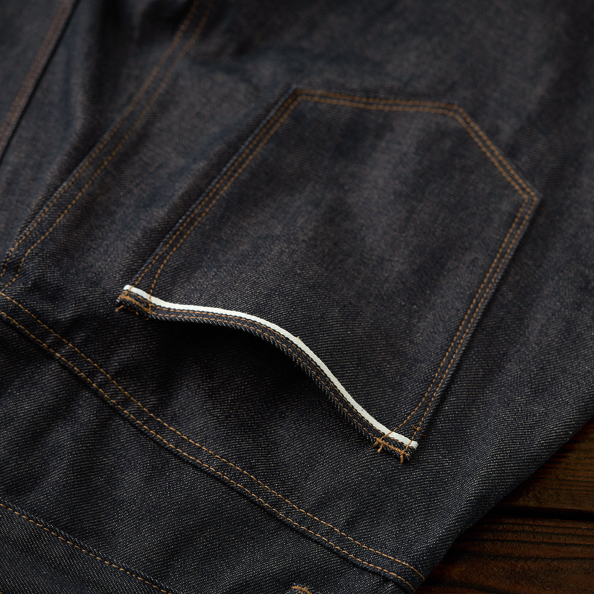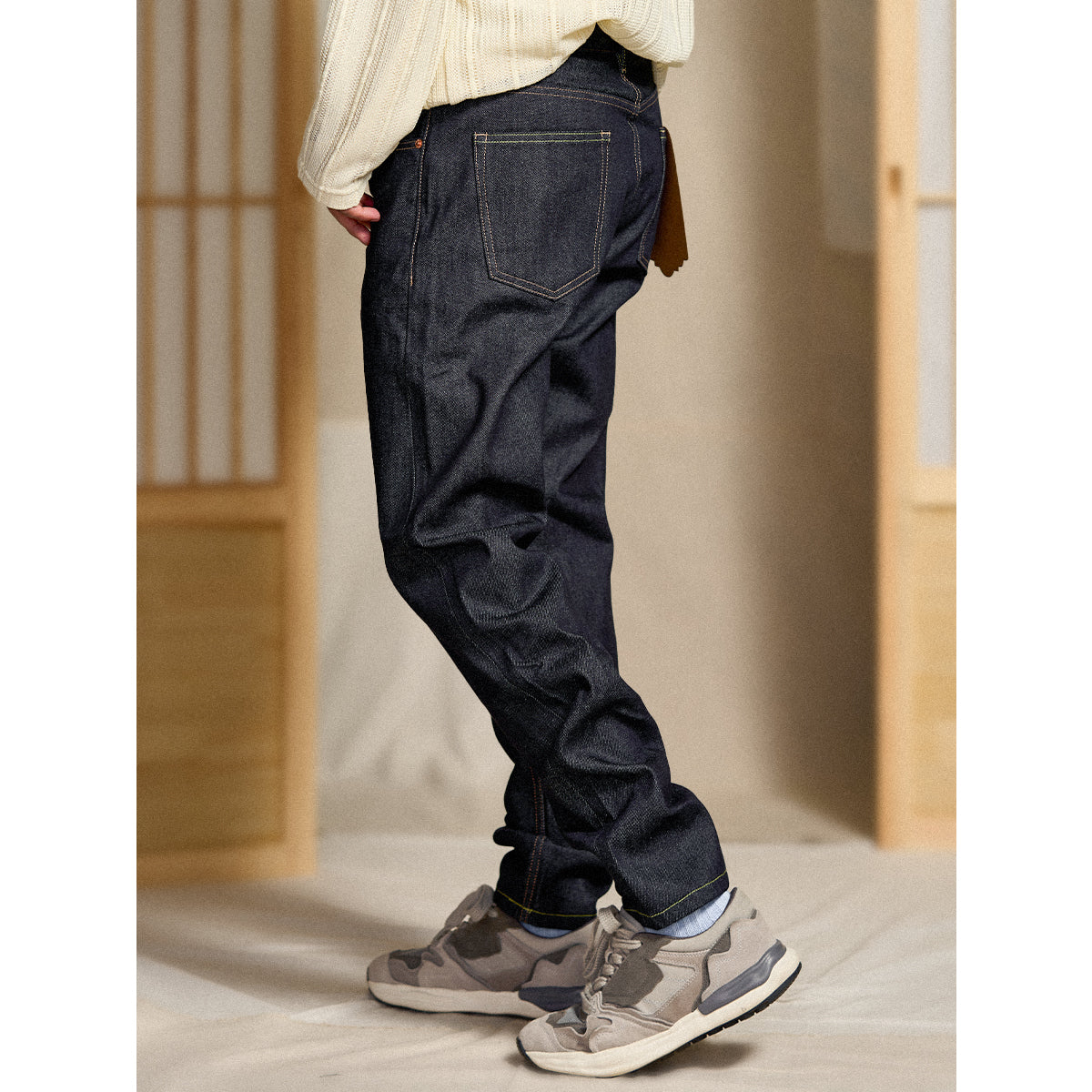 13.8oz 인디고 염색 면 데님 테이퍼드 팬츠