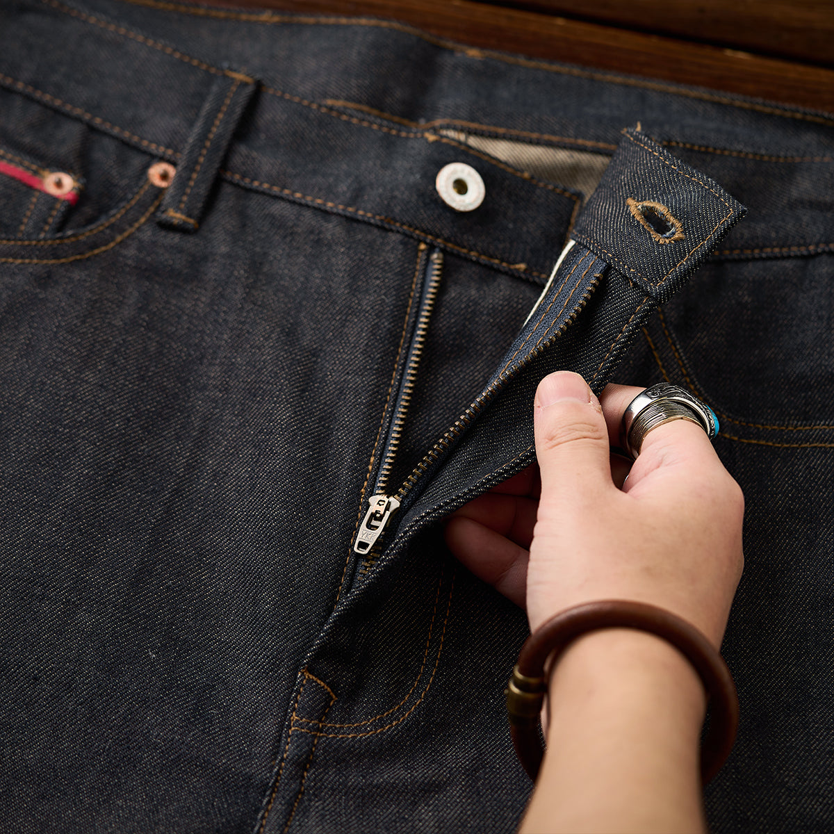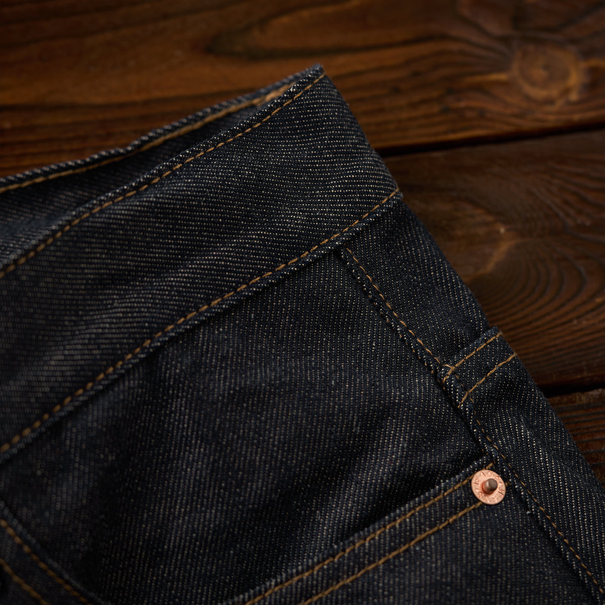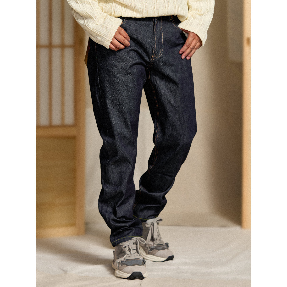 13.8oz 인디고 염색 면 데님 테이퍼드 팬츠