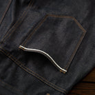 13.8oz 인디고 염색 면 데님 원단을 사용했으며, 원워시 처리로 자연스럽고 편안한 착용감을 제공합니다.