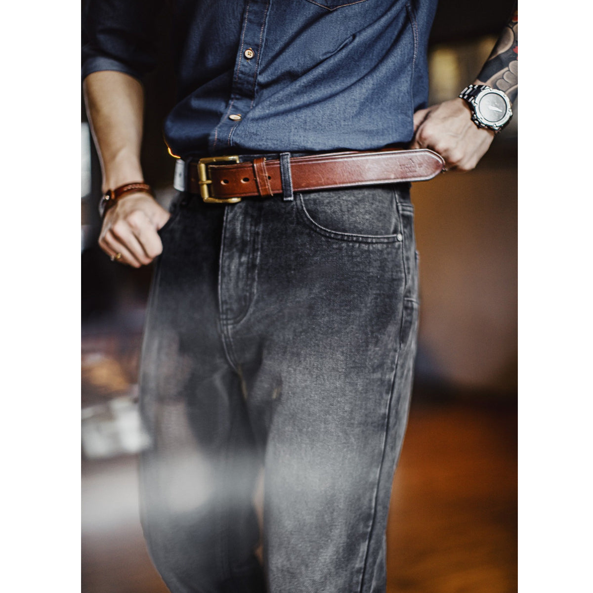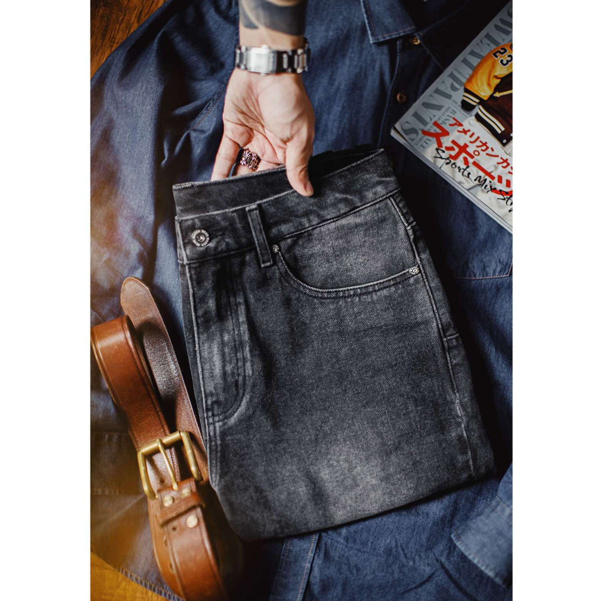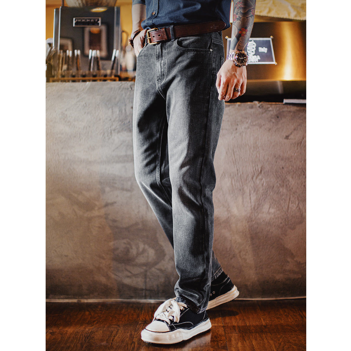 자연스러운 물빠짐과 음영을 더한 워시드 가공으로 세련된 분위기를 연출합니다.