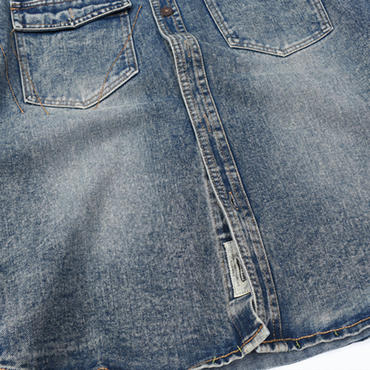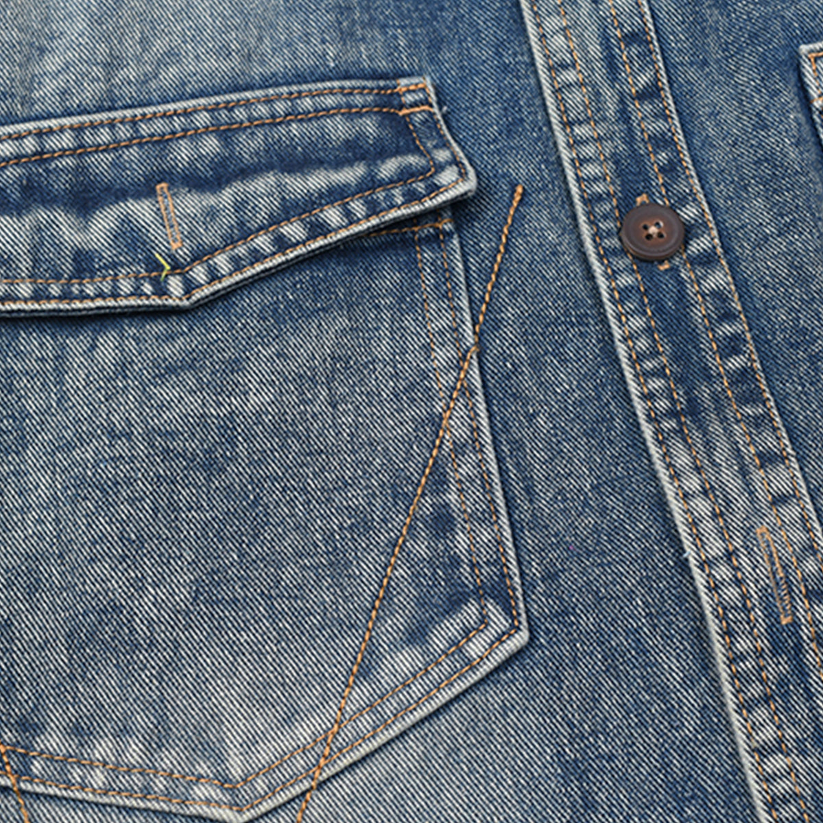 데님 원단은 튼튼하고 내구성이 뛰어나 장기간 착용하거나 반복적으로 세탁해도 쉽게 손상되지 않습니다. 또한 통기성이 좋고 적응력이 뛰어나 여름에도 시원하고 편하게 입을 수 있습니다.