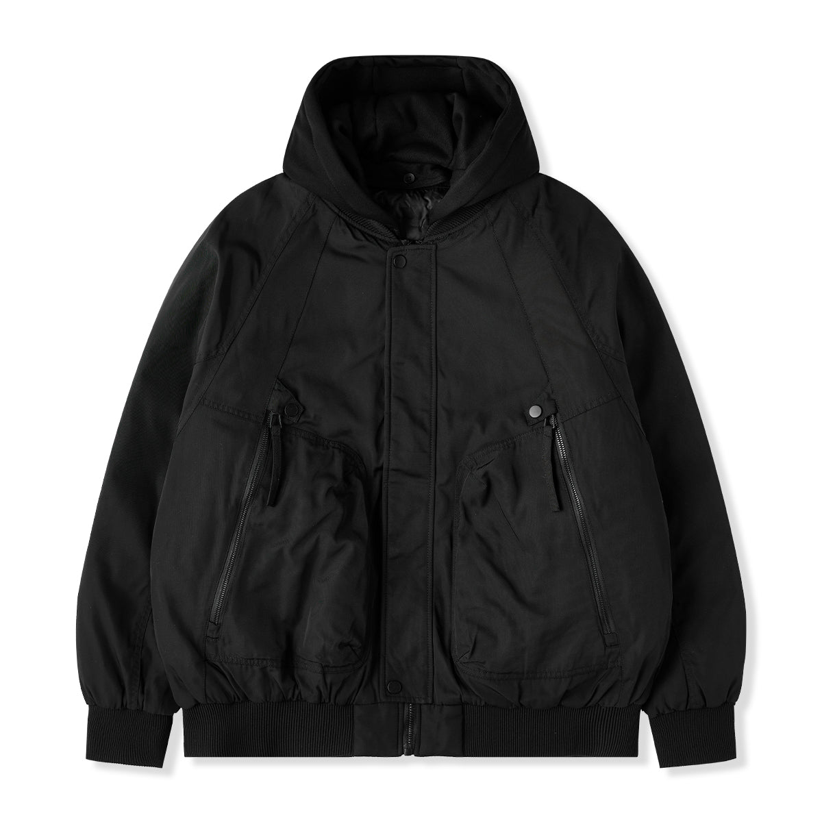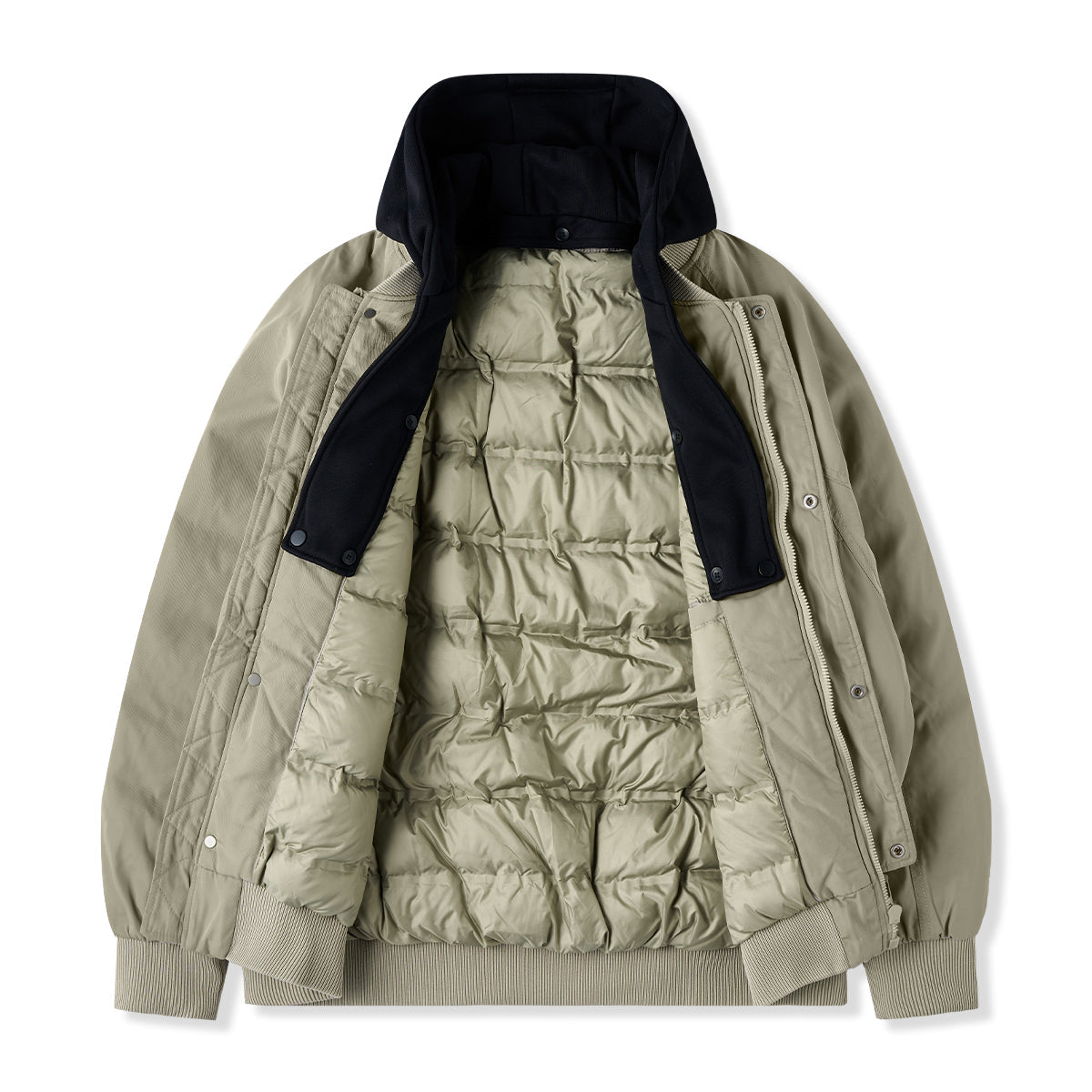 후드 탈착 가능 2way 페이크 레이어드 래글런 슬리브 다운 자켓