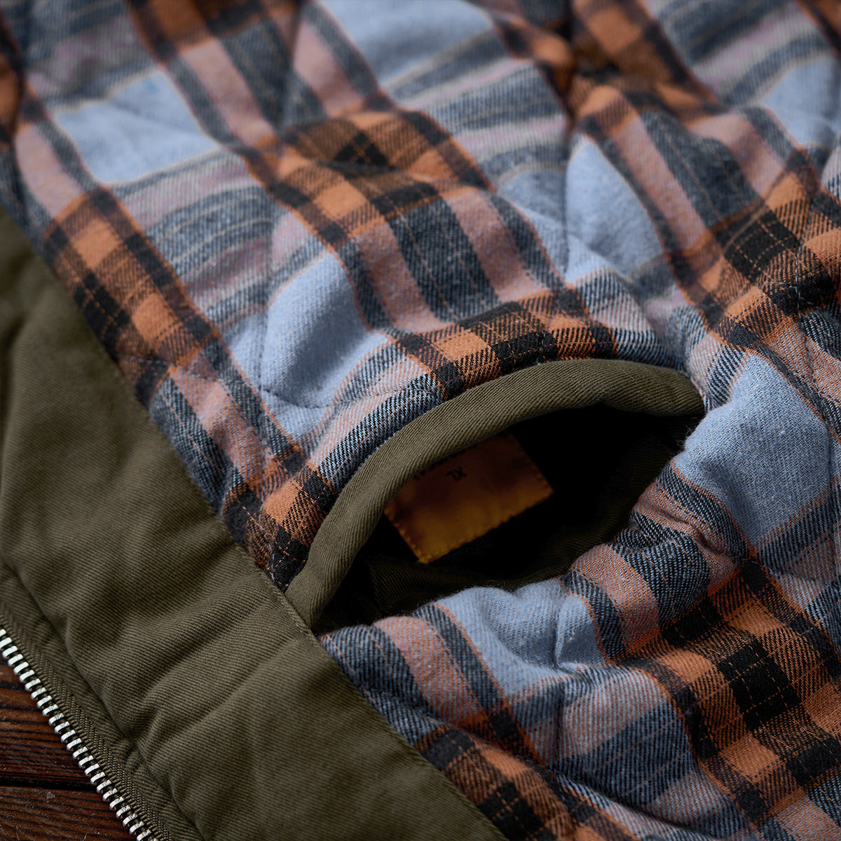선염 자카드 체크 패턴 칼라 배색 호리병 퀼팅 솜 안감 자켓