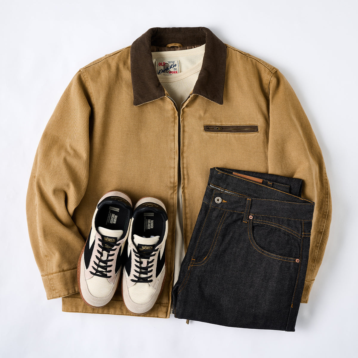【사전예약】「KaraKu」로고 자수 데님 배색 호박 퀼팅 솜 안감 자켓